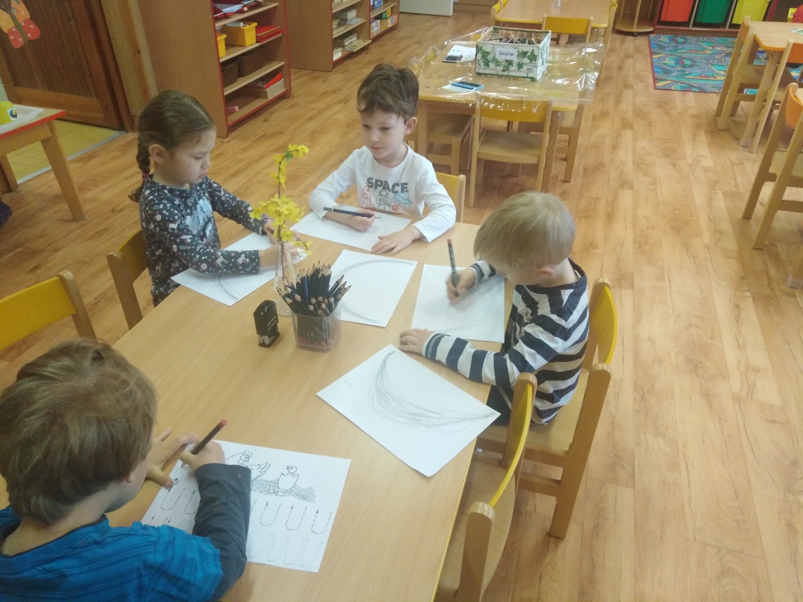 V tomto týdnu jsme si povídali o jaru, jak se příroda probouzí a přichází spousta mláďat na svět. Povídali jsme si, jak jsme prožili velikonoční svátky. Seznámili jsme se s vybranými hospodářskými zvířaty a jejich mláďaty. Děti si vyrobily králíčka pro jarní výzdobu naší třídy, při tvoření obrázků zvířátek si procvičily grafomotoriku, pro motivaci se seznámily s básní Na dvorečku u babičky. Kamarád Vašík nám představil svá oblíbená zvířátka.