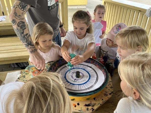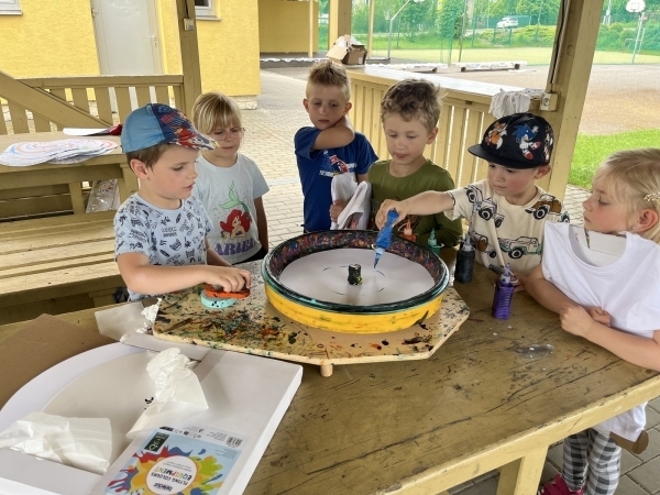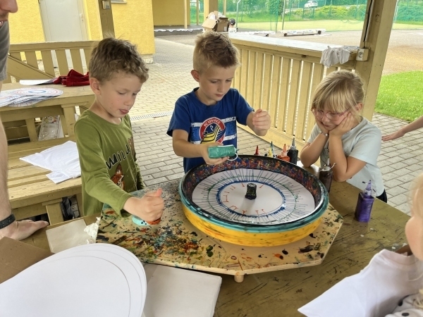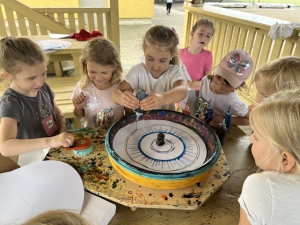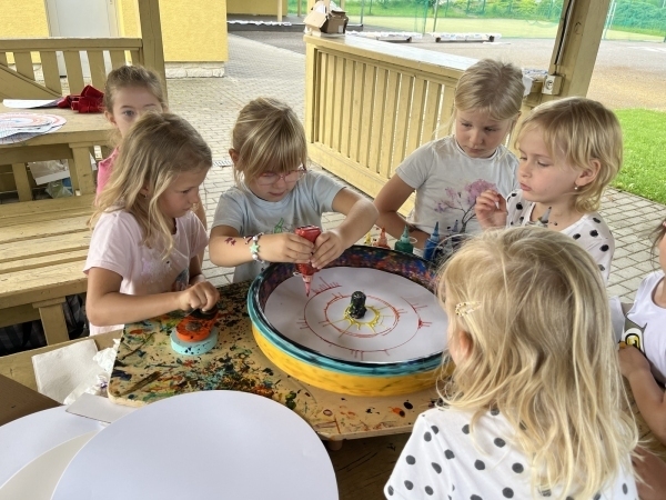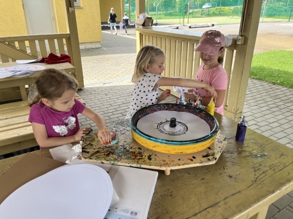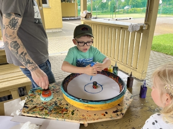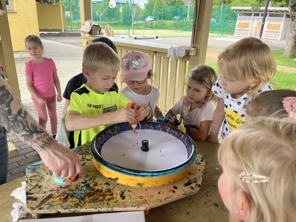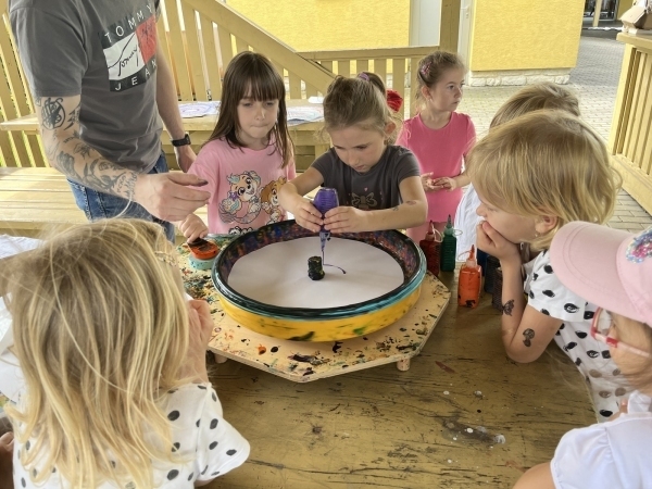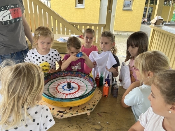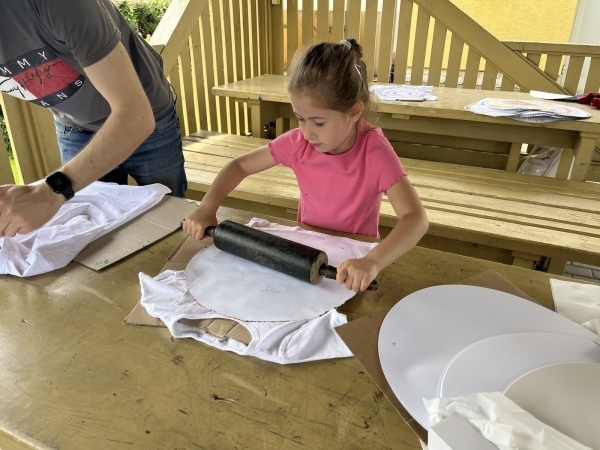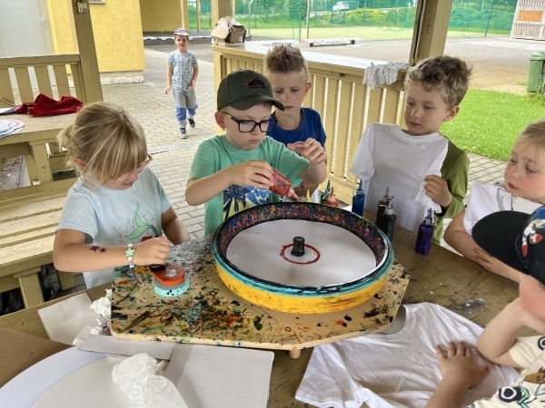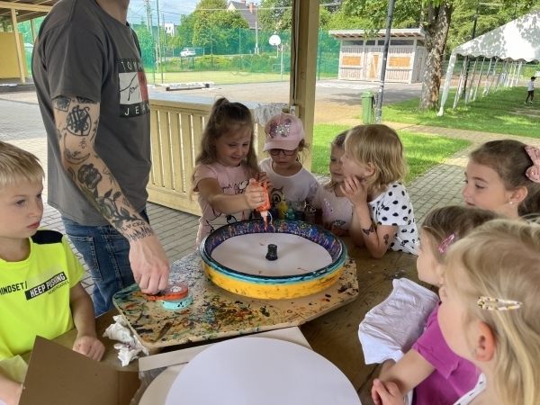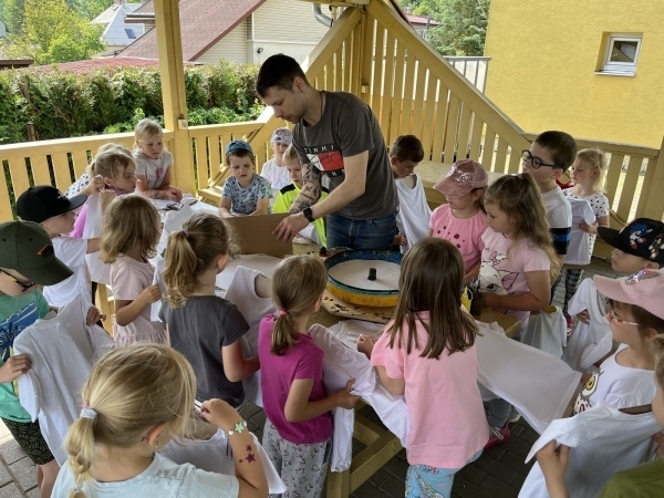 Do naší školky zavítal pan výtvarník, který si pro naše předškoláky připravil zábavné tvoření. Pomocí barev a speciální techniky si předškoláci ozdobili vlastní trička. Děti si kreativní dopoledne velmi užily a s nadšením sledovaly, jak se jejich nápady mění v barevné obrázky. Každé tričko je jedinečné a bude krásnou připomínkou na společně prožité chvíle v mateřské škole.