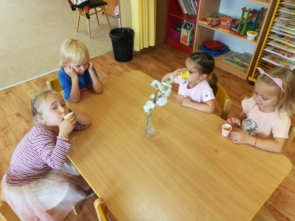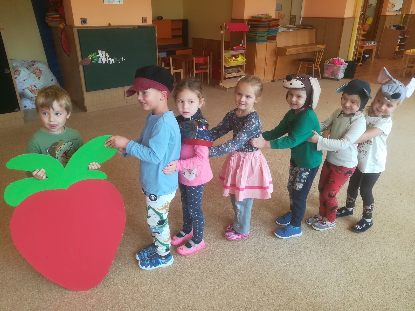 Dědek řepu zasadil – tak jsme pojmenovali týdenní blok, ve kterém jsme poznávali ovoce a zeleninu se zavřenýma očima – hmatem, a podle chuti a vůně, také jsme si namixovali různé druhy smoothie, "zavařovali jsme kompot", seřazovali ovoce podle velikosti, skládali rozstříhané obrázky, seznámili se s novou písničkou a zahráli si pohádku O řepě.