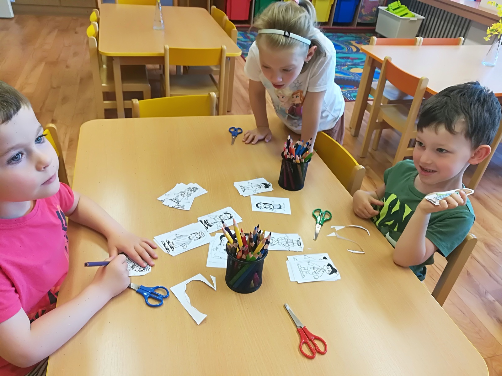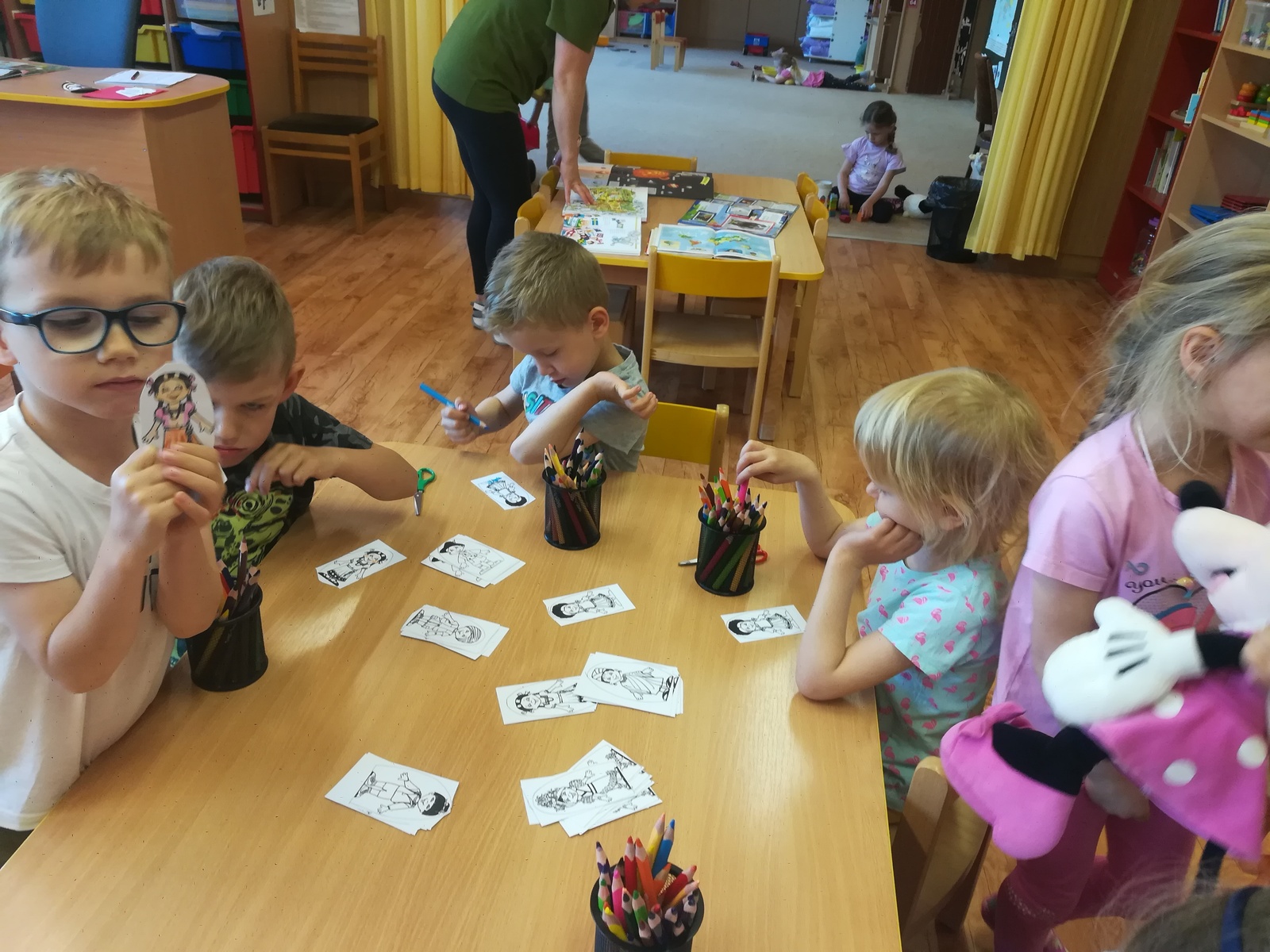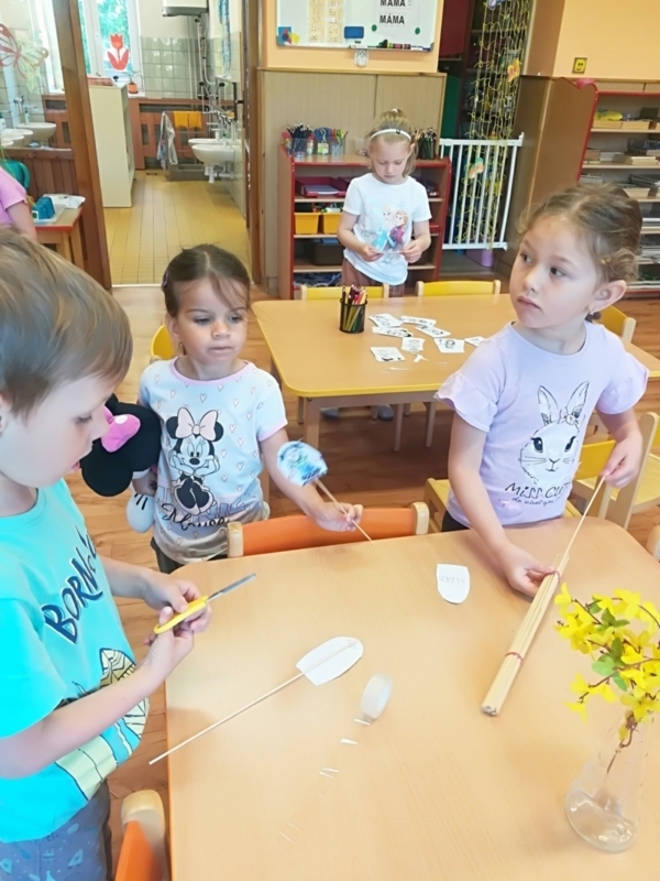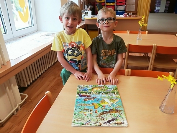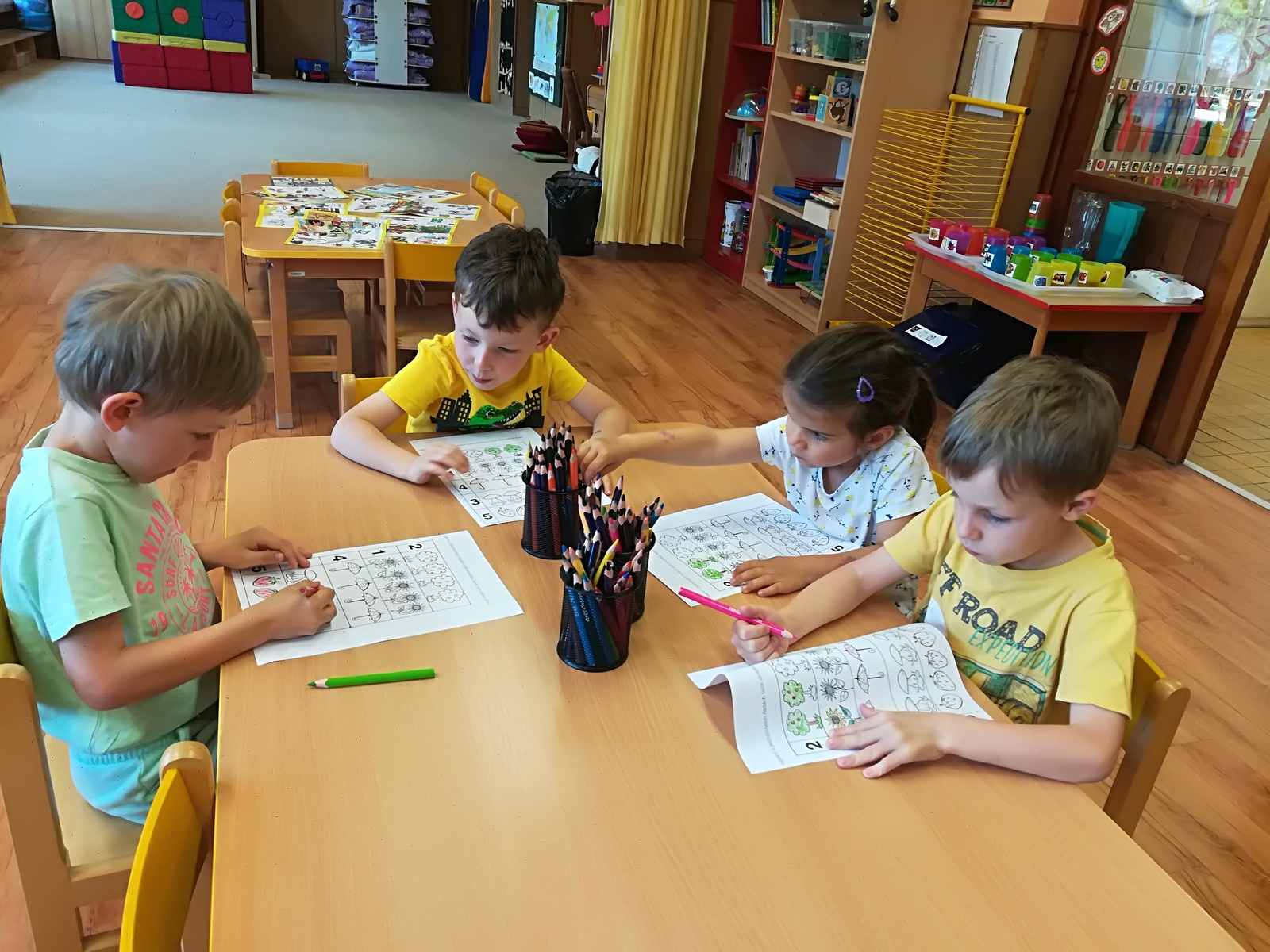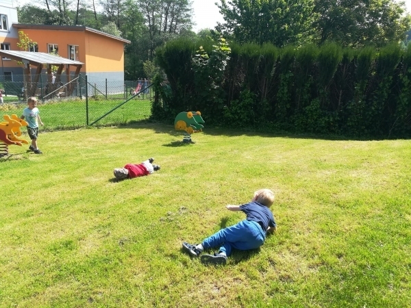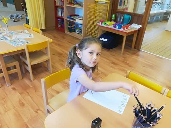O tom, že na celém světě žijí děti, které se od nás sice liší, ale zároveň jsou nám hodně podobné jsme si povídali v týdnu nazvaném Děti slaví svátek. Na mapě jsme si ukázali všechny světadíly, řekli si jejich názvy a snažili jsme se zapamatovat, že my žijeme v České republice, v Evropě. Vyrobili jsme si loutky dětí, vybarvovali, vystřihávali, při hrách s nimi jsme rozvíjeli komunikativní dovednosti, hráli jsme si na námořníky - cestovali lodí po světě…na papíru jsme zkoušeli rovnou čarou trefit míčem do branky. Při vybarvování obrázků jsme se řídili jejich počtem (do 5- ti). S Vašíkem jsme oslavili jeho narozeniny. Konečně nám počasí dovolilo na travnatém kopečku válet sudy :-) V pátek jsme si užili veselé dovádění s bublinkami a klaunem Hopsalínem.