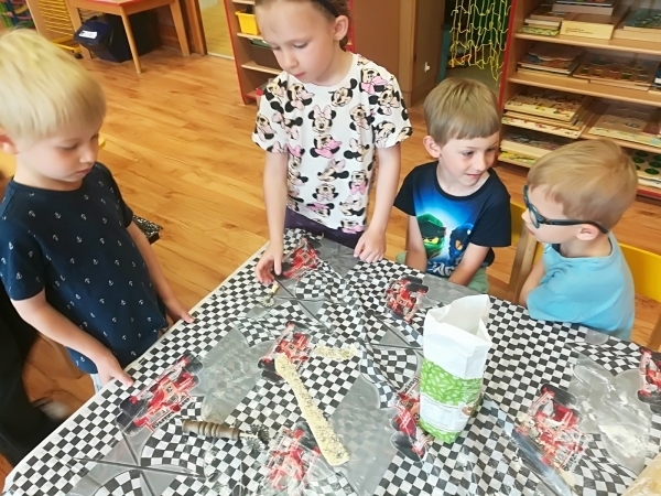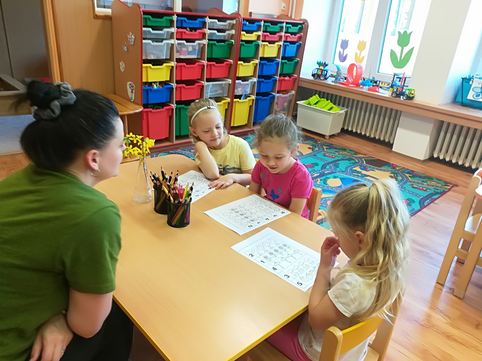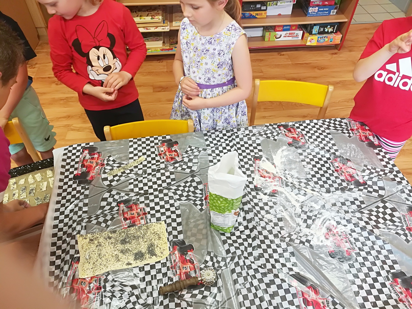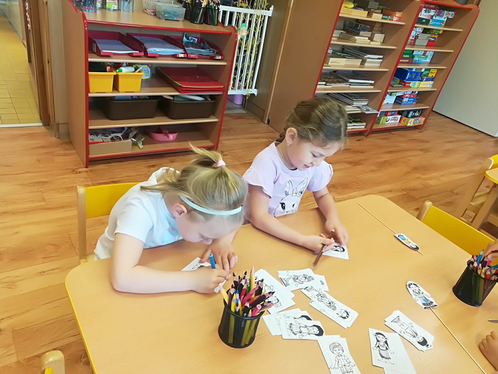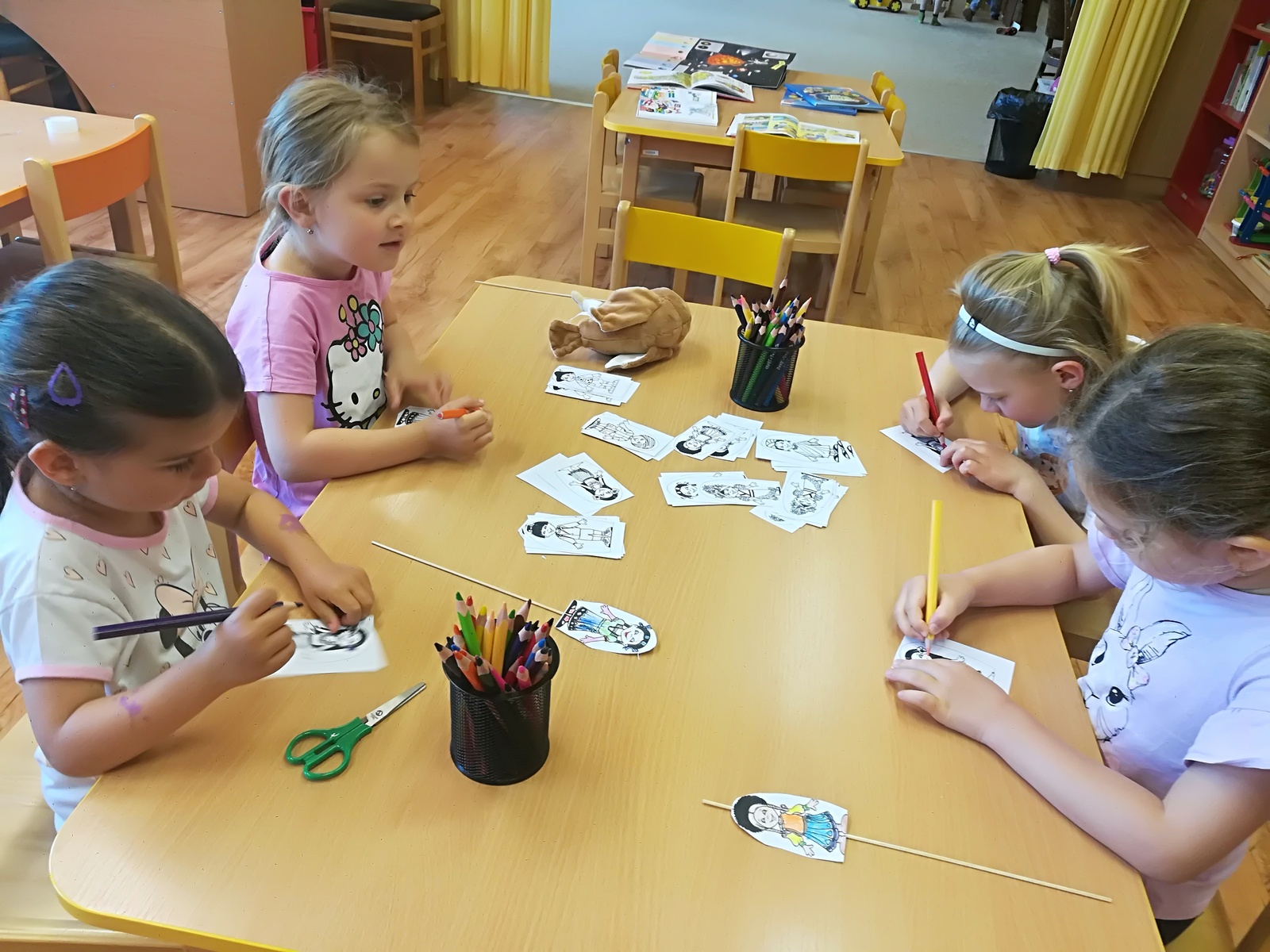 O tom, že na celém světě žijí děti, které se od nás sice liší, ale zároveň jsou nám hodně podobné jsme si povídali v týdnu nazvaném Děti slaví svátek. Na mapě jsme si ukázali všechny světadíly, řekli si jejich názvy a snažili jsme se zapamatovat, že my žijeme v České republice, v Evropě. Vyrobili jsme si loutky dětí, vybarvovali, vystřihávali, při hrách s nimi jsme rozvíjeli komunikativní dovednosti, hráli jsme si na námořníky - cestovali lodí po světě…na papíru jsme zkoušeli rovnou čarou trefit míčem do branky. Při vybarvování obrázků jsme se řídili jejich počtem (do 5- ti). S Vašíkem jsme oslavili jeho narozeniny. Konečně nám počasí dovolilo na travnatém kopečku válet sudy :-) V pátek jsme si užili veselé dovádění s bublinkami a klaunem Hopsalínem.
