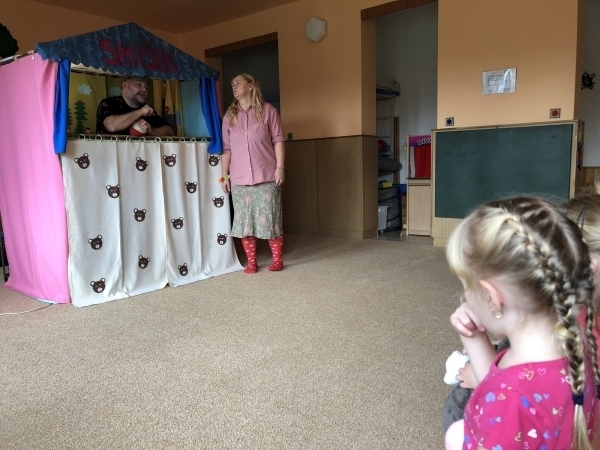 V pátek 27. 9. 2019 za námi přijelo do mateřské školky divadlo Smíšek s pohádkou "O třech medvědech". U pohádky jsme se naučili nové písničky a užili jsme si spoustu legrace.