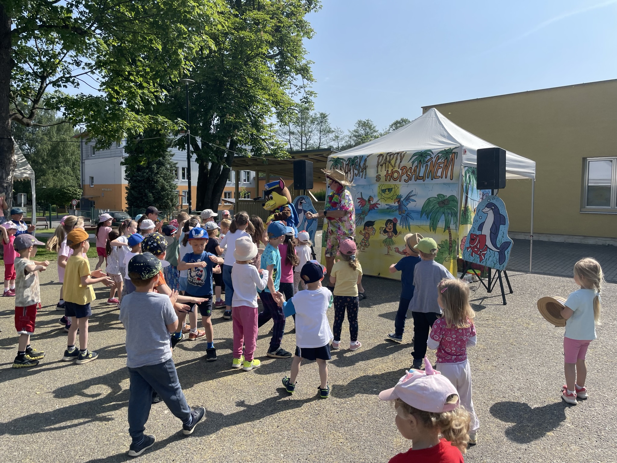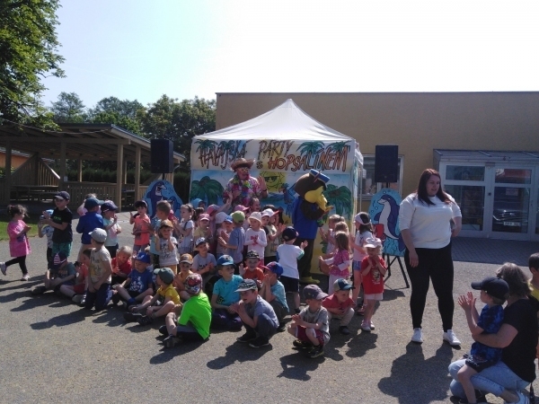 V pátek 2. 6. 2023 nás navštívil klaun Hopsalín ku příležitosti svátku všech dětí. Děti si zasoutěžily, zatancovaly a samozřejmě za to dostaly i nějakou malou odměnu.