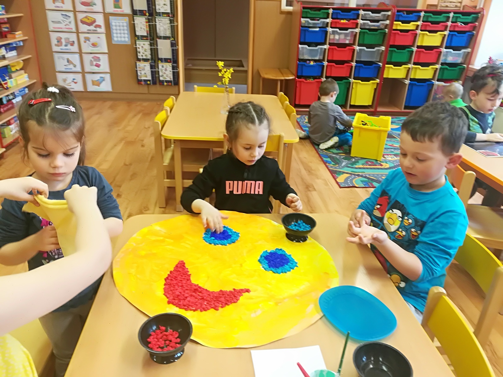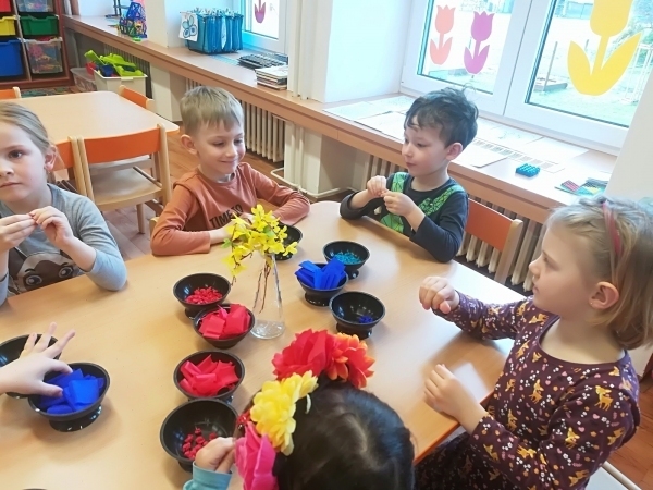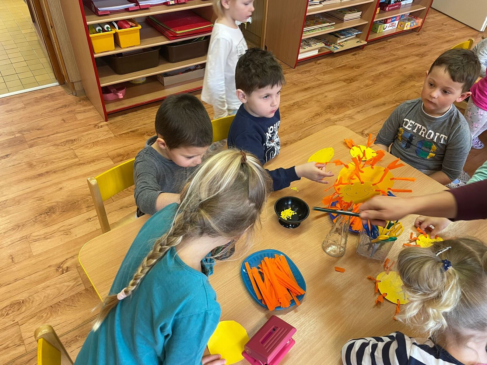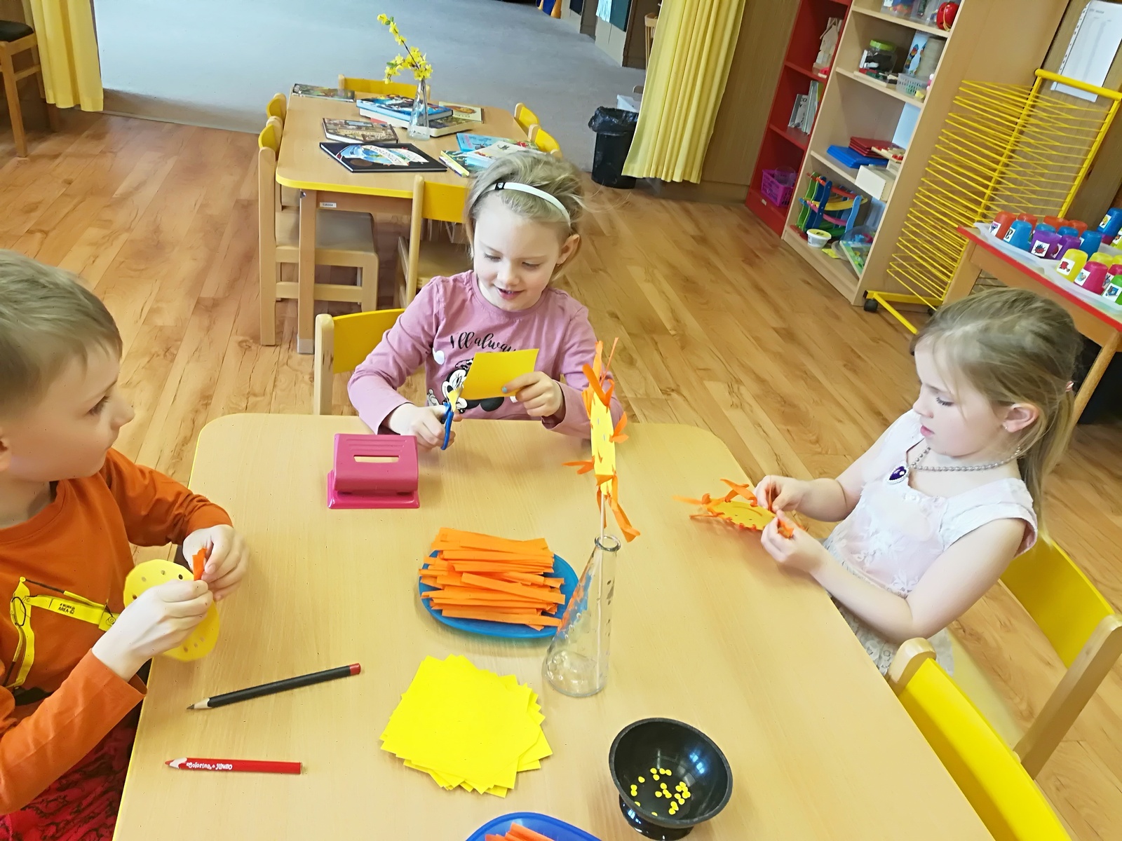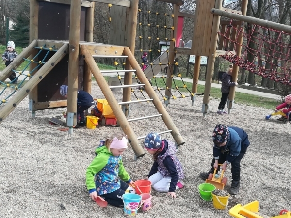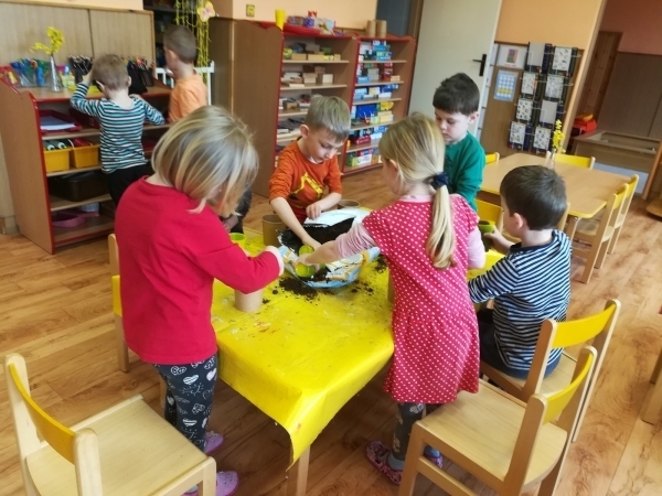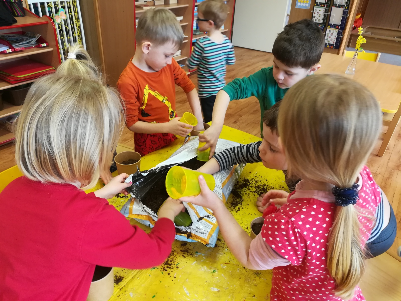V týdnu nazvaném "Hřej, sluníčko, hřej!" jsme se těšili z přicházejícího jara, poznávali jsme první jarní kytičky nejen na obrázcích, ale i venku, na vycházkách, zkoušeli jsme si zapamatovat jejich názvy, třeba při hudebně-pohybové hře Uvíjíme věneček. Vyrobili jsme si společně velké sluníčko, které se na nás bude usmívat v hracím pokojíčku a každý jedno malé na špejli, třeba do květináče. Dlouhou procházkou jsme došli až na ovčí farmu manželů Tomisových podívat se na jehňátka, ovečky, slepičky, pejsky a kačenky. Mikulášek P. nám představil svá oblíbená zvířátka – mravenečky. Poslechli jsme si nové písničky o jaru a do kelímků zaseli travní semínka. Sluníčka jsme si užívali i na zahradě.