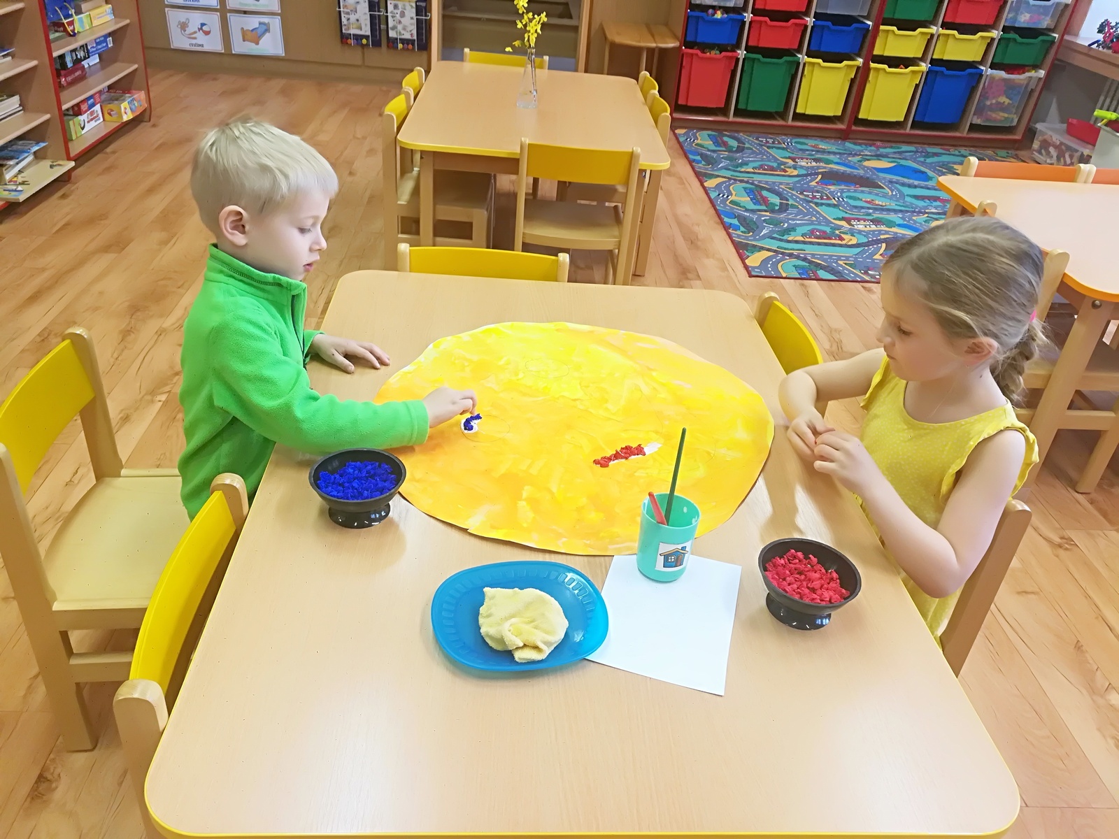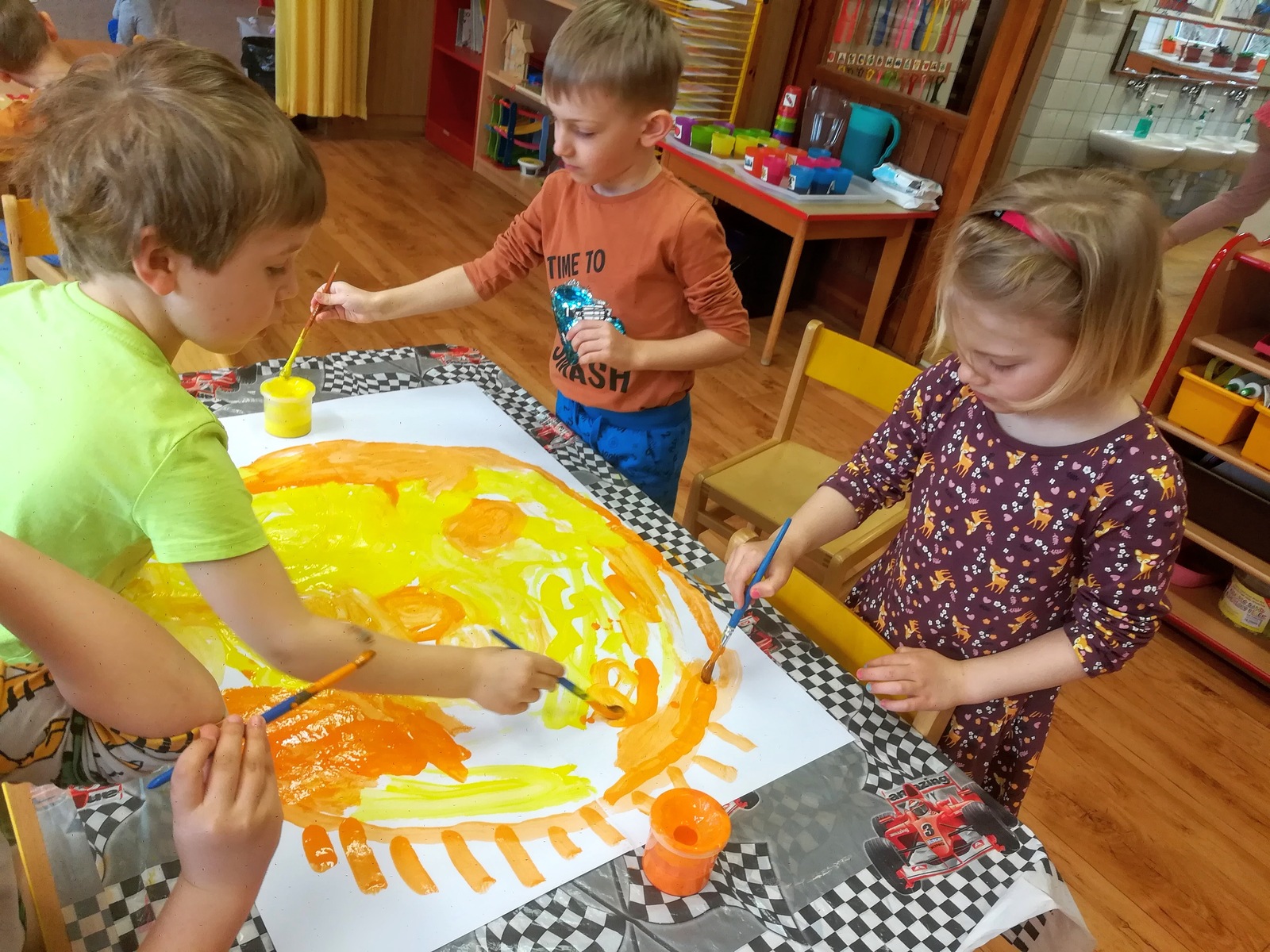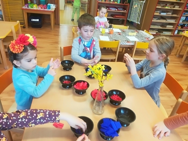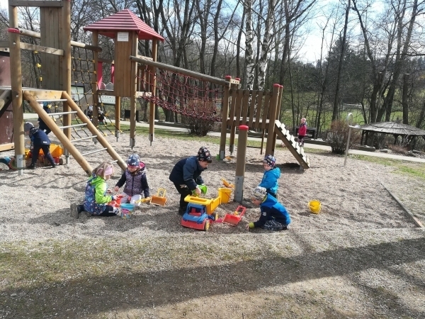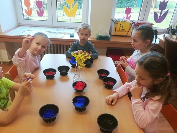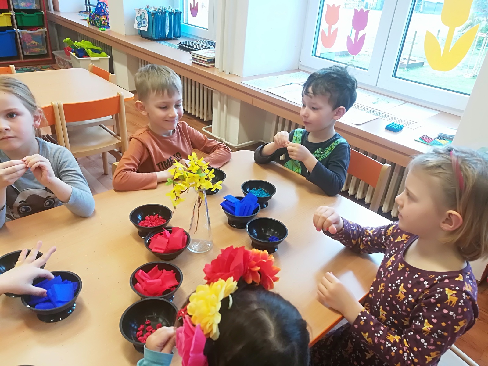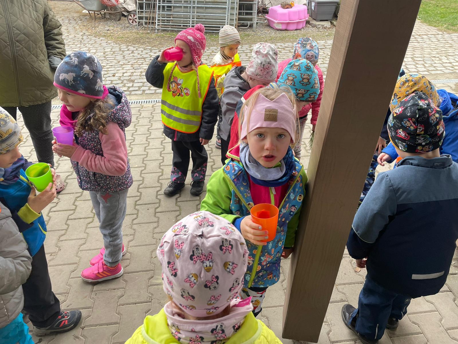 V týdnu nazvaném "Hřej, sluníčko, hřej!" jsme se těšili z přicházejícího jara, poznávali jsme první jarní kytičky nejen na obrázcích, ale i venku, na vycházkách, zkoušeli jsme si zapamatovat jejich názvy, třeba při hudebně-pohybové hře Uvíjíme věneček. Vyrobili jsme si společně velké sluníčko, které se na nás bude usmívat v hracím pokojíčku a každý jedno malé na špejli, třeba do květináče. Dlouhou procházkou jsme došli až na ovčí farmu manželů Tomisových podívat se na jehňátka, ovečky, slepičky, pejsky a kačenky. Mikulášek P. nám představil svá oblíbená zvířátka – mravenečky. Poslechli jsme si nové písničky o jaru a do kelímků zaseli travní semínka. Sluníčka jsme si užívali i na zahradě.