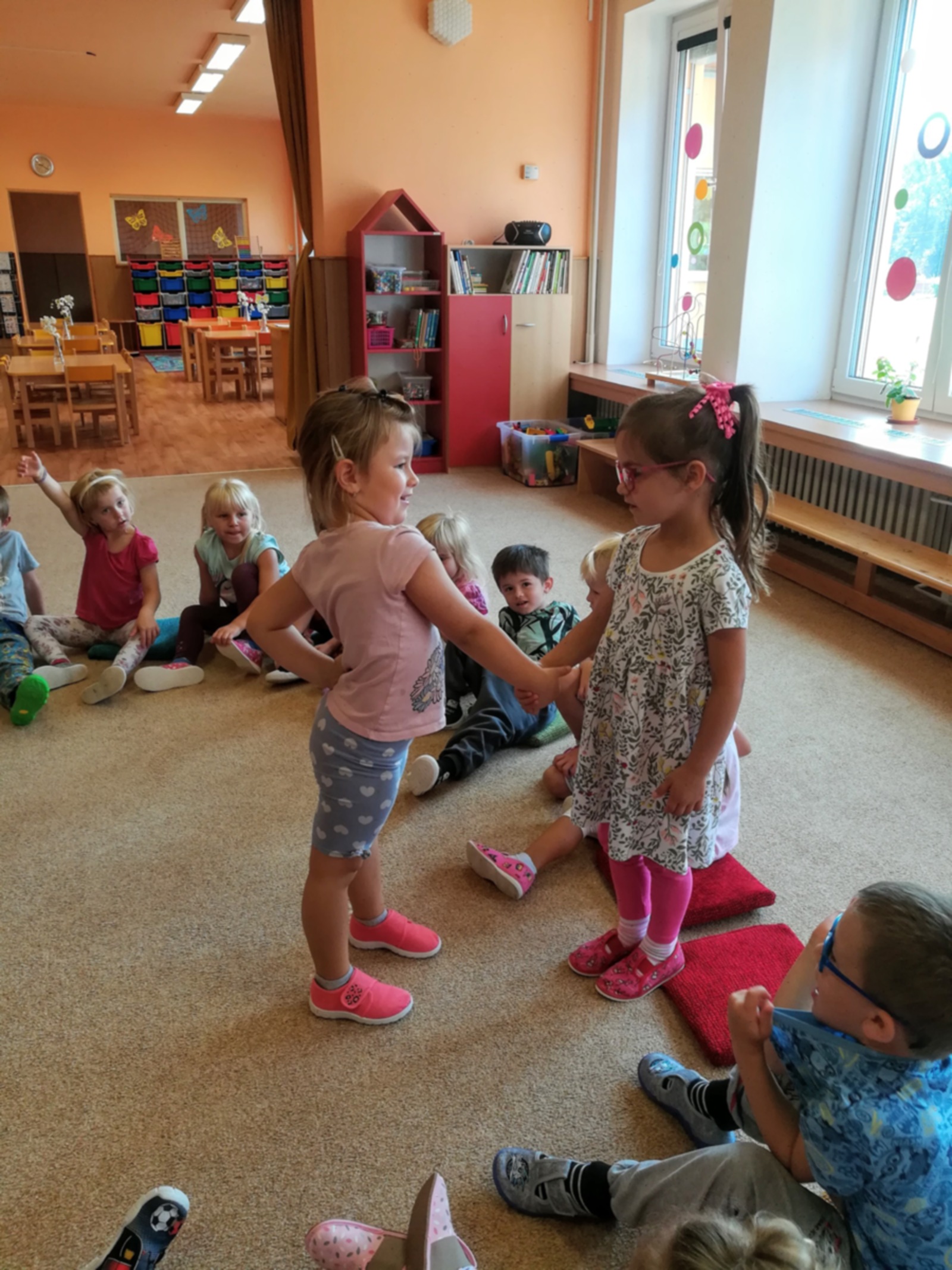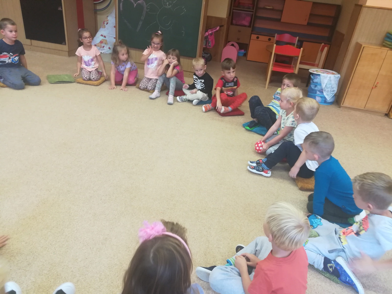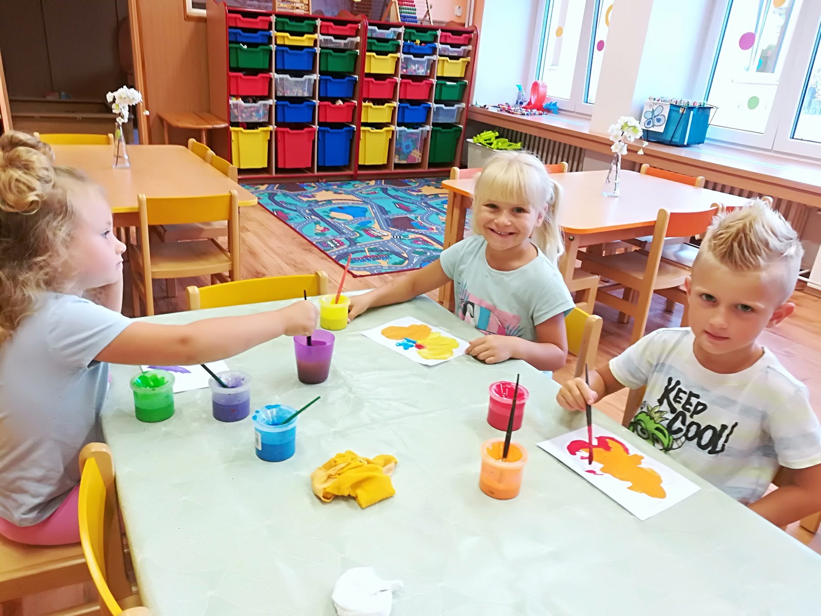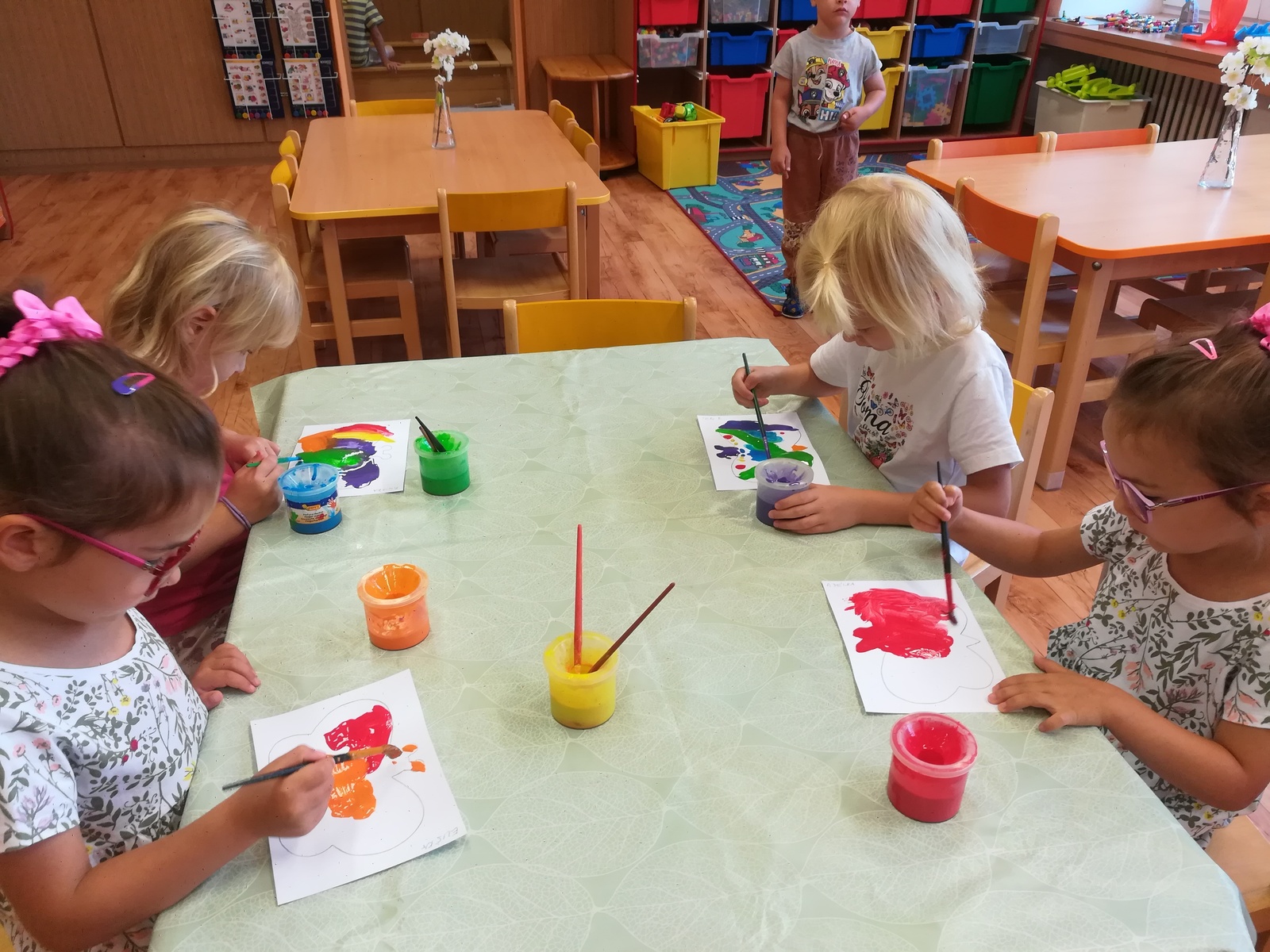 V týdnu nazvaném Kamarádi Motýlci jsme upevňovali přátelské vztahy mezi dětmi a znalost jména kamarádů při spontánních i řízených hrách, při pobytu venku, hráli jsme pohybové hry v kruhu s držením za ruce, posílali klubíčko od kamaráda ke kamarádovi- "pavučinka přátelství", barvičkami malovali motýlka, vystřihli ho podle čáry, říkali jsme si "Motýlí" básničku a zpívali písničku o tom, že jsme kamarádi a máme se rádi. Oslavili jsme narozeniny Adélky, Elišky, Timejky a Péti. V pátek jsme zkusili dokreslením detailů obličeje a vybarvením předtištěné postavičky vyjádřit "jak se cítím ve školce".