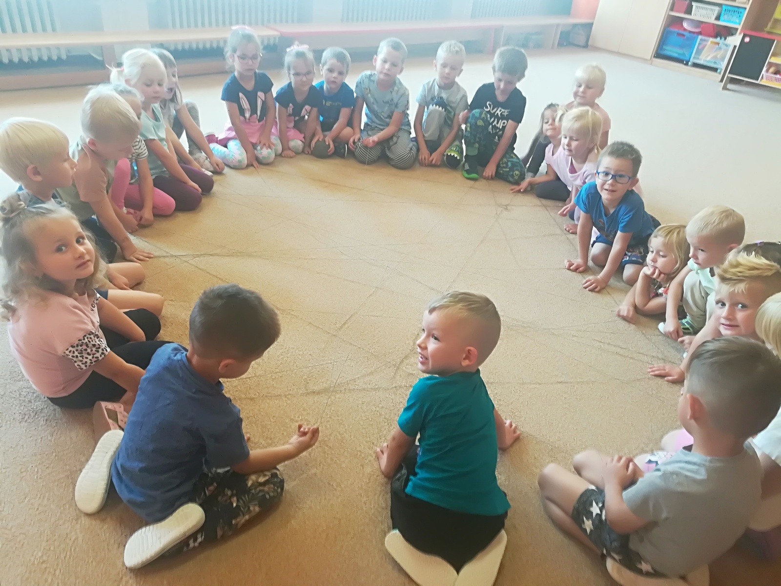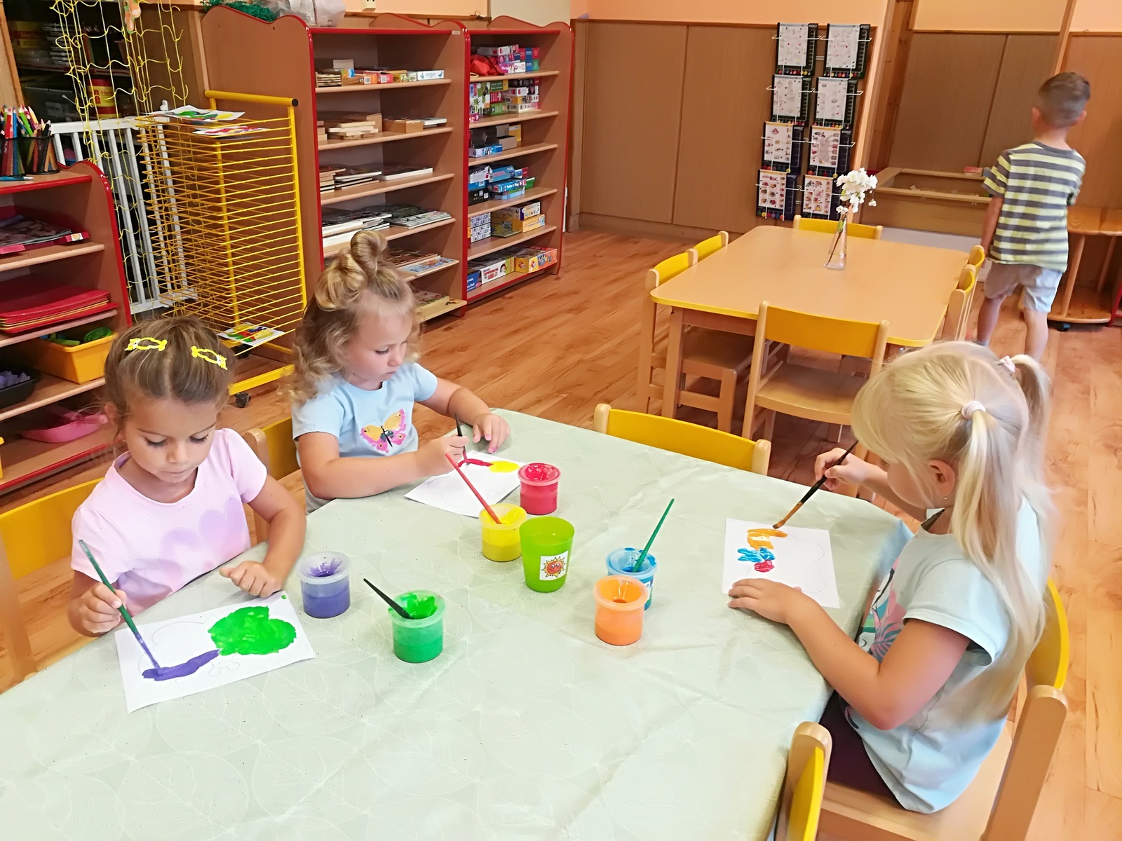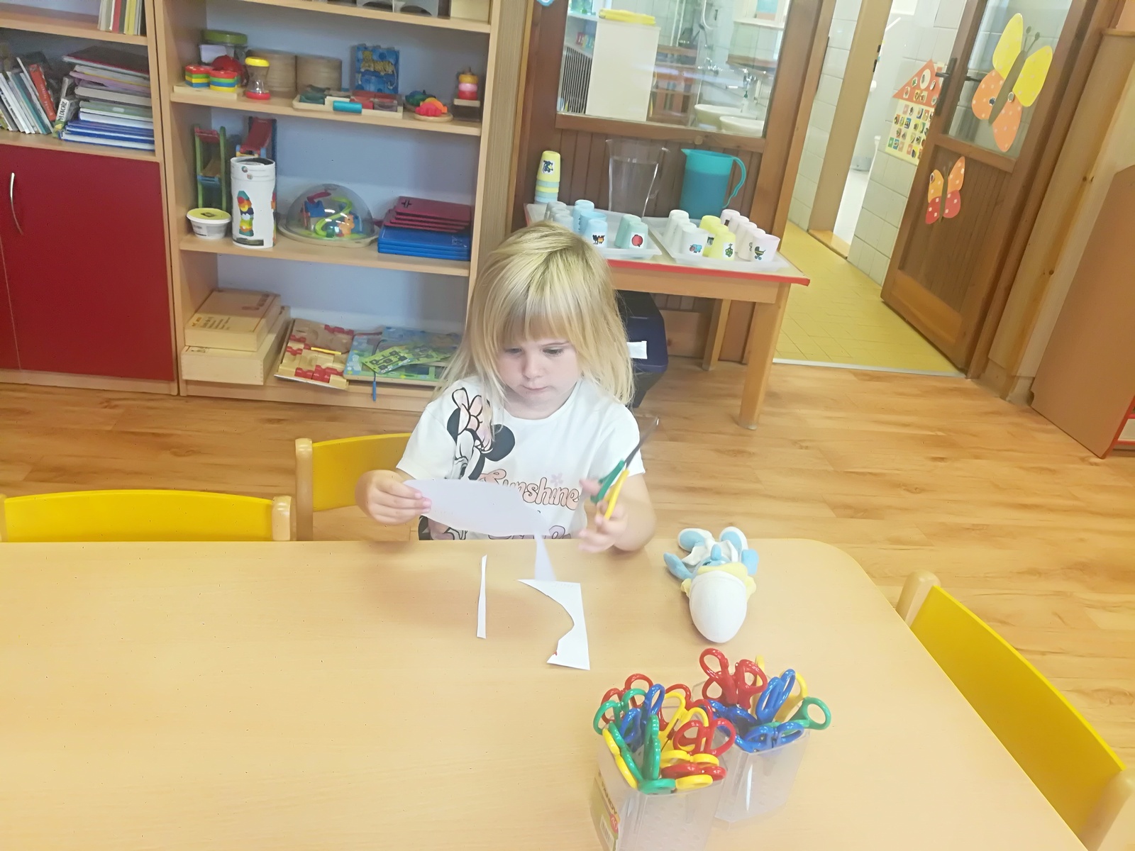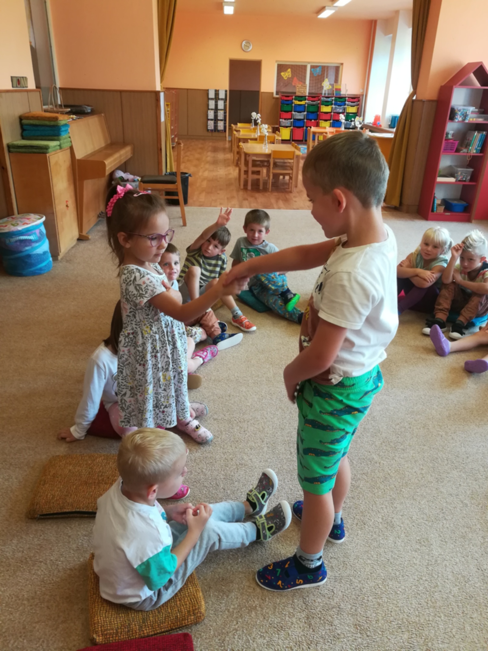 V týdnu nazvaném Kamarádi Motýlci jsme upevňovali přátelské vztahy mezi dětmi a znalost jména kamarádů při spontánních i řízených hrách, při pobytu venku, hráli jsme pohybové hry v kruhu s držením za ruce, posílali klubíčko od kamaráda ke kamarádovi- "pavučinka přátelství", barvičkami malovali motýlka, vystřihli ho podle čáry, říkali jsme si "Motýlí" básničku a zpívali písničku o tom, že jsme kamarádi a máme se rádi. Oslavili jsme narozeniny Adélky, Elišky, Timejky a Péti. V pátek jsme zkusili dokreslením detailů obličeje a vybarvením předtištěné postavičky vyjádřit "jak se cítím ve školce".