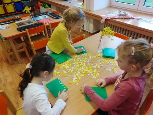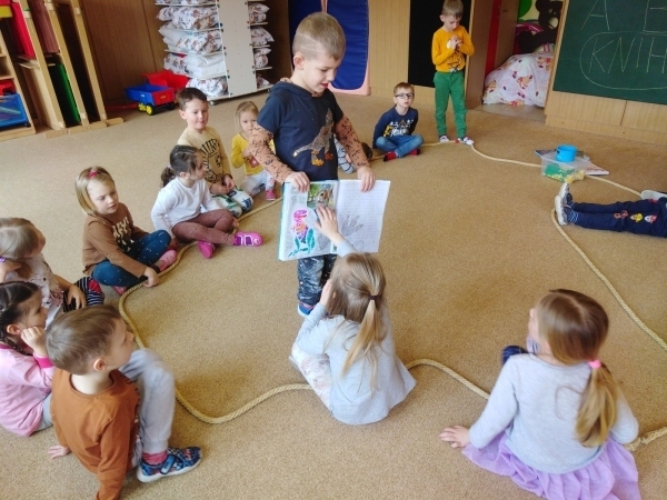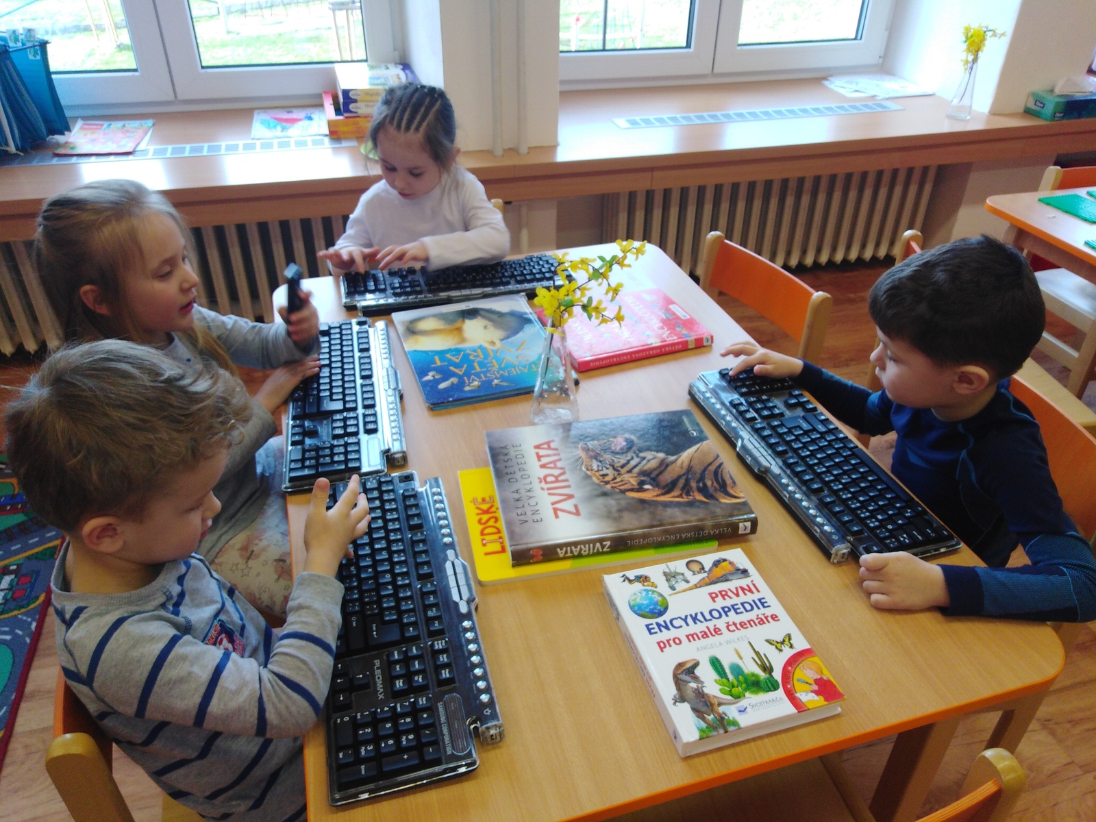 Poslední zimní týden jsme věnovali knížkám. Děti představily kamarádům svou oblíbenou knížku, pověděly nám o čem je, společně jsme si knížky prohlíželi a četli si z nich před spaním a v odpoledním čase. Abychom věděli, kam jsme v knížce dočetli, vyrobil si každý svou záložku. Povídali jsme si o tom, co je to knížka, co se nám na knížkách líbí, jak se s knížkou zachází a kdo nám doma čte před spaním. Seznámili jsme se s pojmem slovo, písmeno, věta, autor, ilustrace ... Děti si vyrobily svou pohádkovou knížku (leporelo), kde sestavily obrázky dle dějové posloupnosti. Malovaly barvami ilustraci ke své oblíbené knížce. Hledaly rýmy, vytleskávaly slabiky, sestavovaly slova podle předlohy, skládaly svá jména při hraní s didaktickou pomůckou ABECEDA a "psaly na počítači". Tomášek nám v rámci školního projektu představil svá oblíbená zvířátka. Děkujeme rodičům, kteří se na našem knižním týdnu podíleli a přejeme všem, aby se svými dětmi prožili ještě spoustu krásných chvil strávených s knížkou.