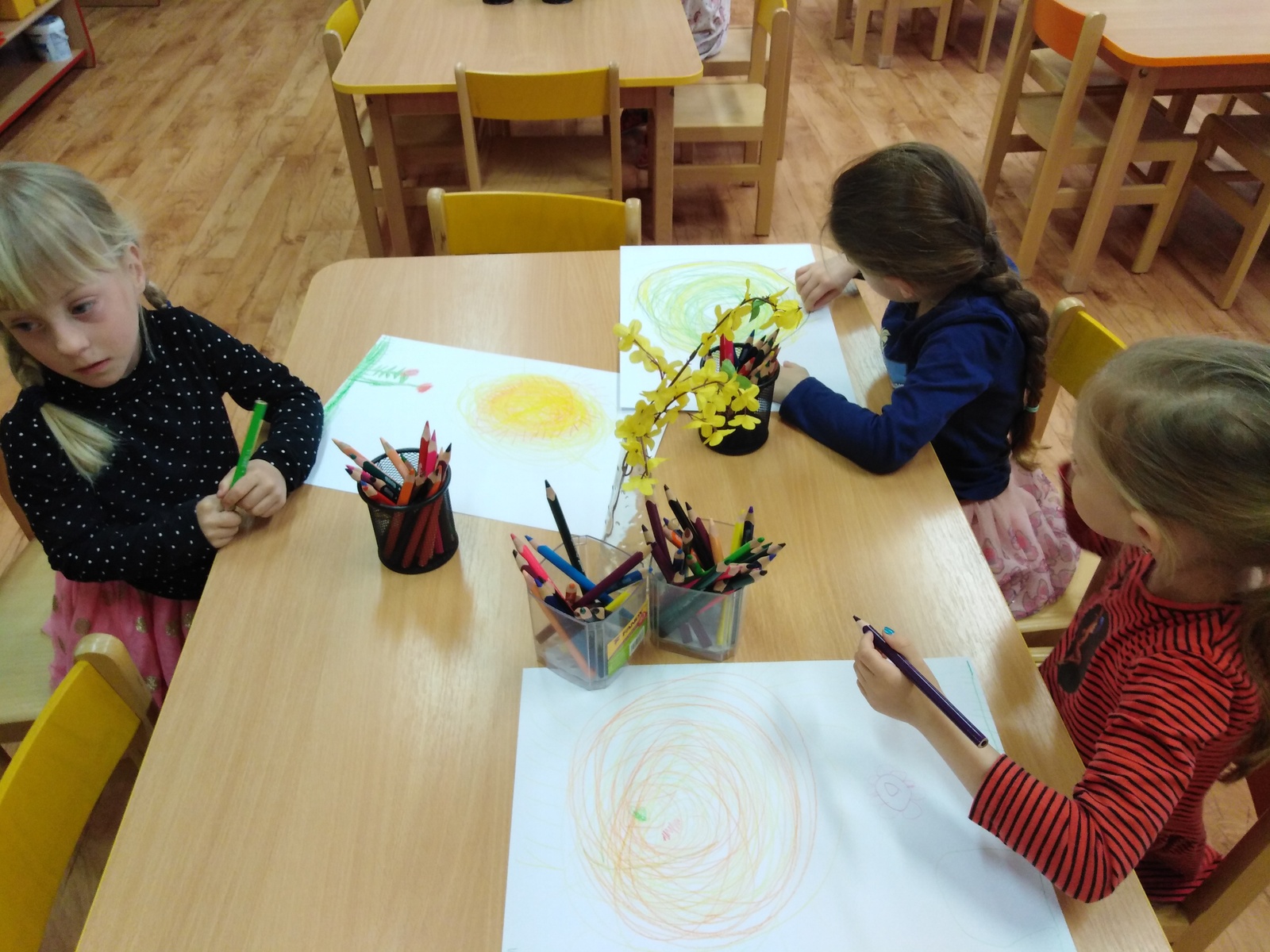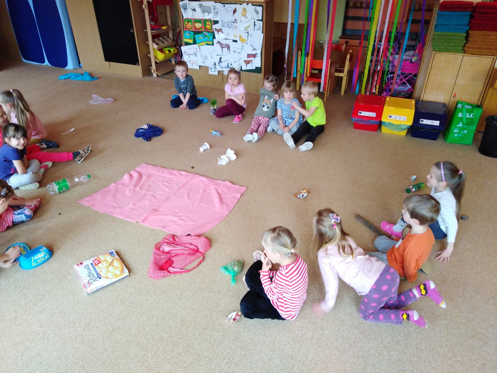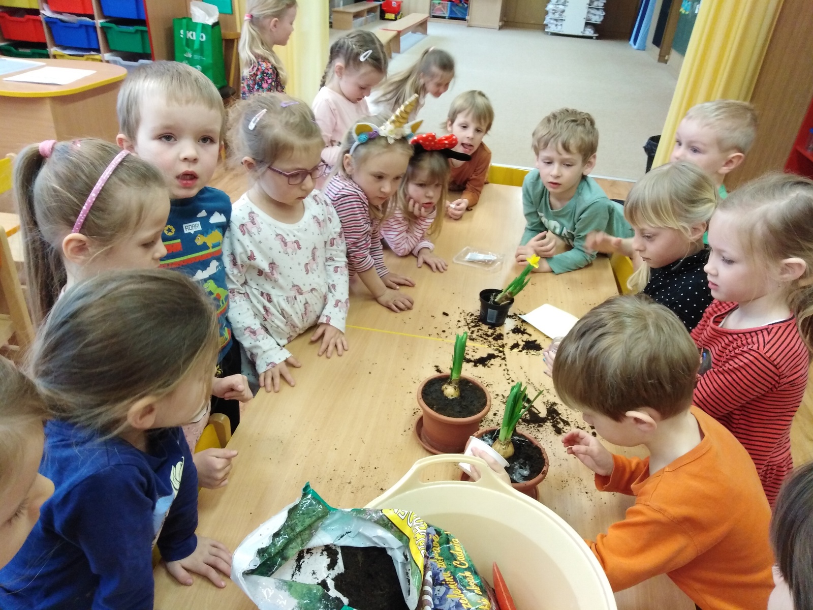 Prostřednictvím environmentální výchovy v tomto týdnu byly děti vedeny k poznávání přírody, k objevování, experimentování. Aby se děti něco o tomto tématu dozvěděly a zapamatovaly si to, realizovali jsme pokusy a experimenty jako "semínko", "příroda" a "znečištěný les". Děti pozorovaly růst květin v rozdílných podmínkách. Zasadily semínko jako malí zahradníčci a budou se o rostlinku starat až do její dospělosti, kdy za jejich snahu a píli budou na konci odměněny jejími plody. Jako ochránci přírody procvičily třídění odpadu do správných kontejnerů. Hledaly odpovědi na otázky: Odkud se rostliny berou? Jak o ně pečovat? K čemu se dají různé plodiny využít? Co rostlinám škodí a co prospívá? Děti si také trénovaly uvolnění ramenního, loketního a zápěstního kloubu. Grafickým záznamem kreslily sluníčko a jarní travičku. Krásně namalovaly vývojová stádia růstu zvolené rostlinky. Vytvořily si květinku z hlíny. Zahrály si hudebně pohybovou hru "Uvijeme věneček" a tělíčko si protáhly u cvičení motivovaného jarní přírodou.