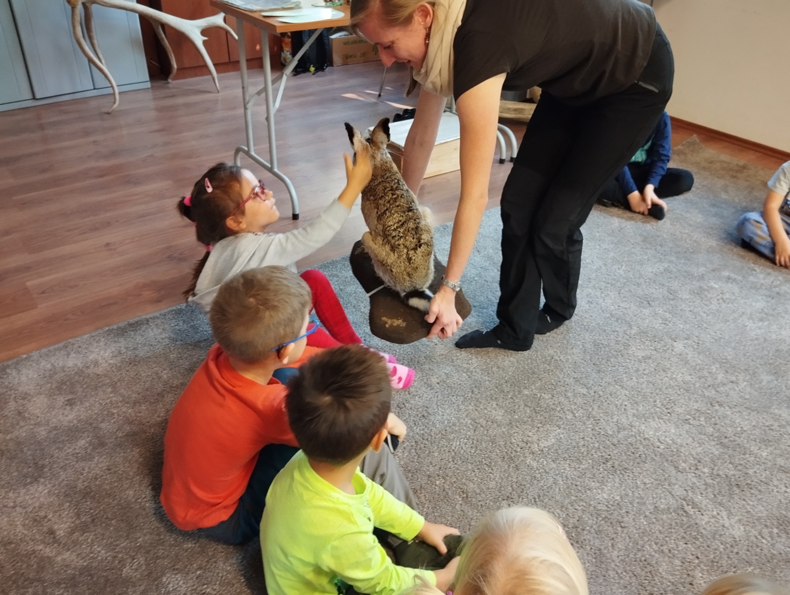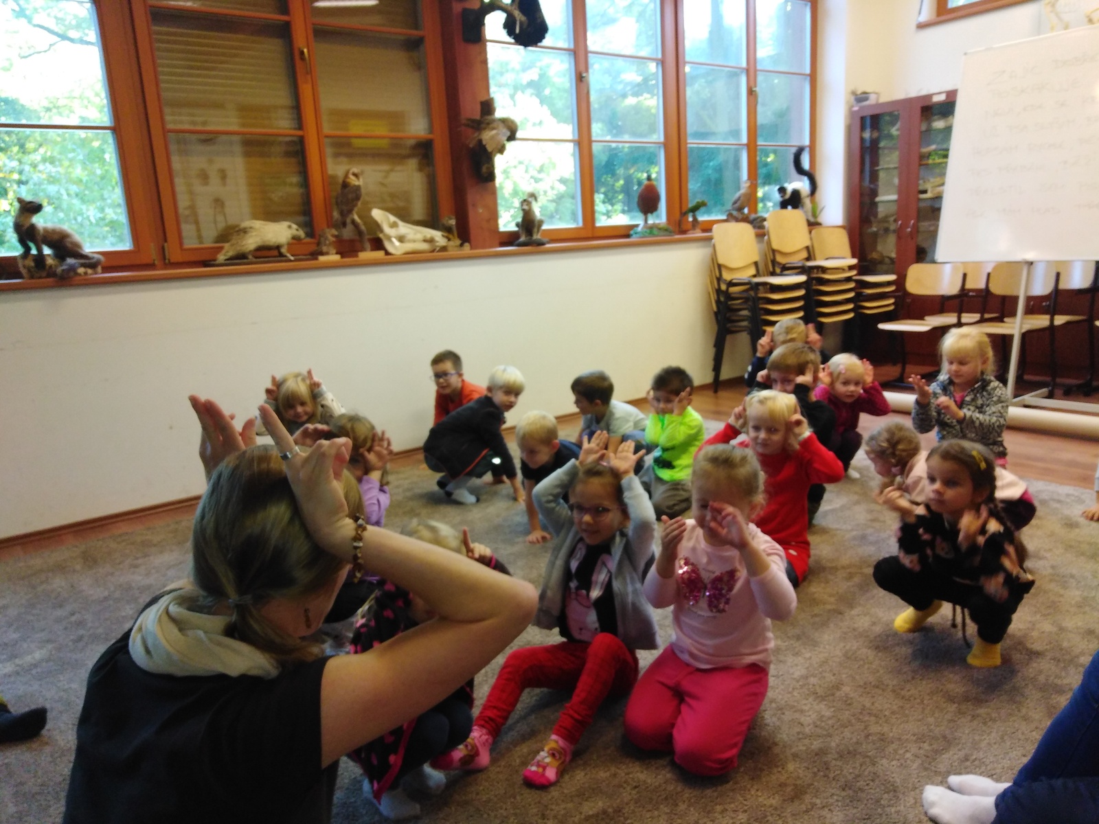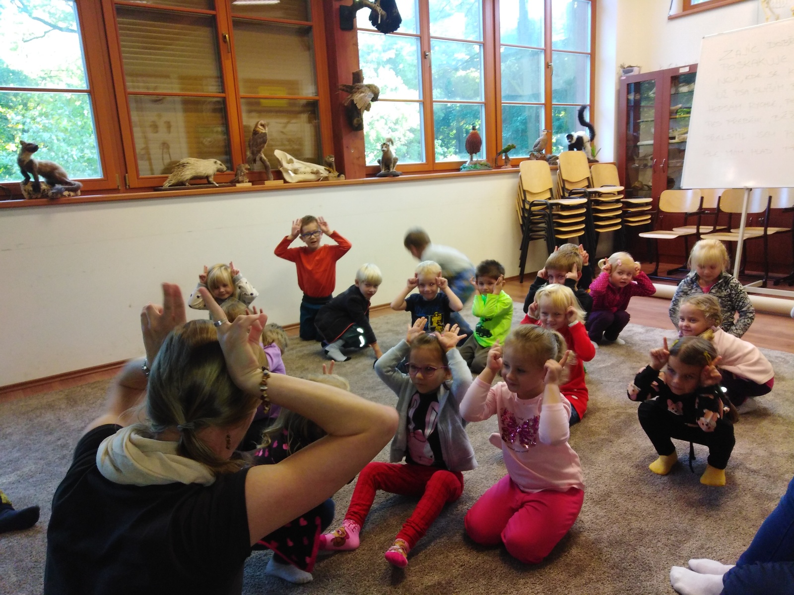 Výlet do ZOO se nám krásně vydařil. Počasí nám přálo, zvířátka se moc neschovávala a program "Na skok se zajícem" se dětem moc líbil, dozvěděly se při něm mnoho nových, zajímavých informací o našem ušatém lesním kamarádovi. Pochutnali jsme si na dobrotách z batůžku a stihli jsme si i chvilku protáhnout těla na zoo-prolézačkách.
