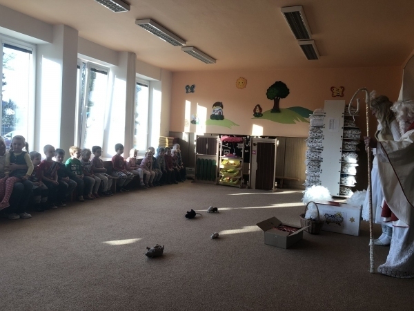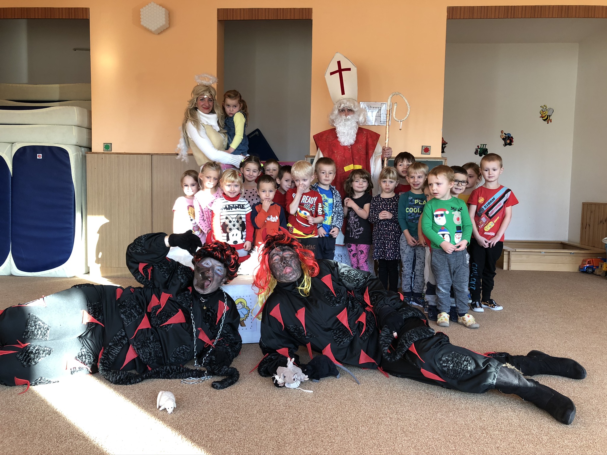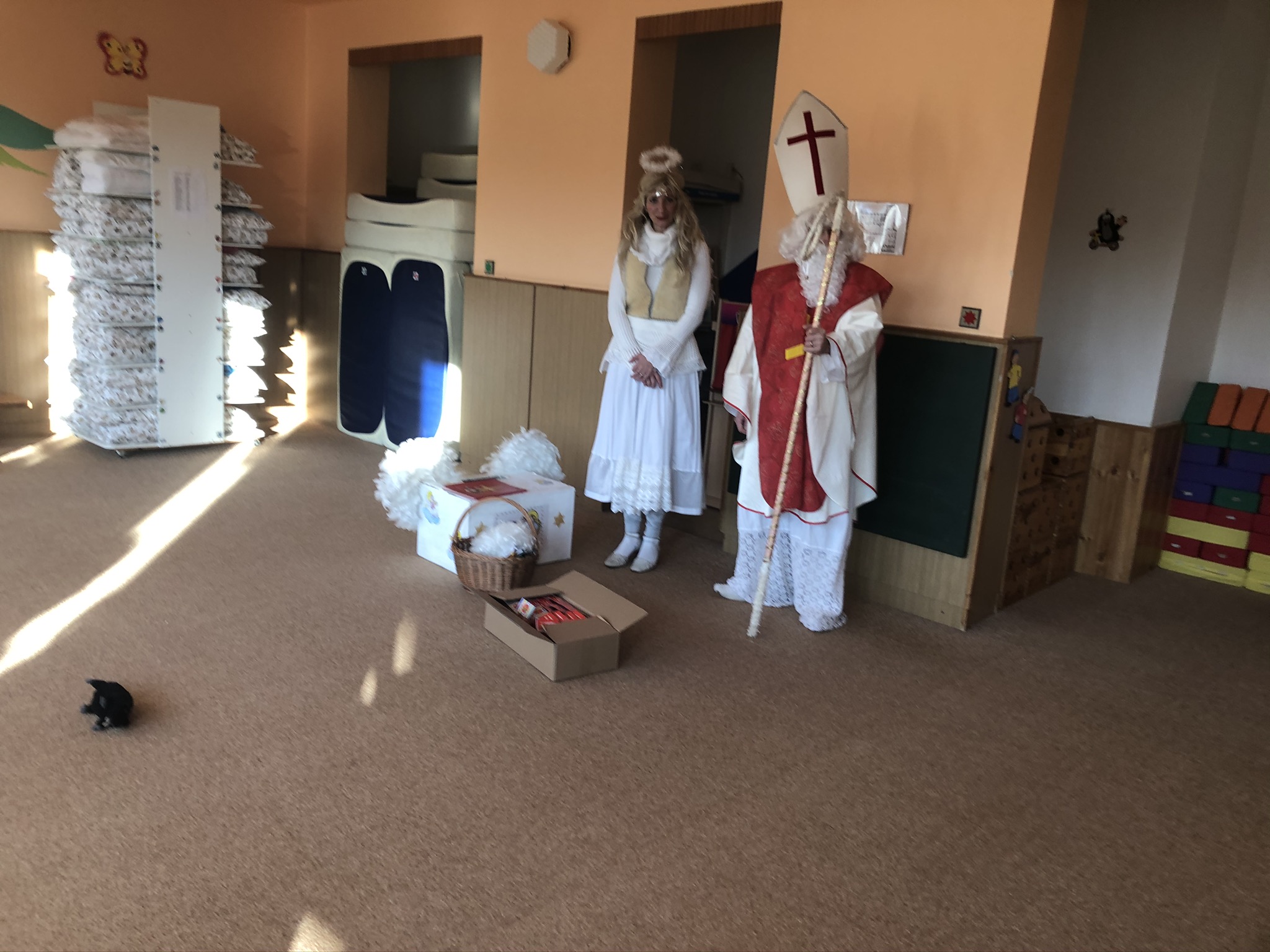 V pátek 6. 12. 2019 přišel za dětmi na návštěvu Mikuláš a vzal s sebou i své pomocníky, anděla a dva čerty. Mikuláš ale věděl, že ve třídě Motýlků jsou jen hodné děti, proto čerty vůbec k dětem nepustil. A když děti zazpívali Mikuláši písničku, kterou jsme si nacvičili, nechal nám tady i malé dárečky pro děti.