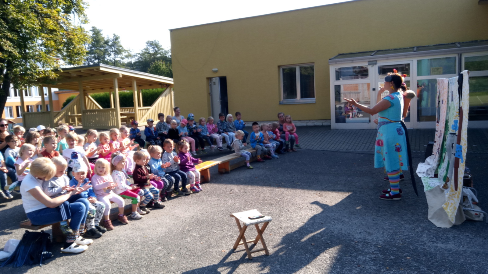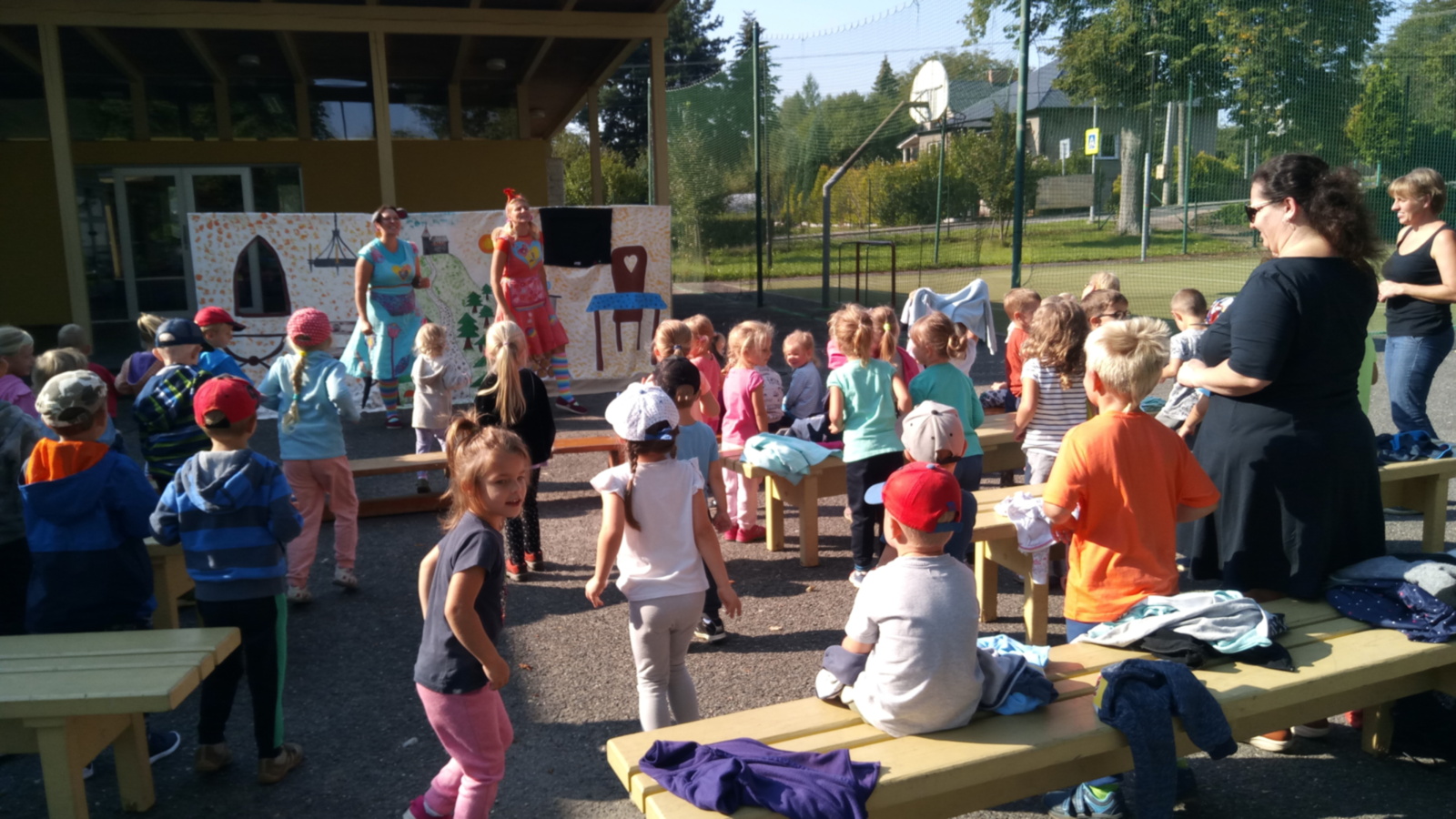 V pondělí 14. 9. 2020 nás v mateřské školce navštívilo divadélko Entetýky. Díky krásnému počasí nám myška Klárka a veverka Terka zahrály venku, a to zábavnou, a hlavně poučnou pohádku o tom, že nejen princezny se musí umět slušně chovat.