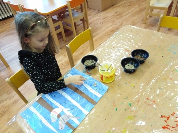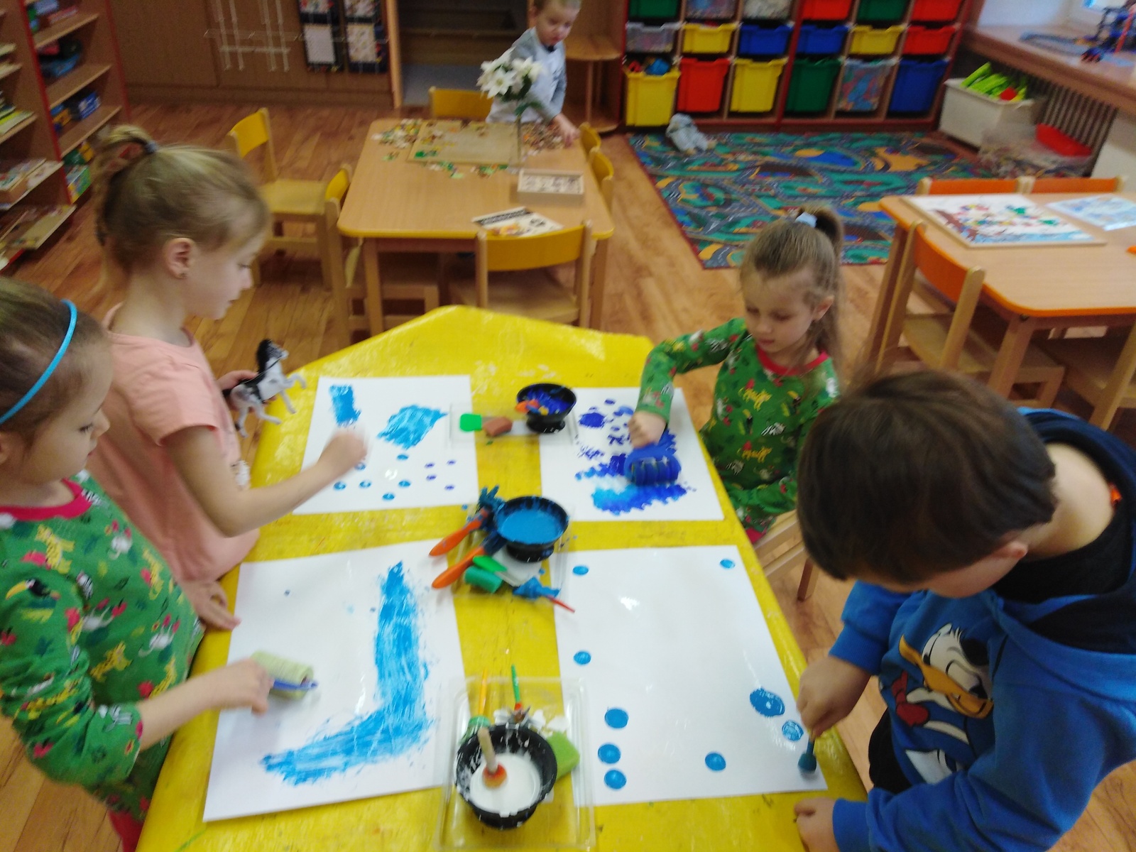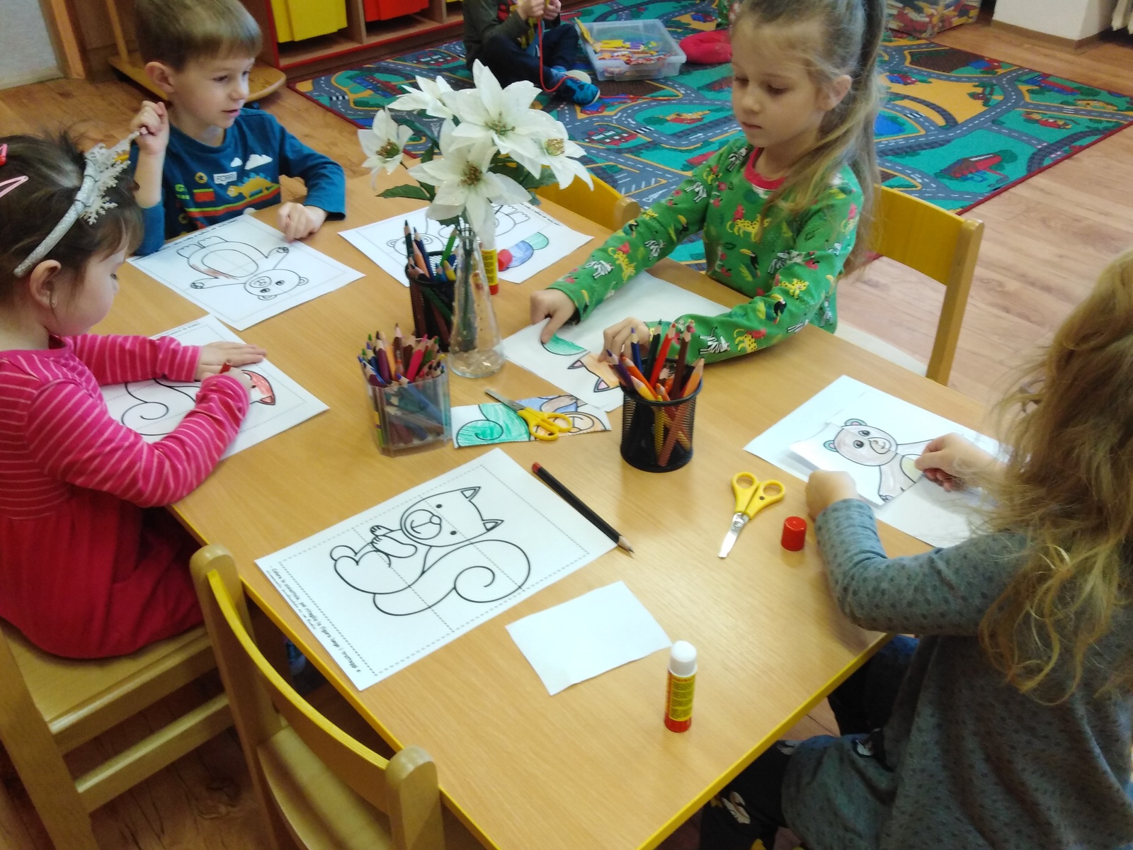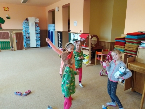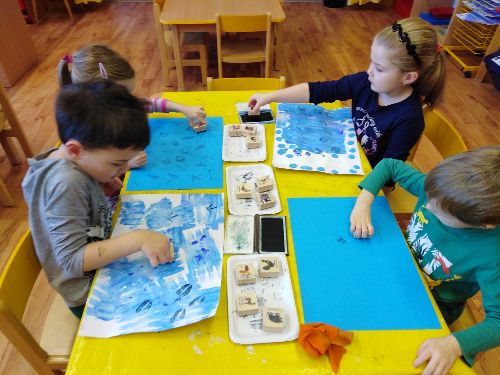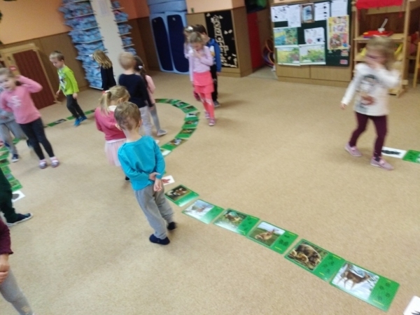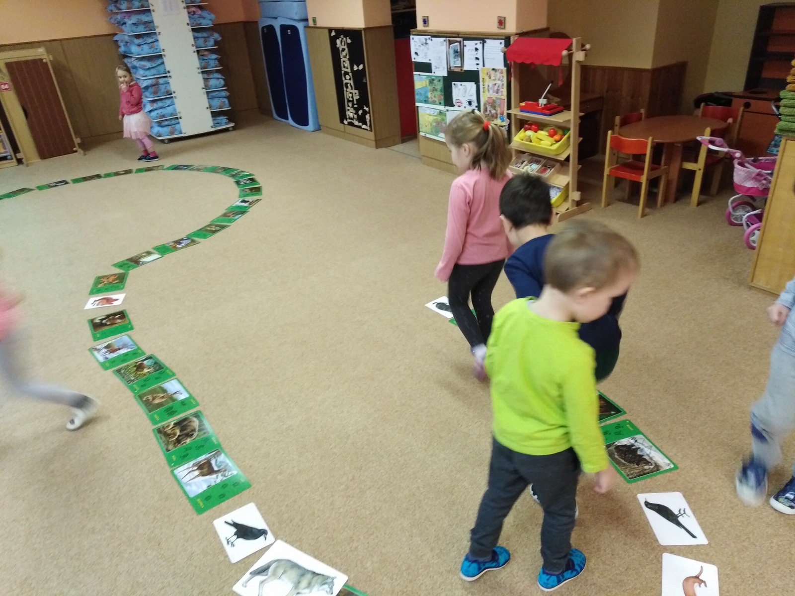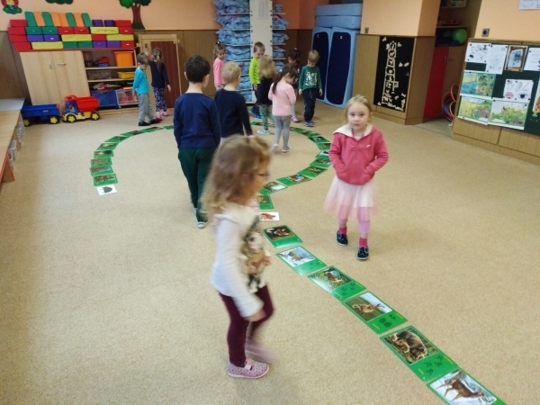 V týdnu s názvem "Rej zvířátek kolem nás!" jsme si povídali o volně žijících zvířátkách kolem nás. Rozeznávali jsme, která zvířátka žijí na loukách, v lesích i u potůčků a povídali si o jejich životě v zimním období. Děti si prohlížely a tiskly stopy zvířat. Prohlubovaly si poznatky kde, jak a čím se zvířátka živí. Povídali jsme si, jak zvířátkům můžeme pomáhat. Četli jsme si pohádky o zvířátkách, prohlíželi si encyklopedie, pohybově jsme zkoušeli zvířátka zdramatizovat. Zazpívali jsme písničky Padá sníh a Sněží.
