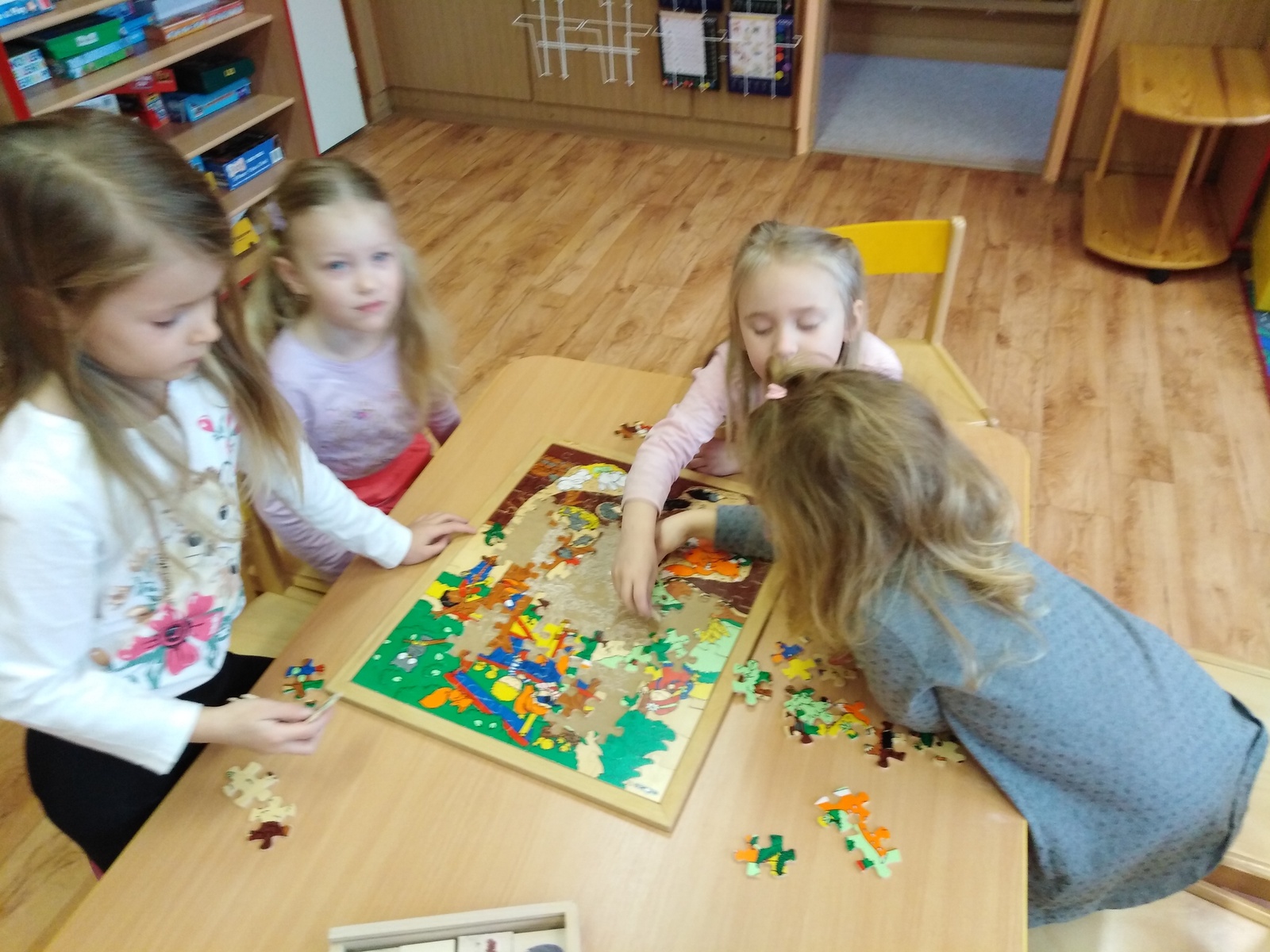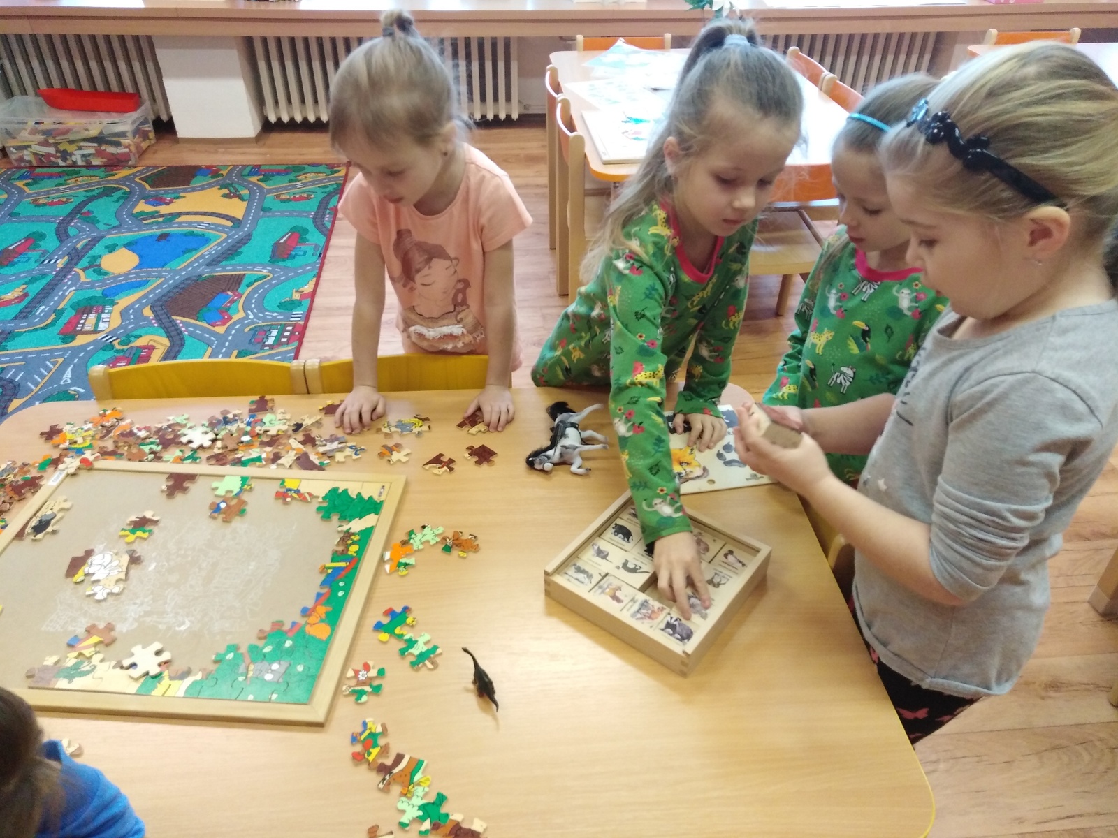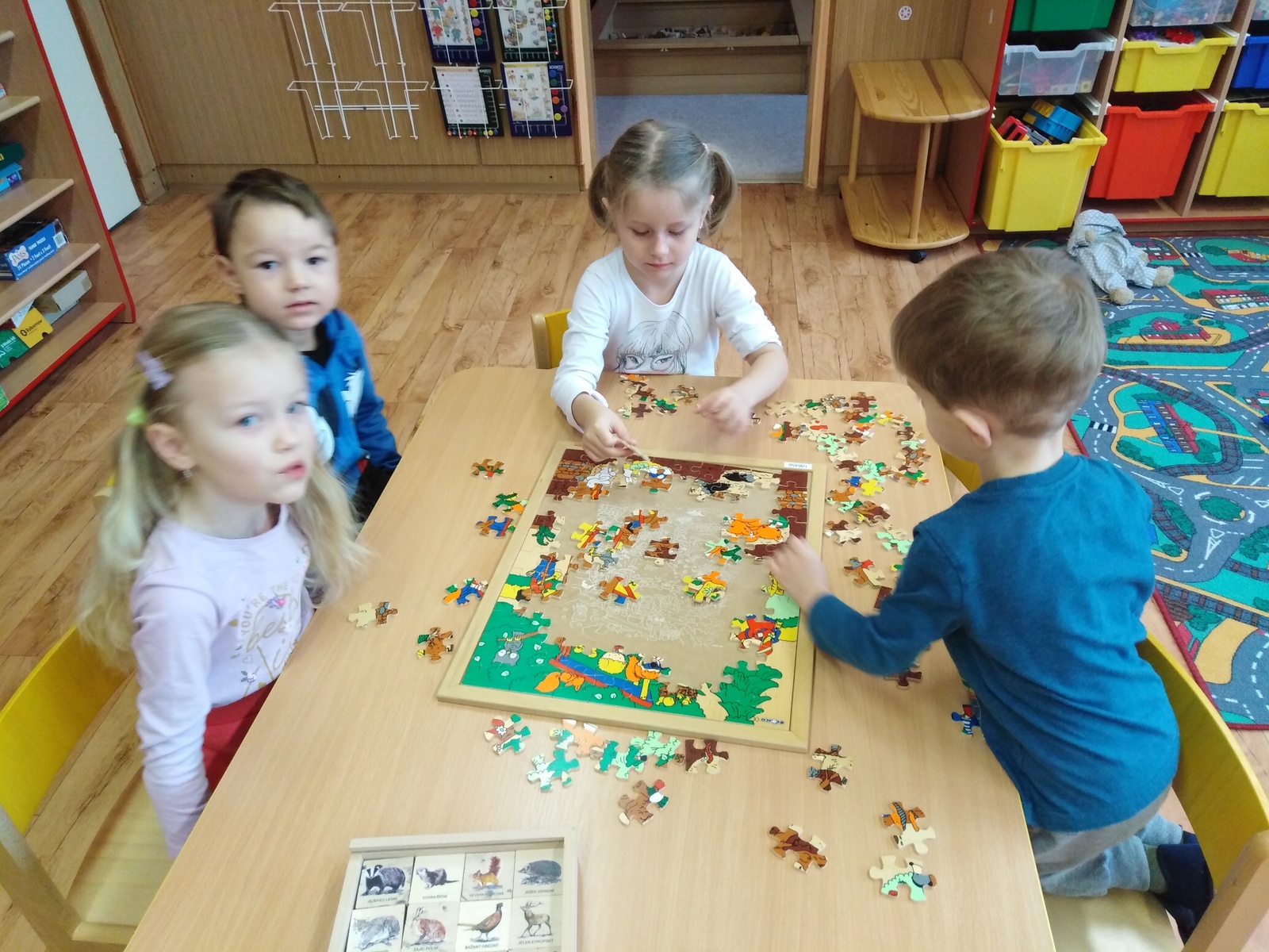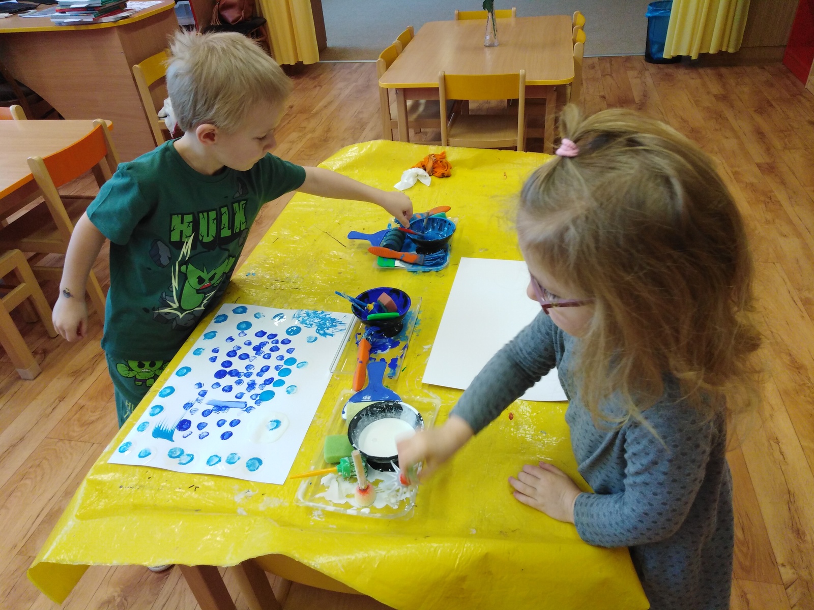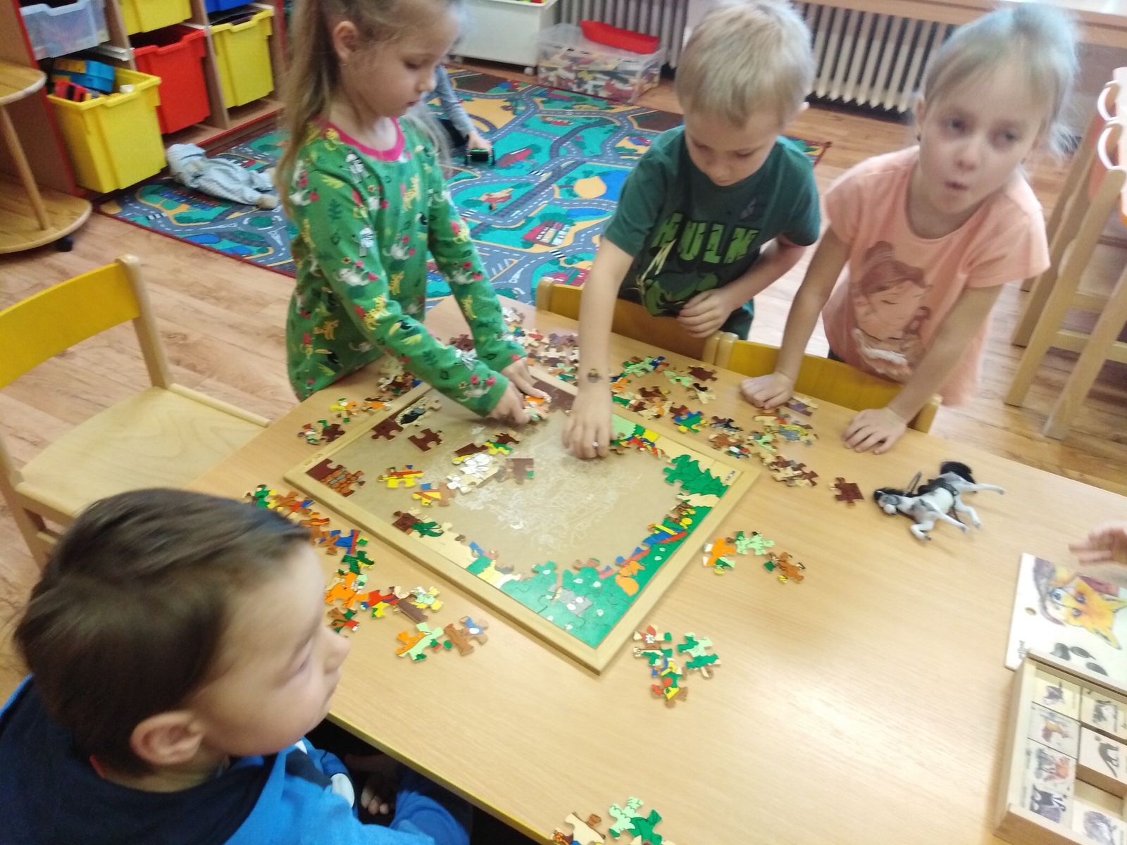 V týdnu s názvem "Rej zvířátek kolem nás!" jsme si povídali o volně žijících zvířátkách kolem nás. Rozeznávali jsme, která zvířátka žijí na loukách, v lesích i u potůčků a povídali si o jejich životě v zimním období. Děti si prohlížely a tiskly stopy zvířat. Prohlubovaly si poznatky kde, jak a čím se zvířátka živí. Povídali jsme si, jak zvířátkům můžeme pomáhat. Četli jsme si pohádky o zvířátkách, prohlíželi si encyklopedie, pohybově jsme zkoušeli zvířátka zdramatizovat. Zazpívali jsme písničky Padá sníh a Sněží.