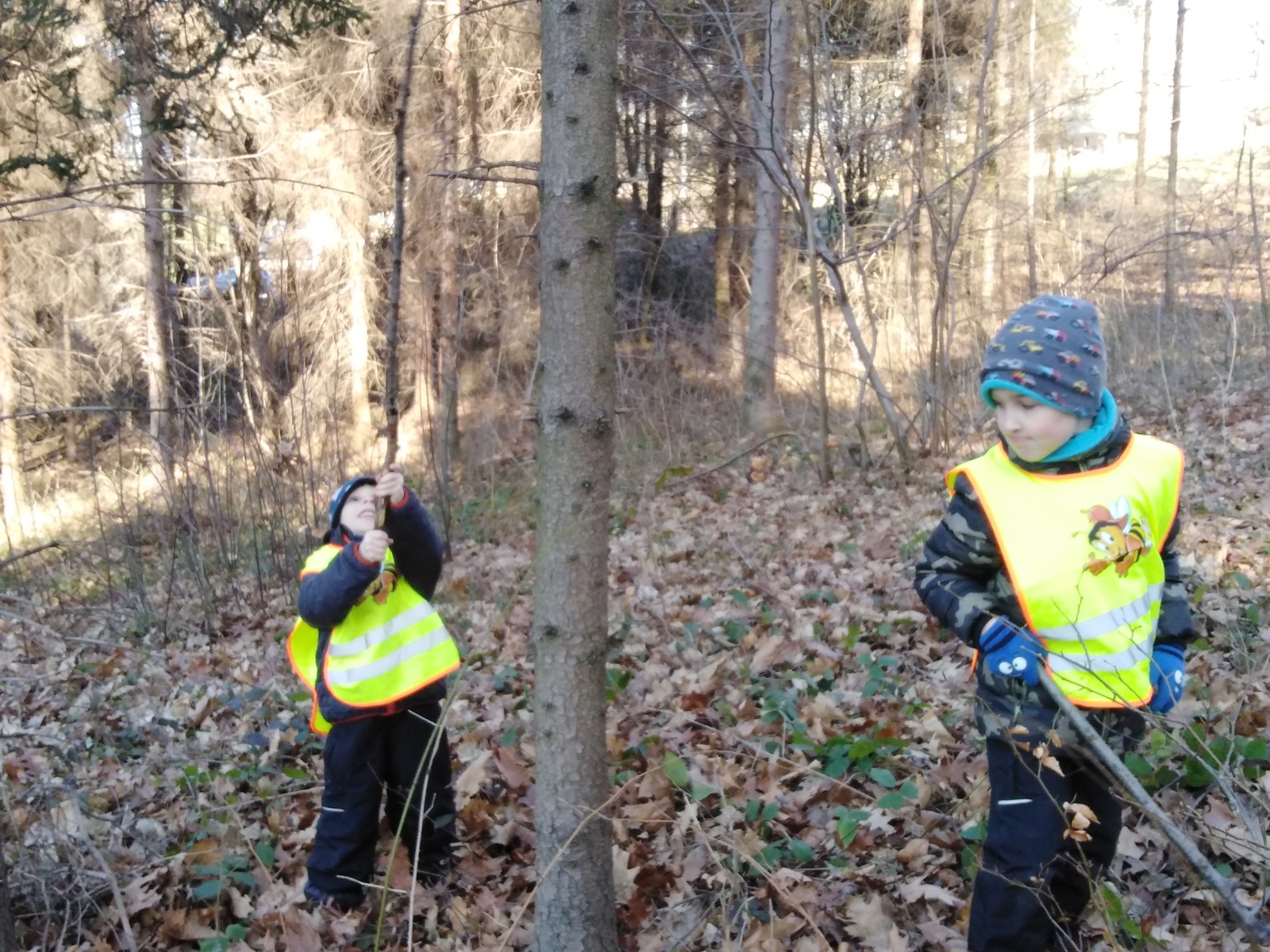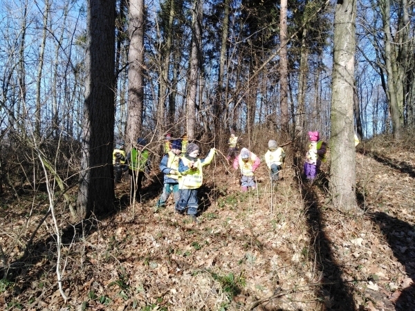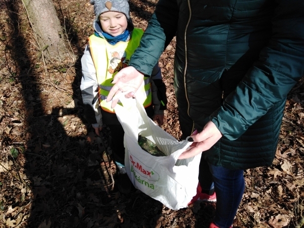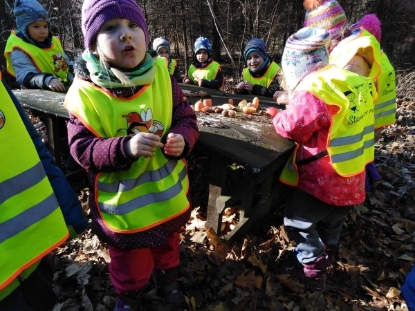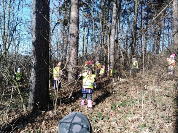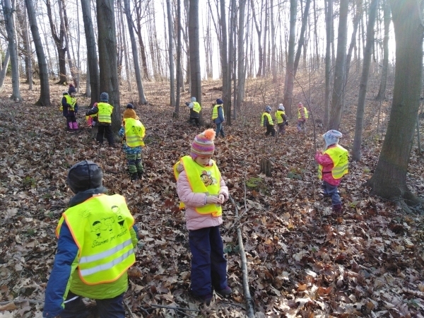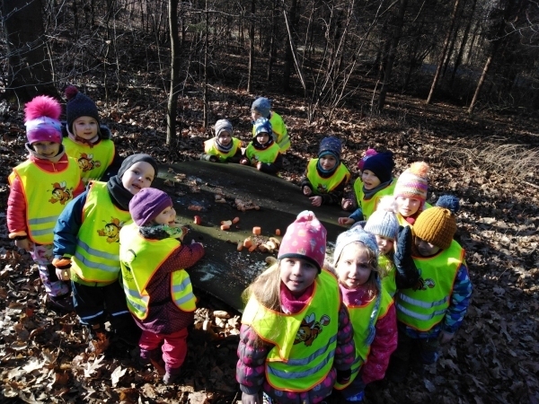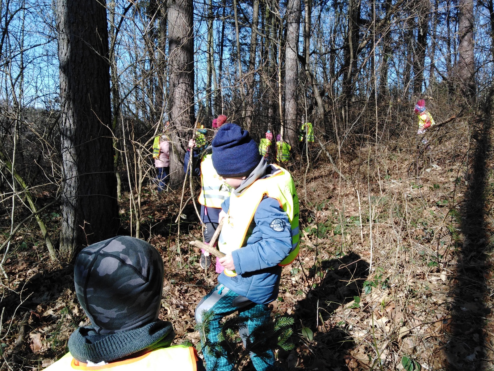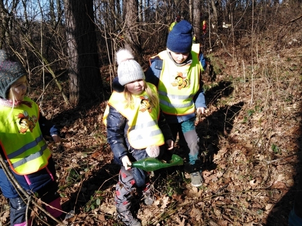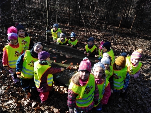 Společně jsme se šli podívat do lesa a vzali jsme sebou i nějaké pamlsky pro zvířátka. Bohužel v lese jsme nenašli jen stopy od zvířátek, ale i nepořádek, který tam zanechali lidé. Děti byly natolik šikovní, že se spontánně rozhodly nepořádek v lese nenechat, ale vzít ho sebou a vyhodit do kontejneru, kde patří.