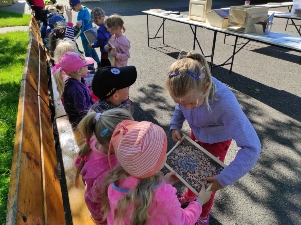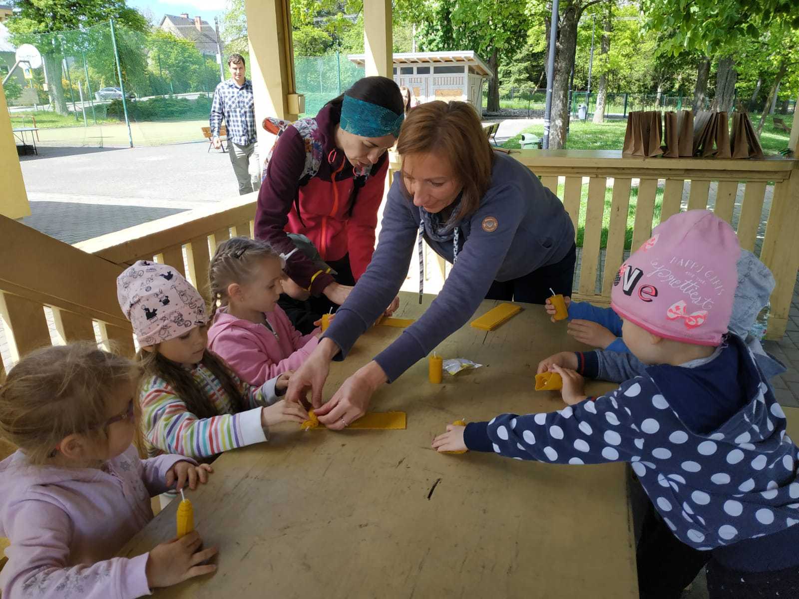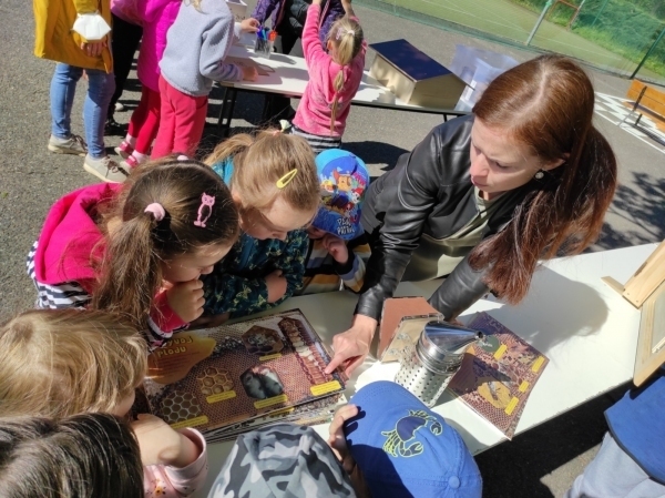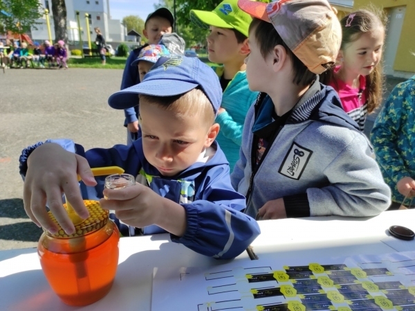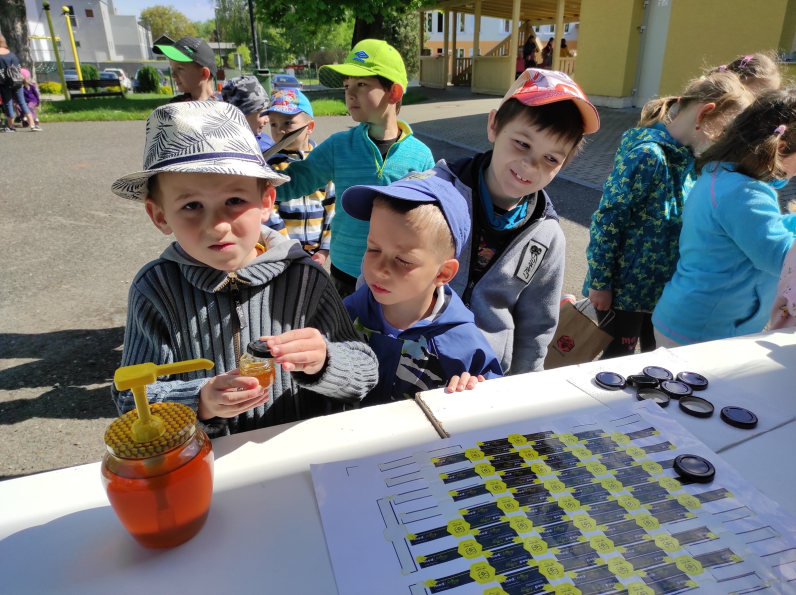 Ve středu 26. 5. 2021 zažily děti z mateřské školy zajímavé setkání s šenovskými včelaři. Ti nám velice pěkně, přiměřenou formou přiblížili život včelstva. Děti měly možnost vidět, jak to v úlu vypadá, hledaly v něm i včelí královnu, nasadily si včelařské kukly a vyzkoušely si vykuřování úlu. Další aktivity v podobě stáčení medu a výroba svíčky se dětem moc líbily. Děti se do školky vracely s pěkným zážitkem a taštičkou s včelařskými dárečky.