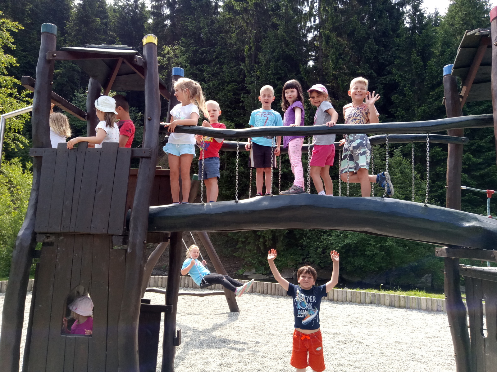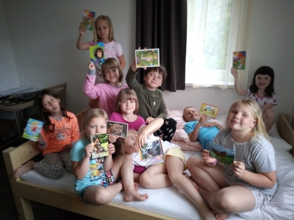 Milí rodiče, posíláme pozdrav z Bílé v Beskydech. Cesta nám rychle uběhla, během dopoledne jsme se ubytovali v nově zrekonstruovaném objektu Stodola a prozkoumali okolní průlezky. Na obídek jsme měli výborný vývar s nudličkami, brambory, řízek a mrkvový salát, to byla dobrota. Po odpoledním klidu jsme s instruktorkami zamířili do lesa. A večer k nám přijela pošta.