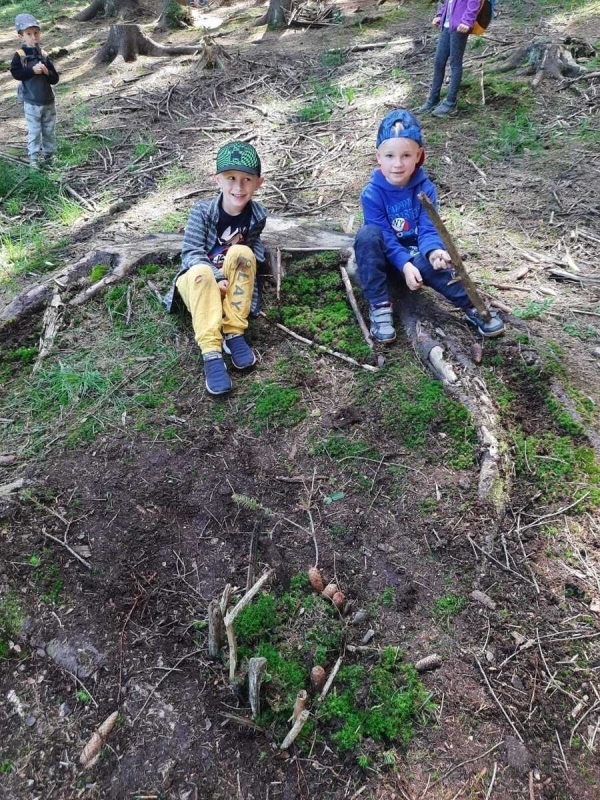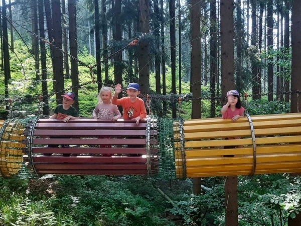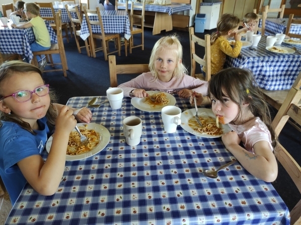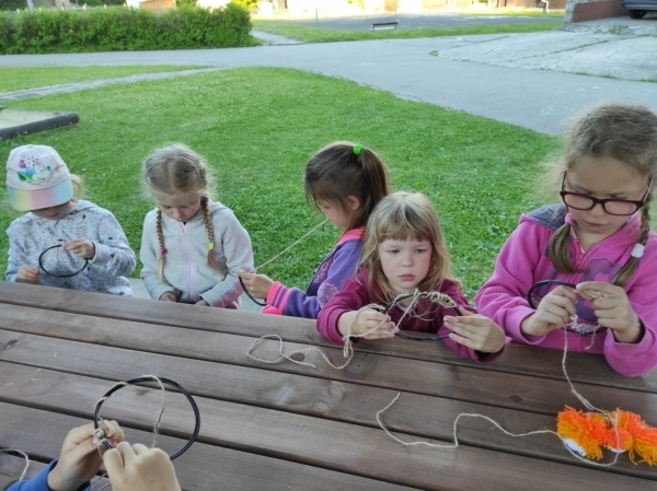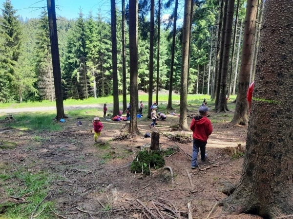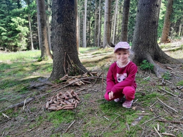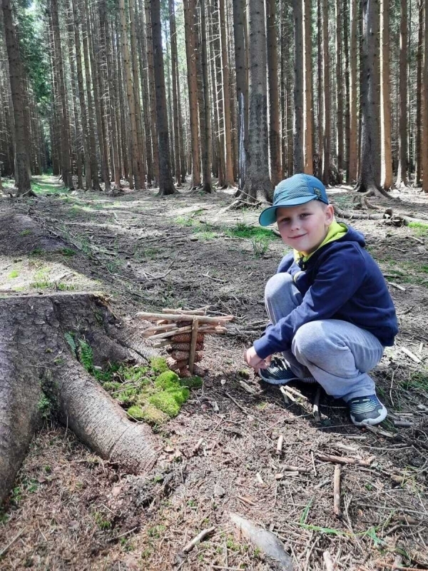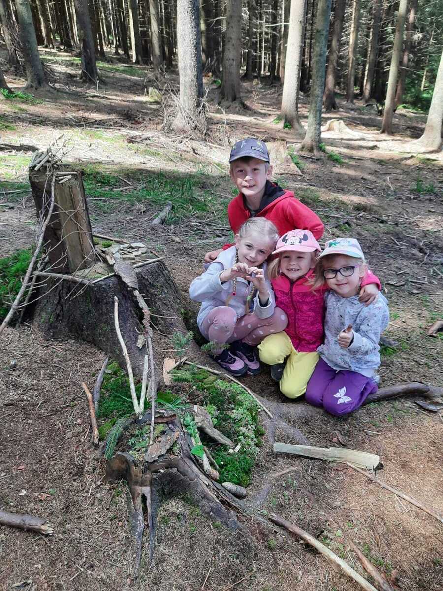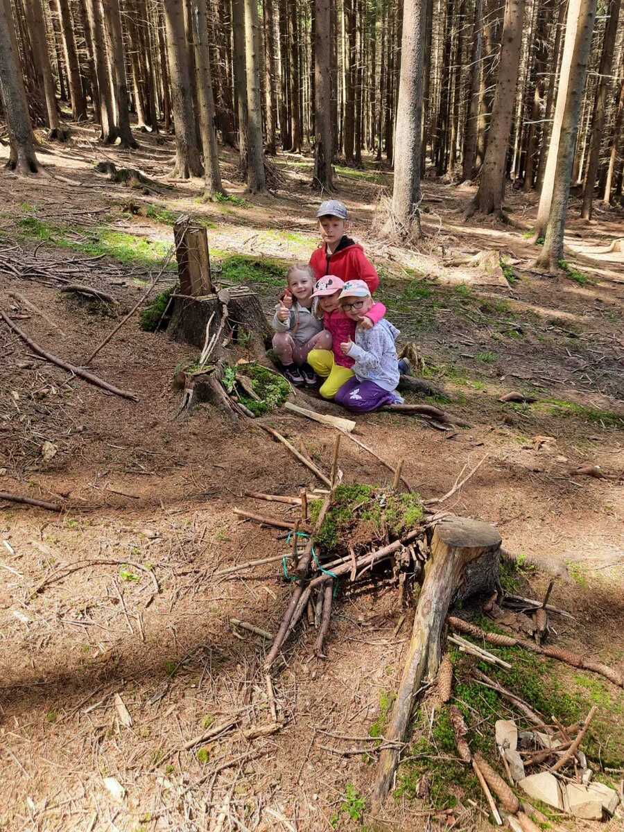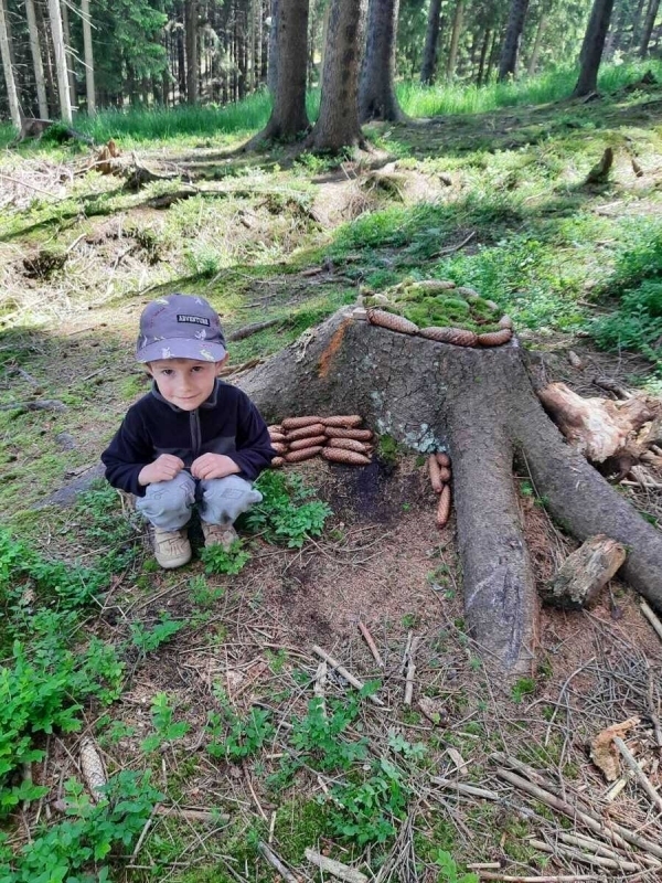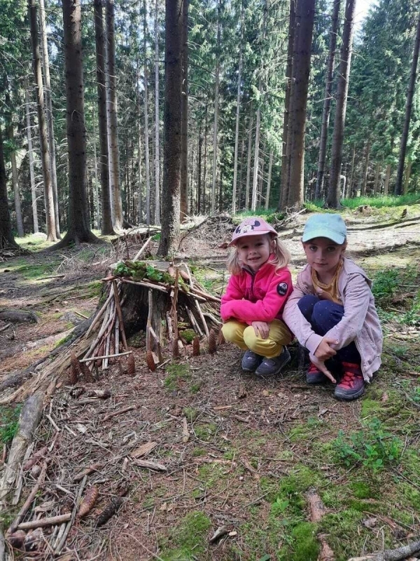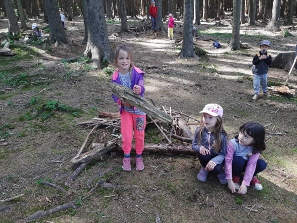Dneska jsme se zase pěkně vyspali a těšili se na další dobrodružství. Hned po snídani se děti vydaly do lesa, kde stavěly domečky pro skřítky. K tomu si zpívaly písničku Skřítkové tesaři, vylezte z mechu. Chopte se náčiní, postavte střechu a práce jim šla krásně od ruky. Obídek byl výborný, vývar a špagety. Odpoledne se děti vydaly po stopách medvědů a pašeráků, tedy po naučných cestách plných úžasných překvapení. Výlet byl náročný, ale děti ho krásně zvládly. Na večeři jsme měli řízek s bramborovou kaší a potom se pustili do výroby lapače snů. Pak šup do pyžámka, návštěva pošťáka, pohádka a dobrou noc. To nám ten den zase rychle utekl.
