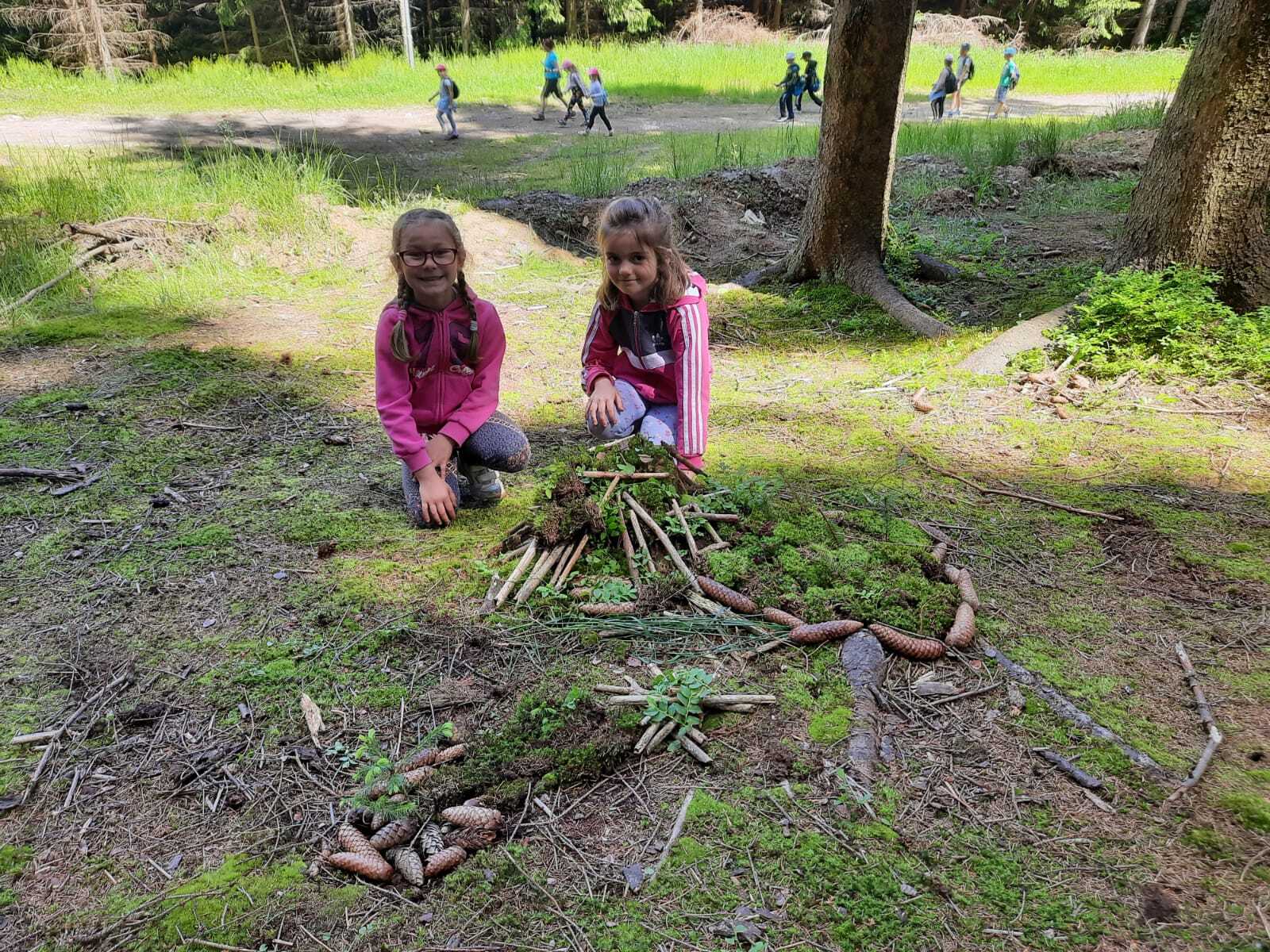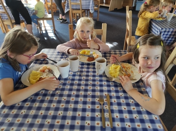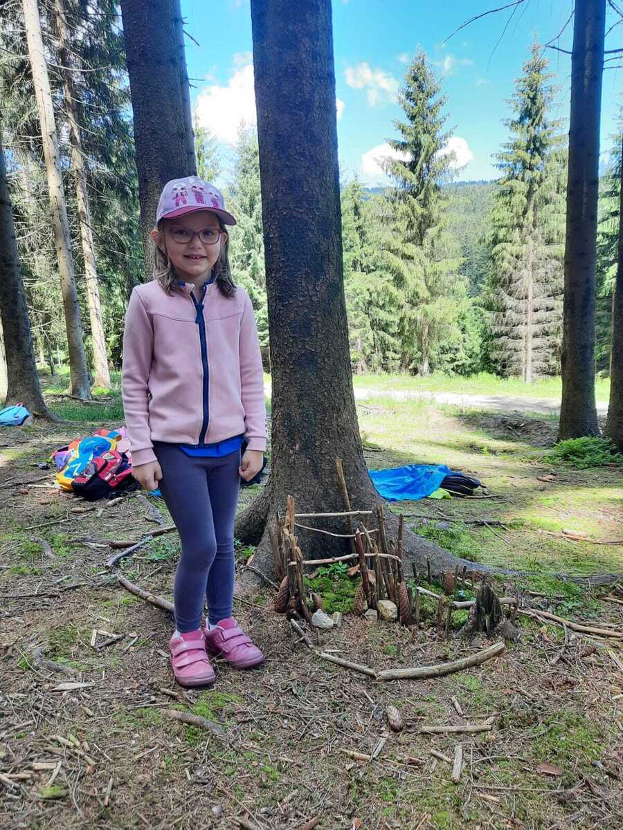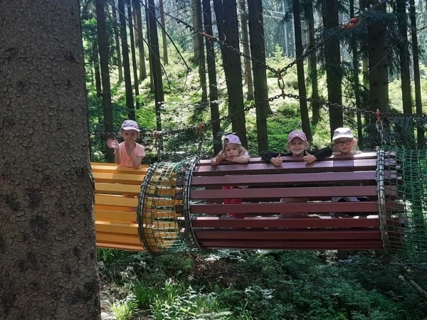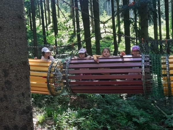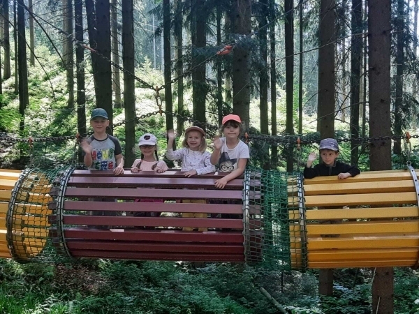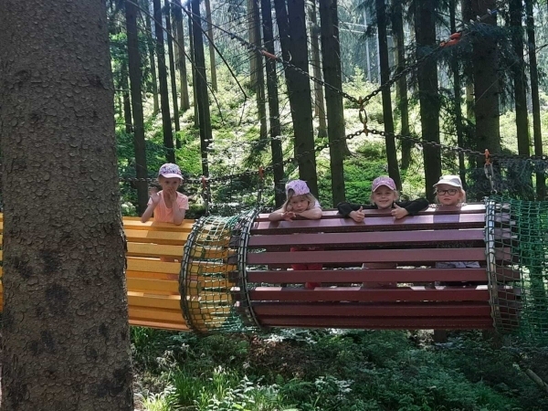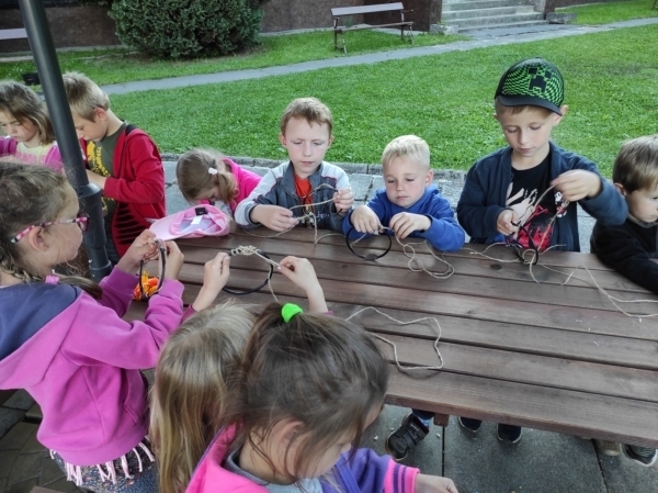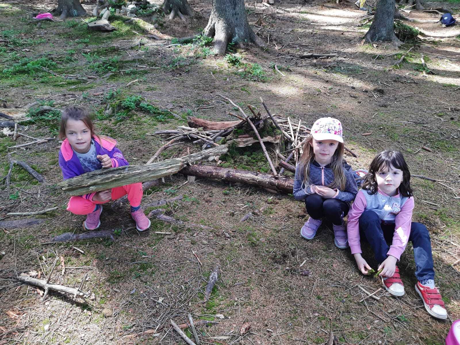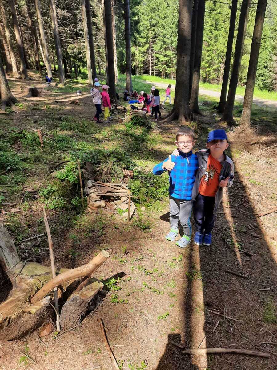 Dneska jsme se zase pěkně vyspali a těšili se na další dobrodružství. Hned po snídani se děti vydaly do lesa, kde stavěly domečky pro skřítky. K tomu si zpívaly písničku Skřítkové tesaři, vylezte z mechu. Chopte se náčiní, postavte střechu a práce jim šla krásně od ruky. Obídek byl výborný, vývar a špagety. Odpoledne se děti vydaly po stopách medvědů a pašeráků, tedy po naučných cestách plných úžasných překvapení. Výlet byl náročný, ale děti ho krásně zvládly. Na večeři jsme měli řízek s bramborovou kaší a potom se pustili do výroby lapače snů. Pak šup do pyžámka, návštěva pošťáka, pohádka a dobrou noc. To nám ten den zase rychle utekl.