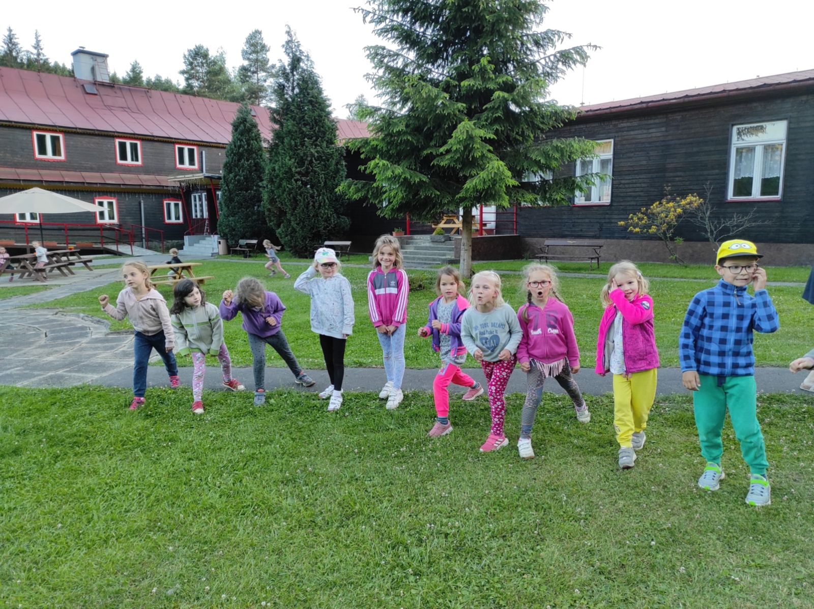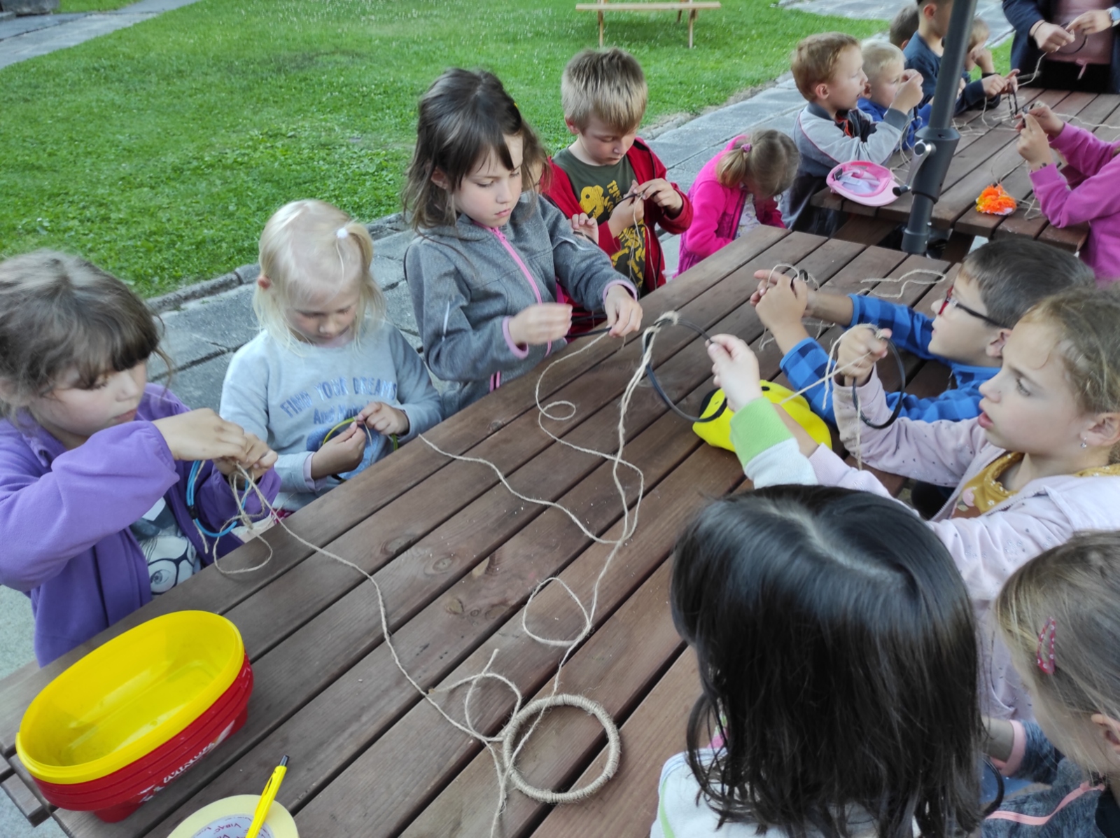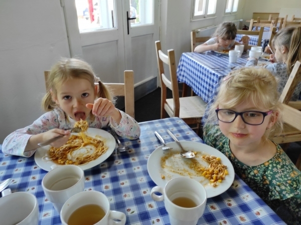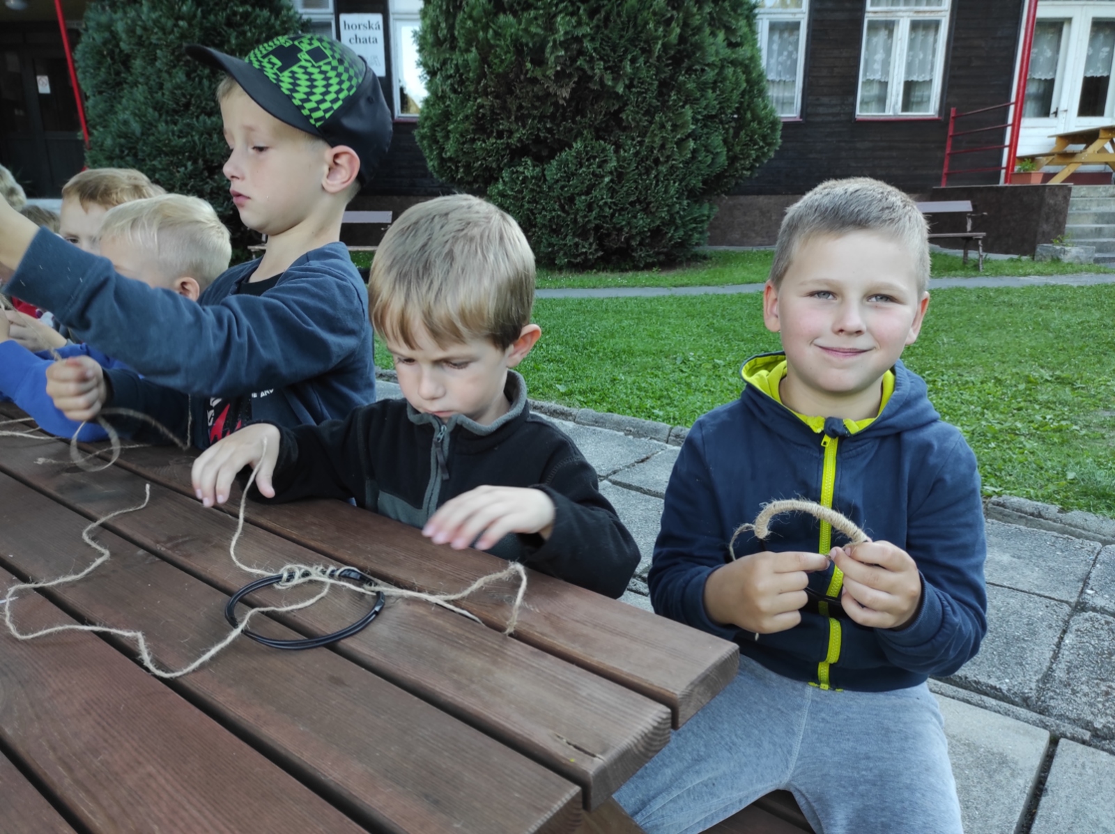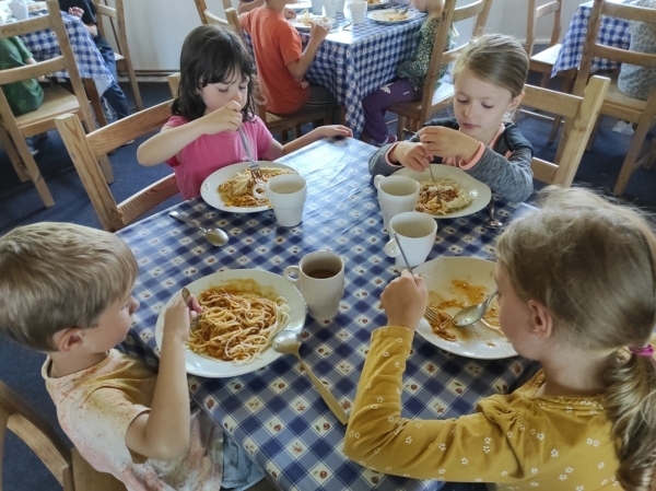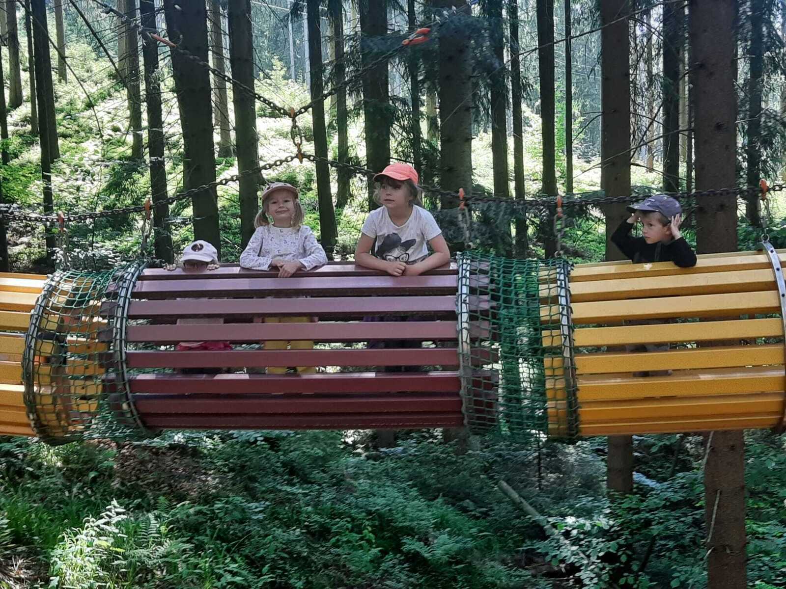 Dneska jsme se zase pěkně vyspali a těšili se na další dobrodružství. Hned po snídani se děti vydaly do lesa, kde stavěly domečky pro skřítky. K tomu si zpívaly písničku Skřítkové tesaři, vylezte z mechu. Chopte se náčiní, postavte střechu a práce jim šla krásně od ruky. Obídek byl výborný, vývar a špagety. Odpoledne se děti vydaly po stopách medvědů a pašeráků, tedy po naučných cestách plných úžasných překvapení. Výlet byl náročný, ale děti ho krásně zvládly. Na večeři jsme měli řízek s bramborovou kaší a potom se pustili do výroby lapače snů. Pak šup do pyžámka, návštěva pošťáka, pohádka a dobrou noc. To nám ten den zase rychle utekl.