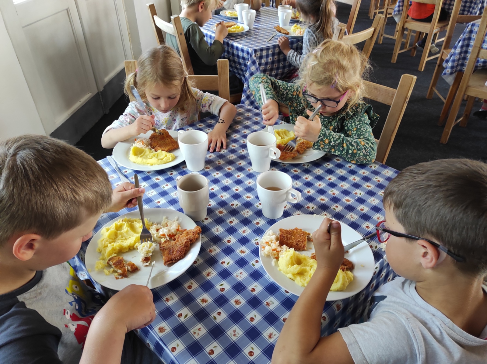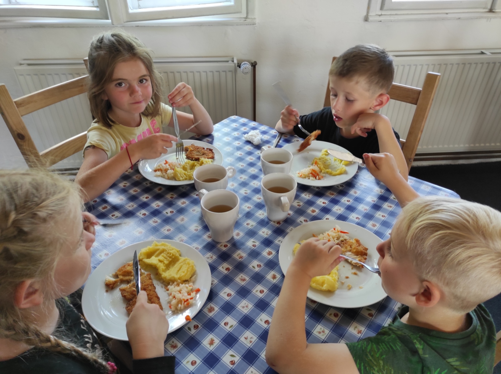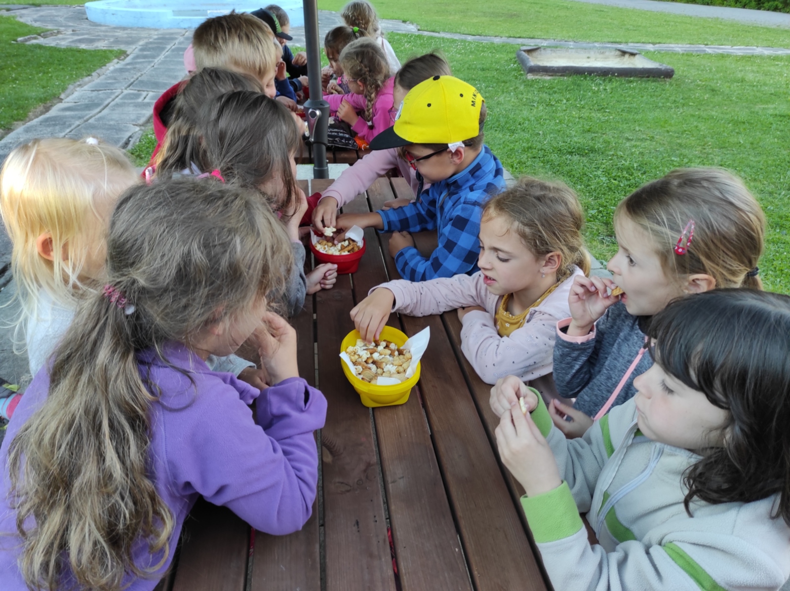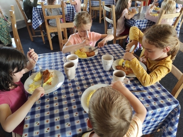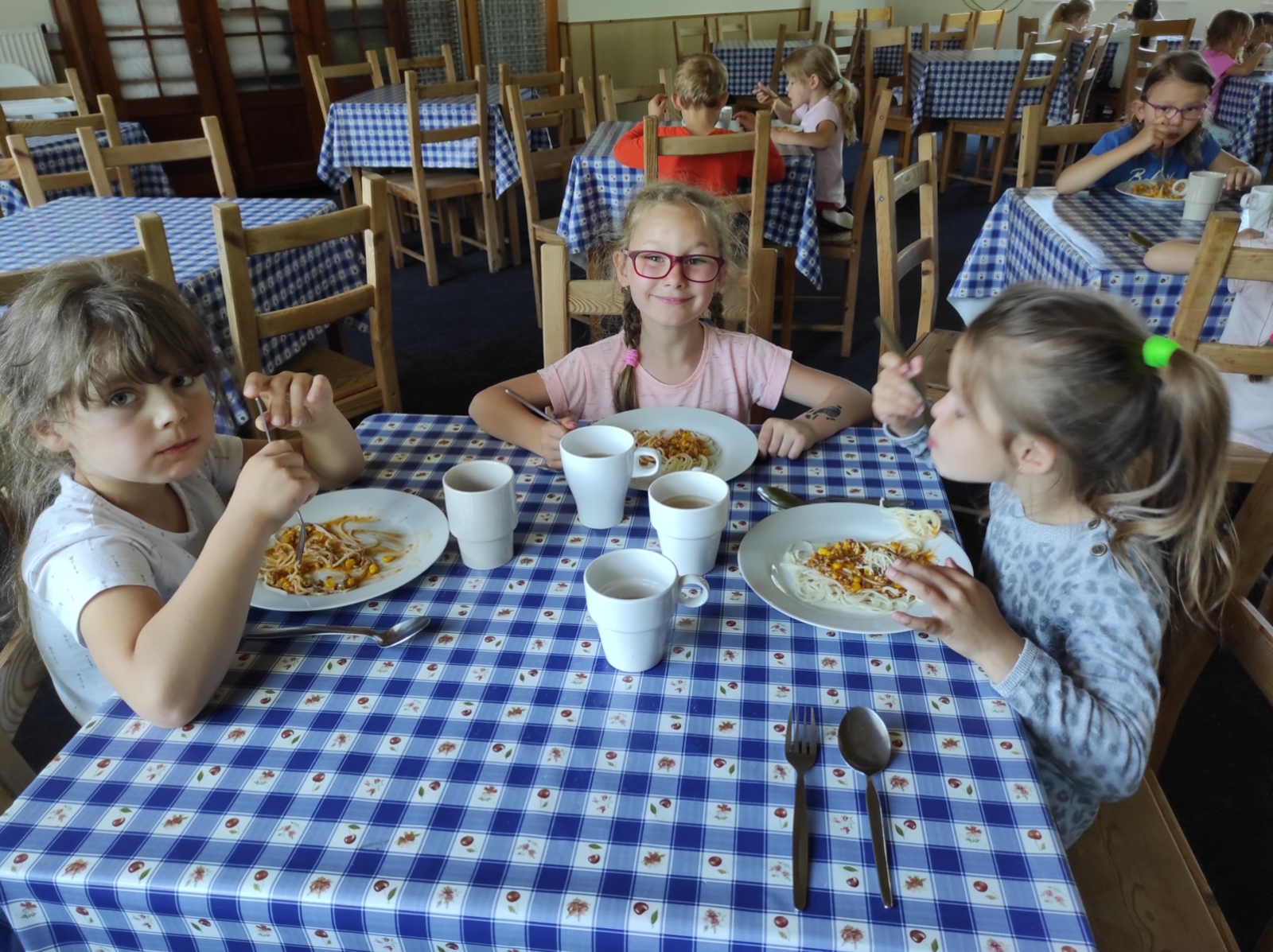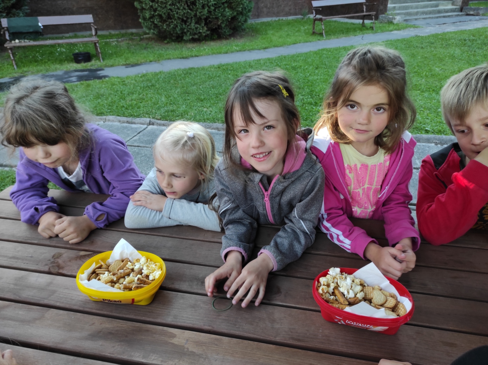 Dneska jsme se zase pěkně vyspali a těšili se na další dobrodružství. Hned po snídani se děti vydaly do lesa, kde stavěly domečky pro skřítky. K tomu si zpívaly písničku Skřítkové tesaři, vylezte z mechu. Chopte se náčiní, postavte střechu a práce jim šla krásně od ruky. Obídek byl výborný, vývar a špagety. Odpoledne se děti vydaly po stopách medvědů a pašeráků, tedy po naučných cestách plných úžasných překvapení. Výlet byl náročný, ale děti ho krásně zvládly. Na večeři jsme měli řízek s bramborovou kaší a potom se pustili do výroby lapače snů. Pak šup do pyžámka, návštěva pošťáka, pohádka a dobrou noc. To nám ten den zase rychle utekl.