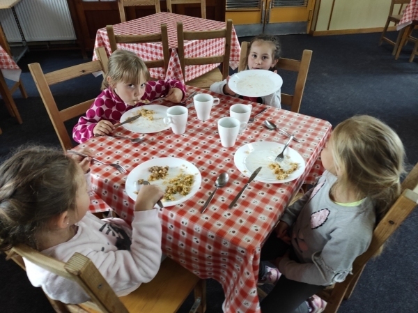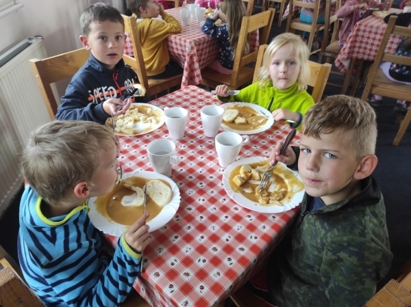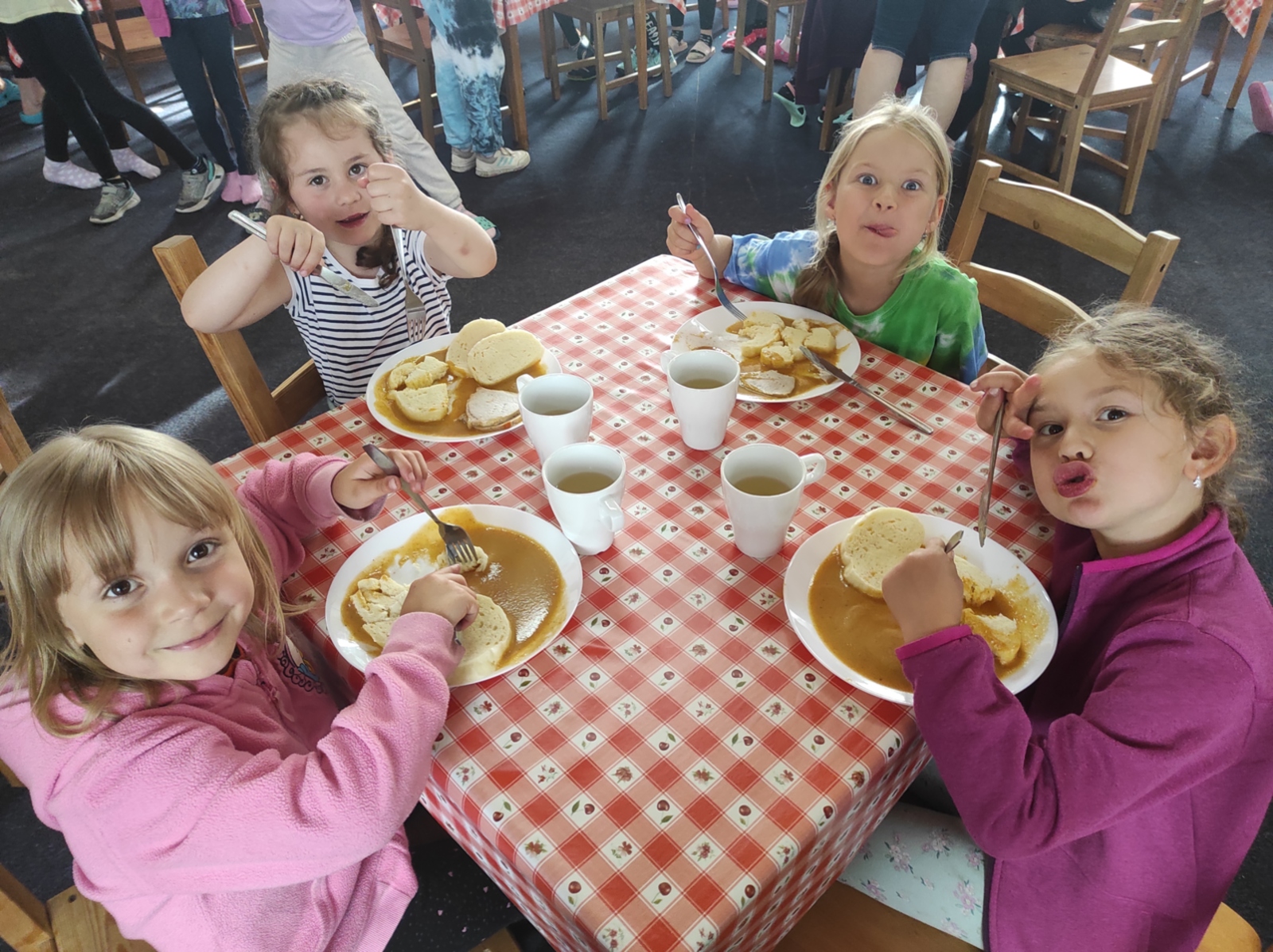 Poslední večeře byla zase výborná, knedlíky s omáčkou, všem moc chutnalo. Ještě jsme šli na večerní procházku a potom už balení, poslední pošta a poslední noc. Zítra se těšíme domů. Dobrou noc.