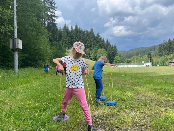 Čtvrtek, čtvrtý den našeho dobrodružství se nesl v duchu sportovních soutěží. Děti soutěžily v netradičních disciplínách a šlo jim to skvěle. Únava z pestrého programu je už znát, po dobrém obědě si dnes všichni dali šlofíka. A odpoledne si děti užívaly opět v Dětském zábavném parku na Bílé.