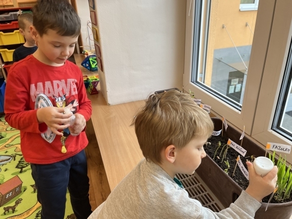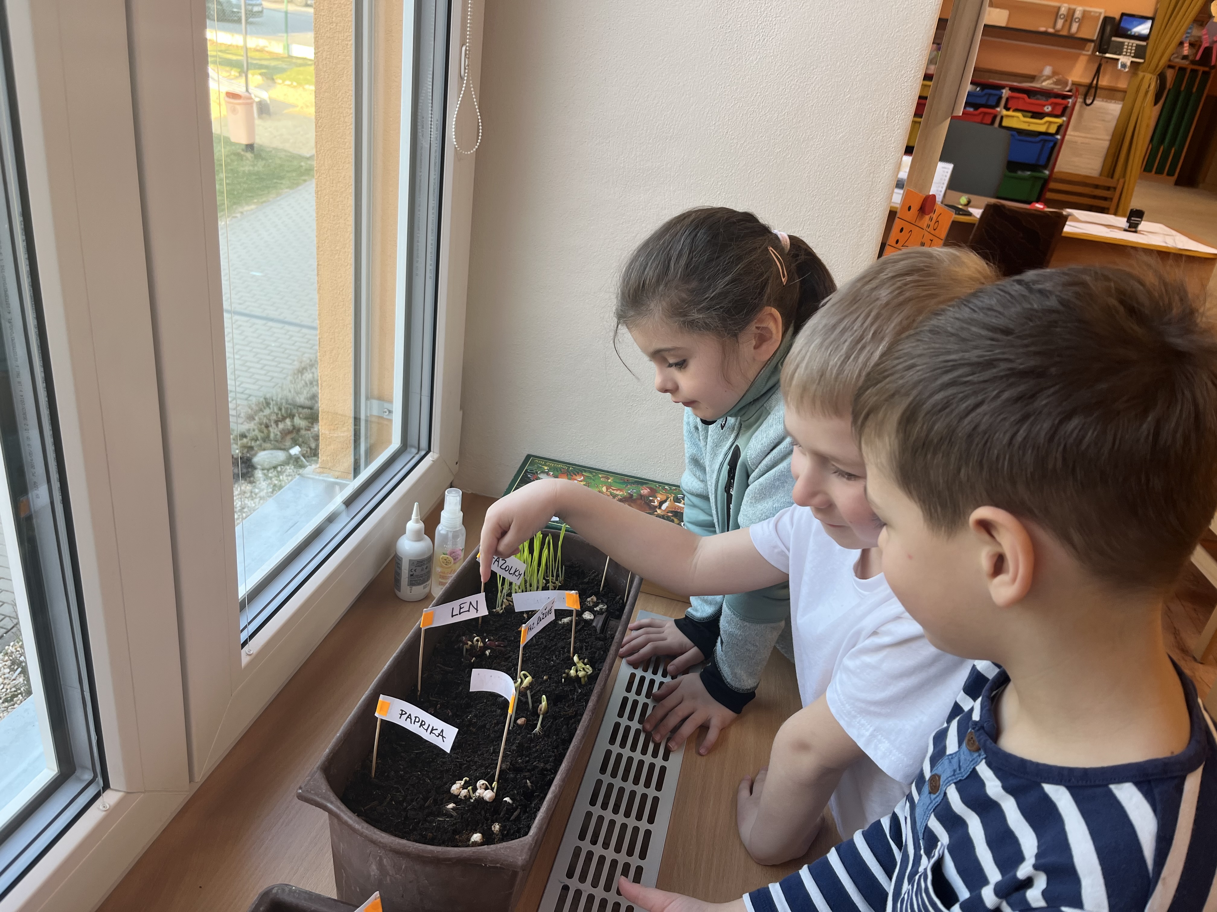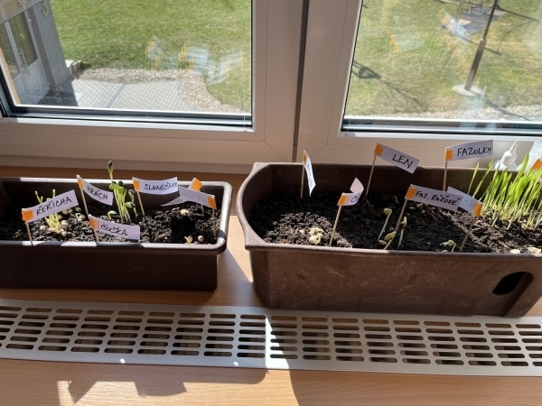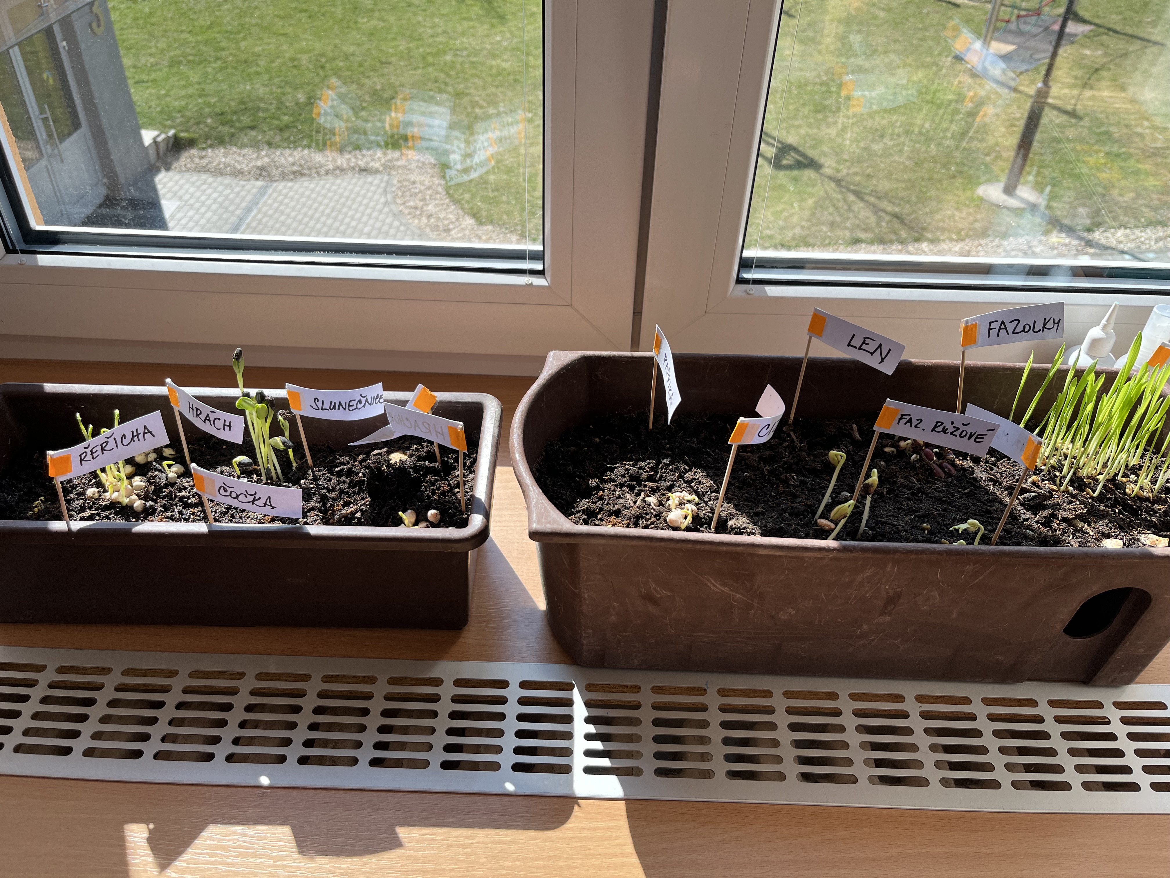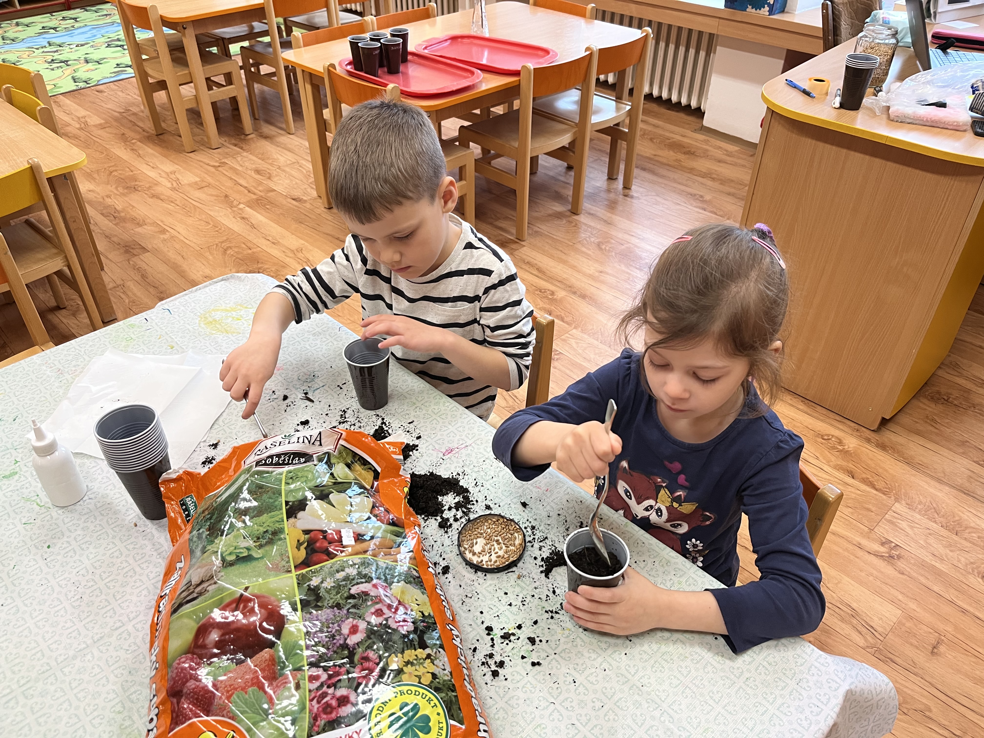 Seznámili jsme se s novými jarními i velikonočními básničkami, naučili se je a zazpívali si písničky k jarnímu tématu. Venku jsme si společně užívali první jarní dny, které jsme využili i k environmentálnímu pokusu "Jarní semínko". Společně jsme zaseli různá semínka, pozorovali, která vyklíčí nejdříve a jak budou jednotlivé rostlinky vypadat. Posléze je přesadíme do záhonku na školním hřišti a budeme dále sledovat, co se z nich urodí.