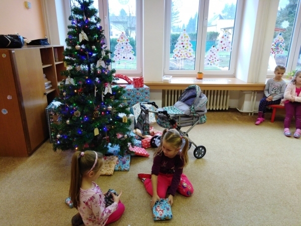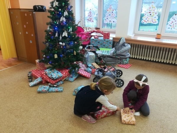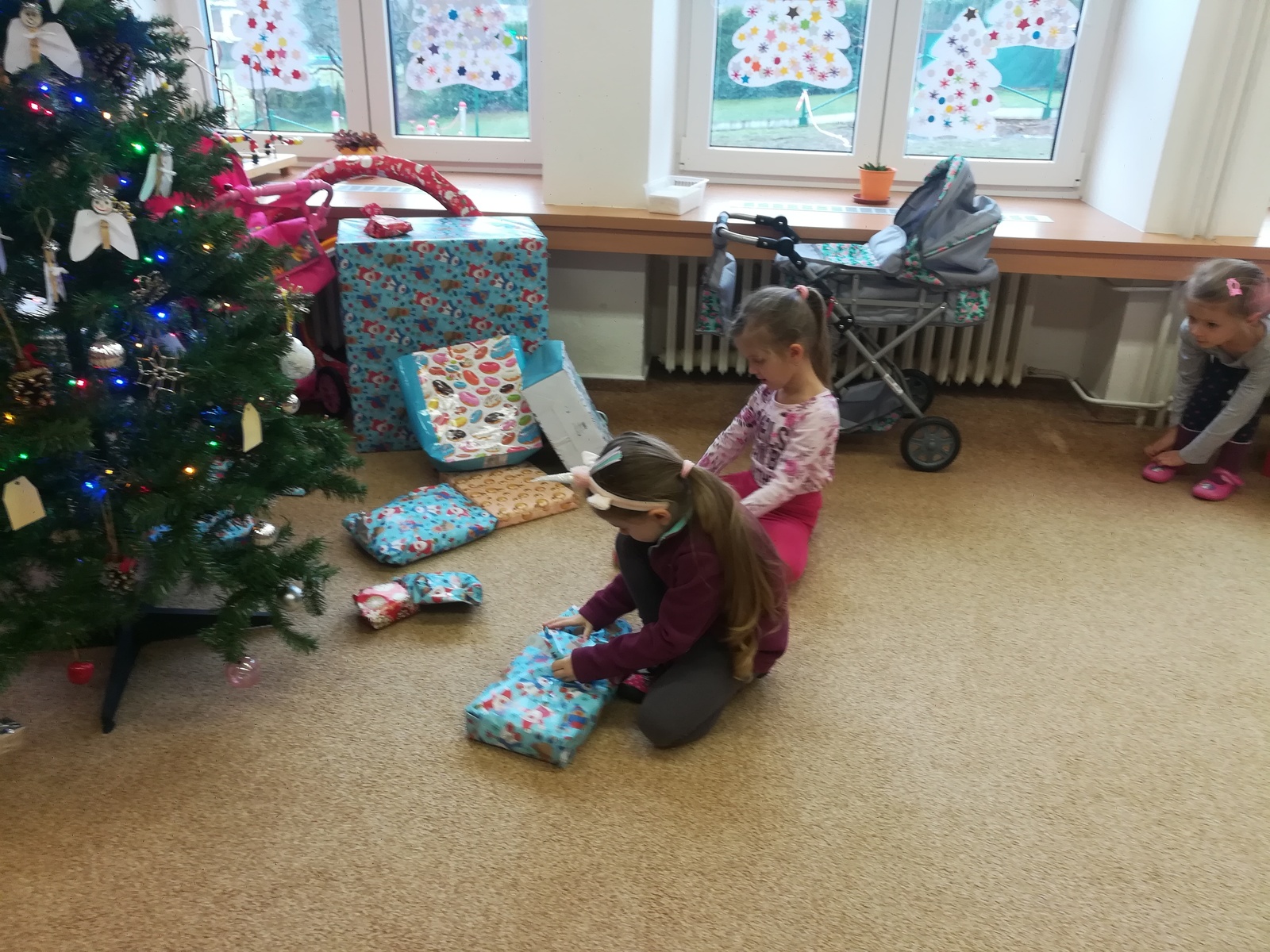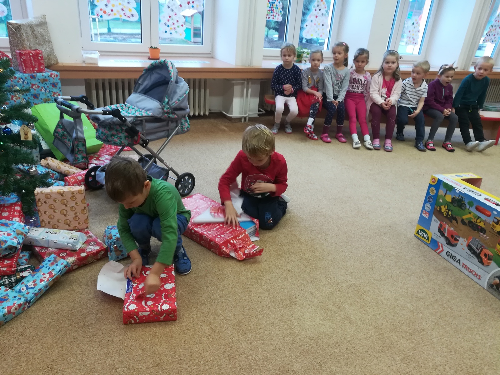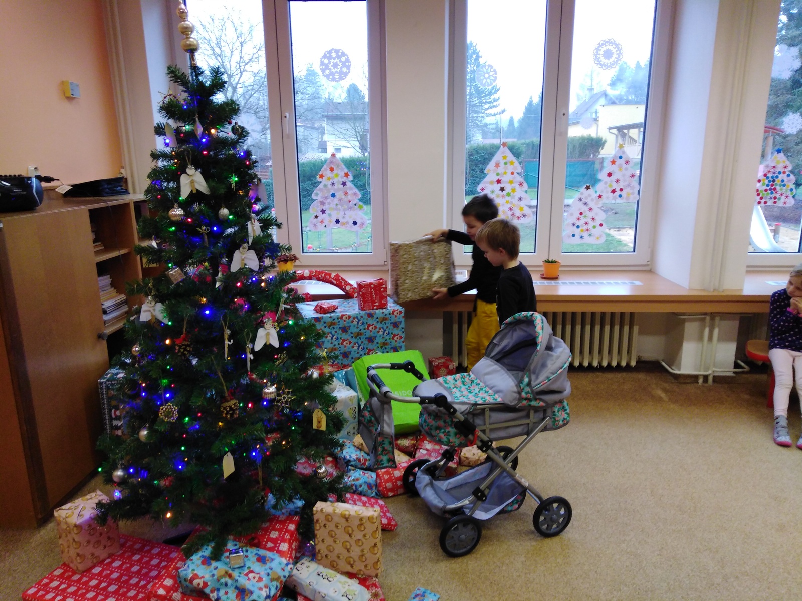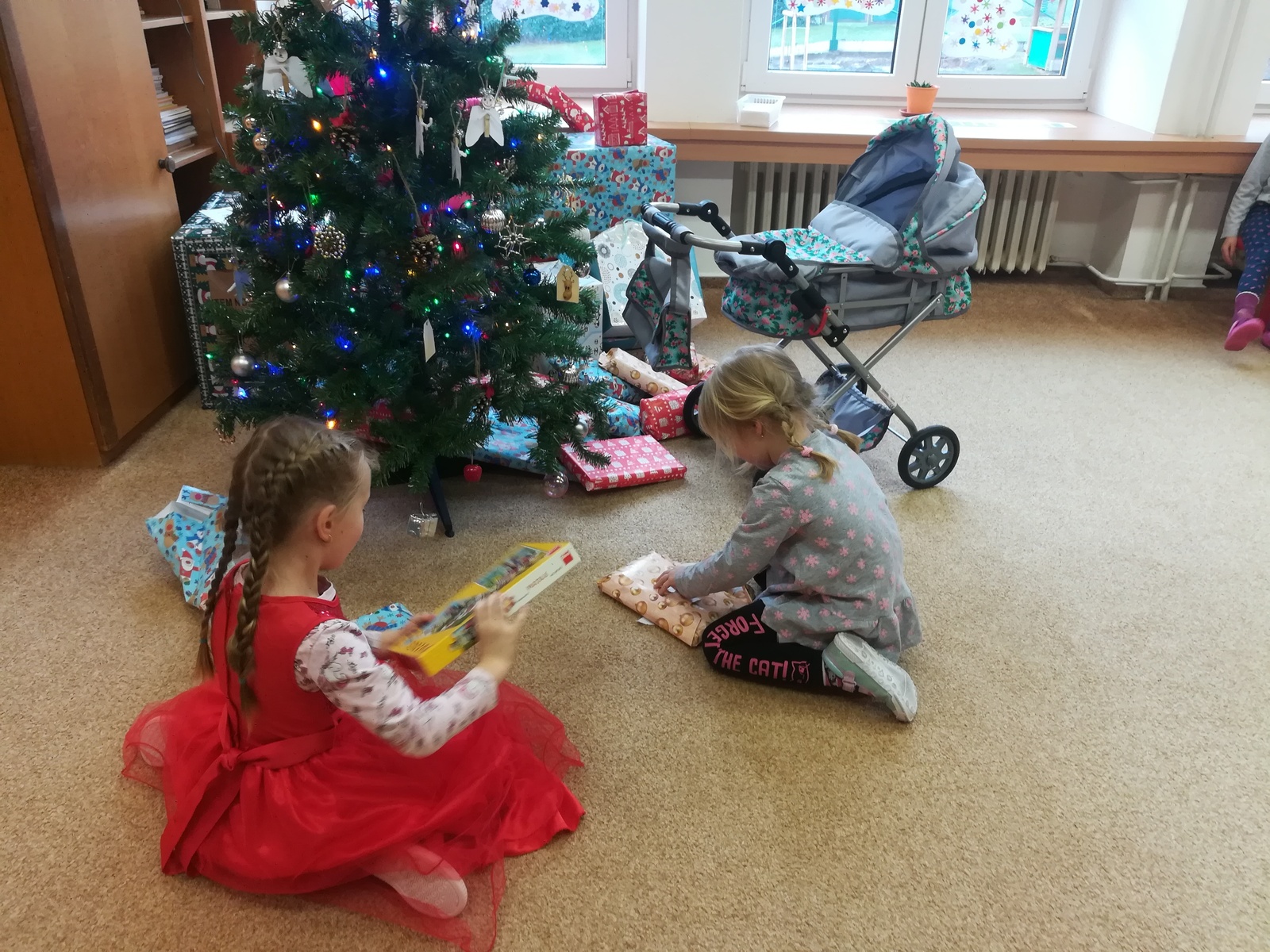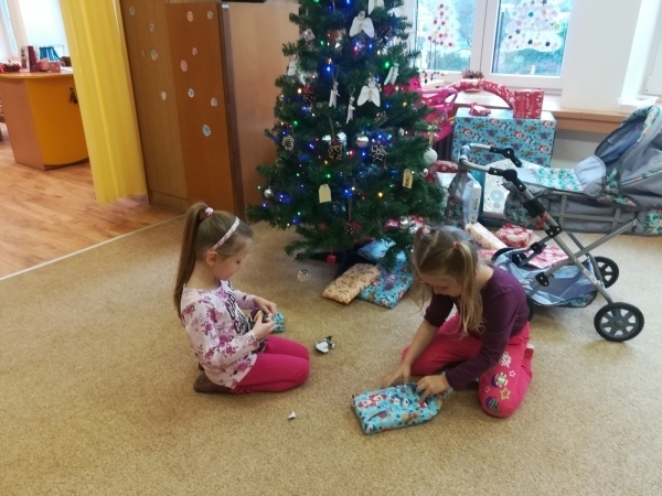 Od pondělí jsme zdobili třídu, vyráběli vánoční přáníčko s andílkem pro naše blízké a těšili se, kdy se pod stromečkem objeví dárky. Ve čtvrtek ráno jsme se dočkali! Po svačince a perníčcích, které jsme si sami upekli a ozdobili jsme se konečně pustili do rozbalování dárků. Radost z nich byla veliká, za což srdečně děkujeme vedení školy, SRPŠ, rodičům Bradáčovým, Hrbáčkovým, Šoltésovým, Křákovým, Kusákovým a Tinuščině babičce – p. Zápalkové. Pomocí jejich darů se podařilo splnit našim Motýlkům mnohá vánoční přání. Ještě jednou všem moc děkujeme!
