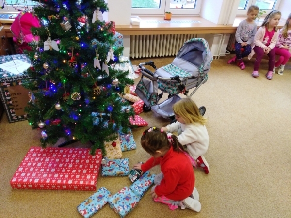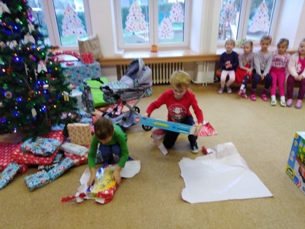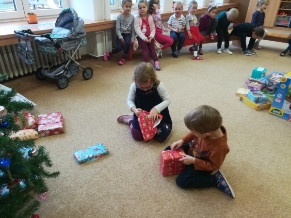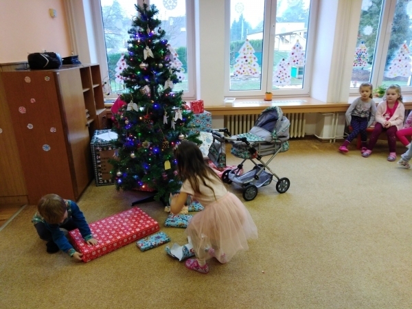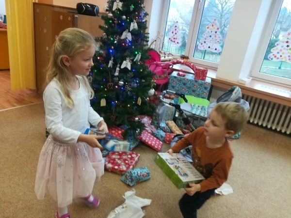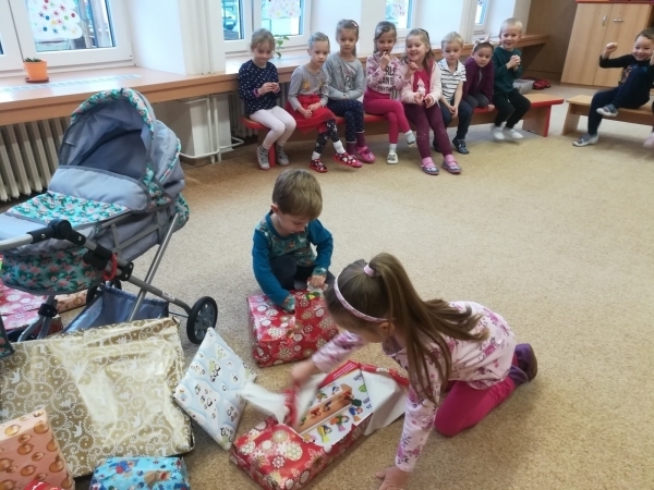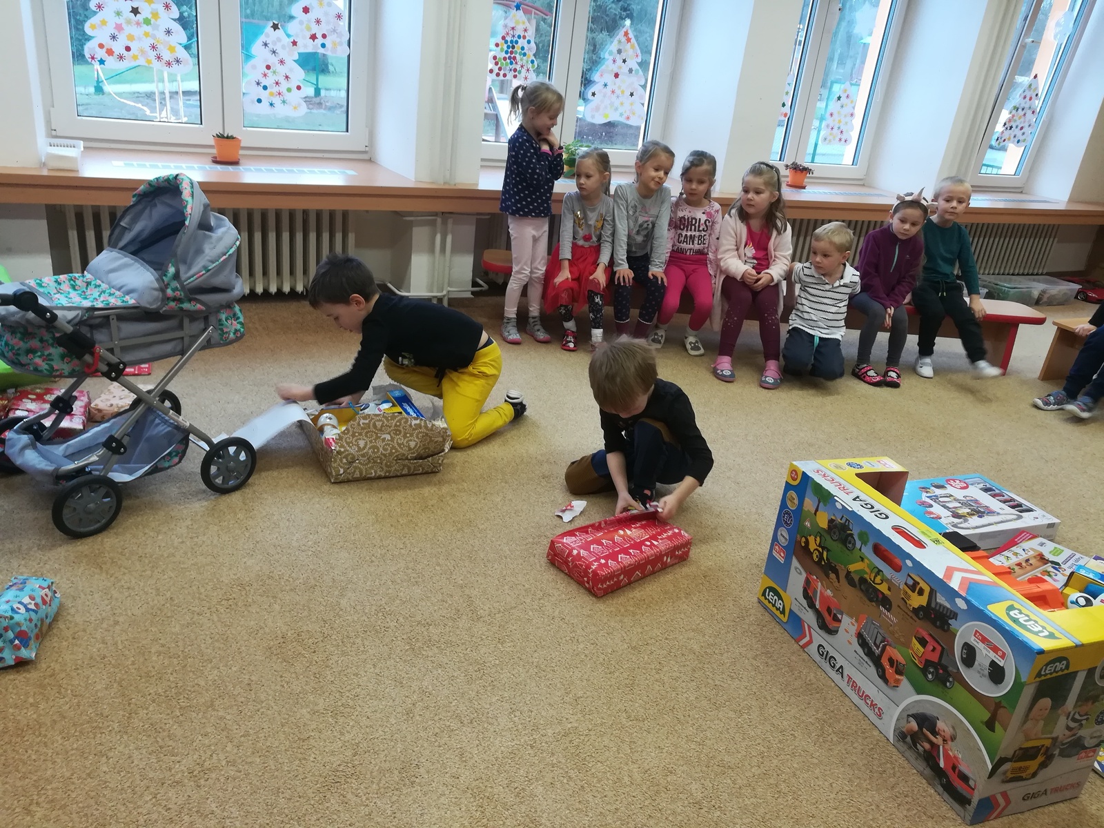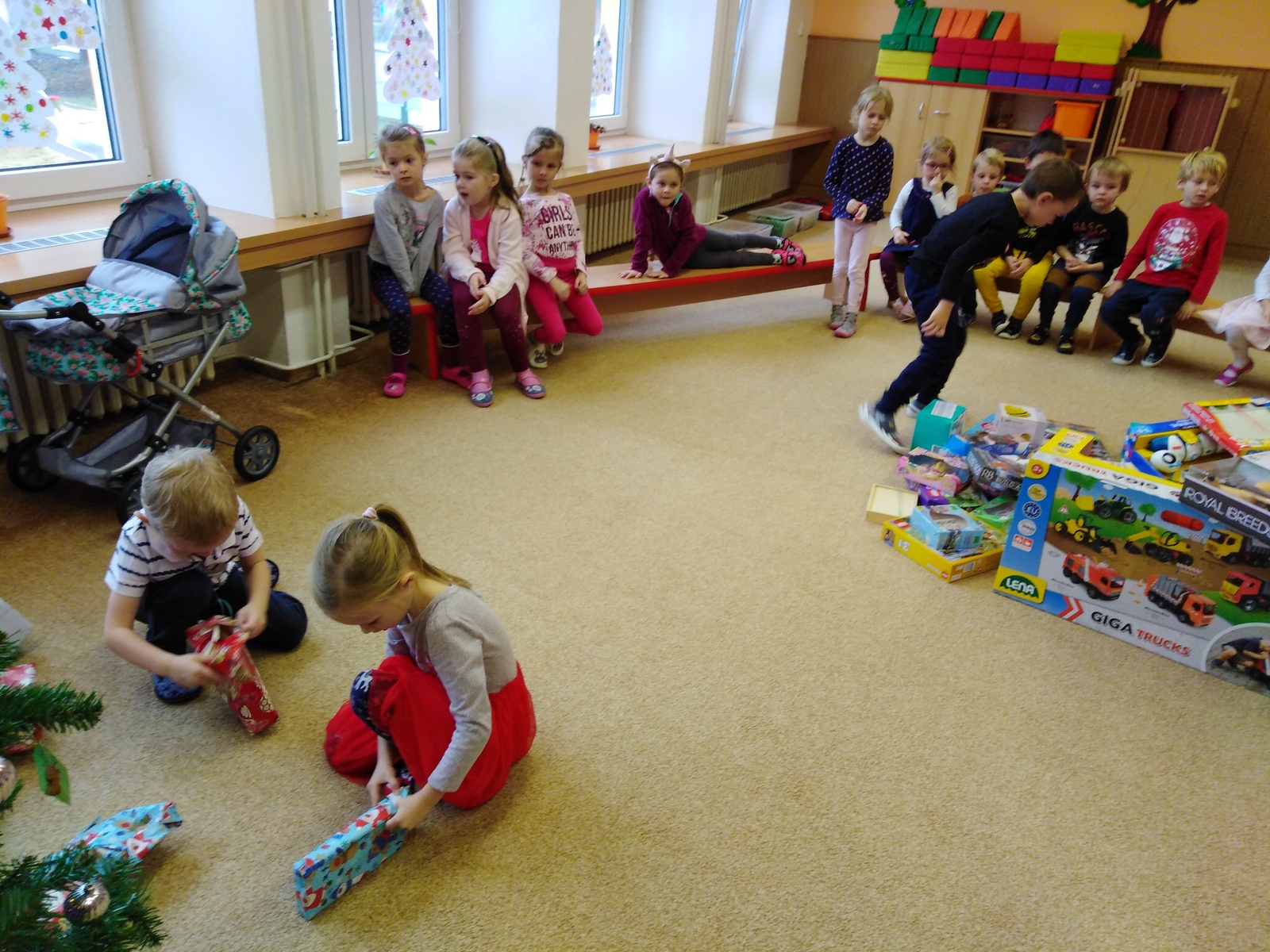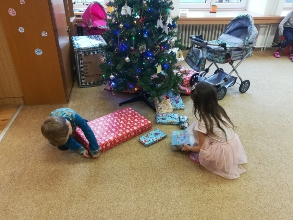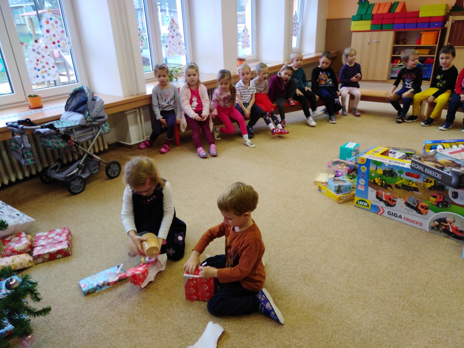 Od pondělí jsme zdobili třídu, vyráběli vánoční přáníčko s andílkem pro naše blízké a těšili se, kdy se pod stromečkem objeví dárky. Ve čtvrtek ráno jsme se dočkali! Po svačince a perníčcích, které jsme si sami upekli a ozdobili jsme se konečně pustili do rozbalování dárků. Radost z nich byla veliká, za což srdečně děkujeme vedení školy, SRPŠ, rodičům Bradáčovým, Hrbáčkovým, Šoltésovým, Křákovým, Kusákovým a Tinuščině babičce – p. Zápalkové. Pomocí jejich darů se podařilo splnit našim Motýlkům mnohá vánoční přání. Ještě jednou všem moc děkujeme!