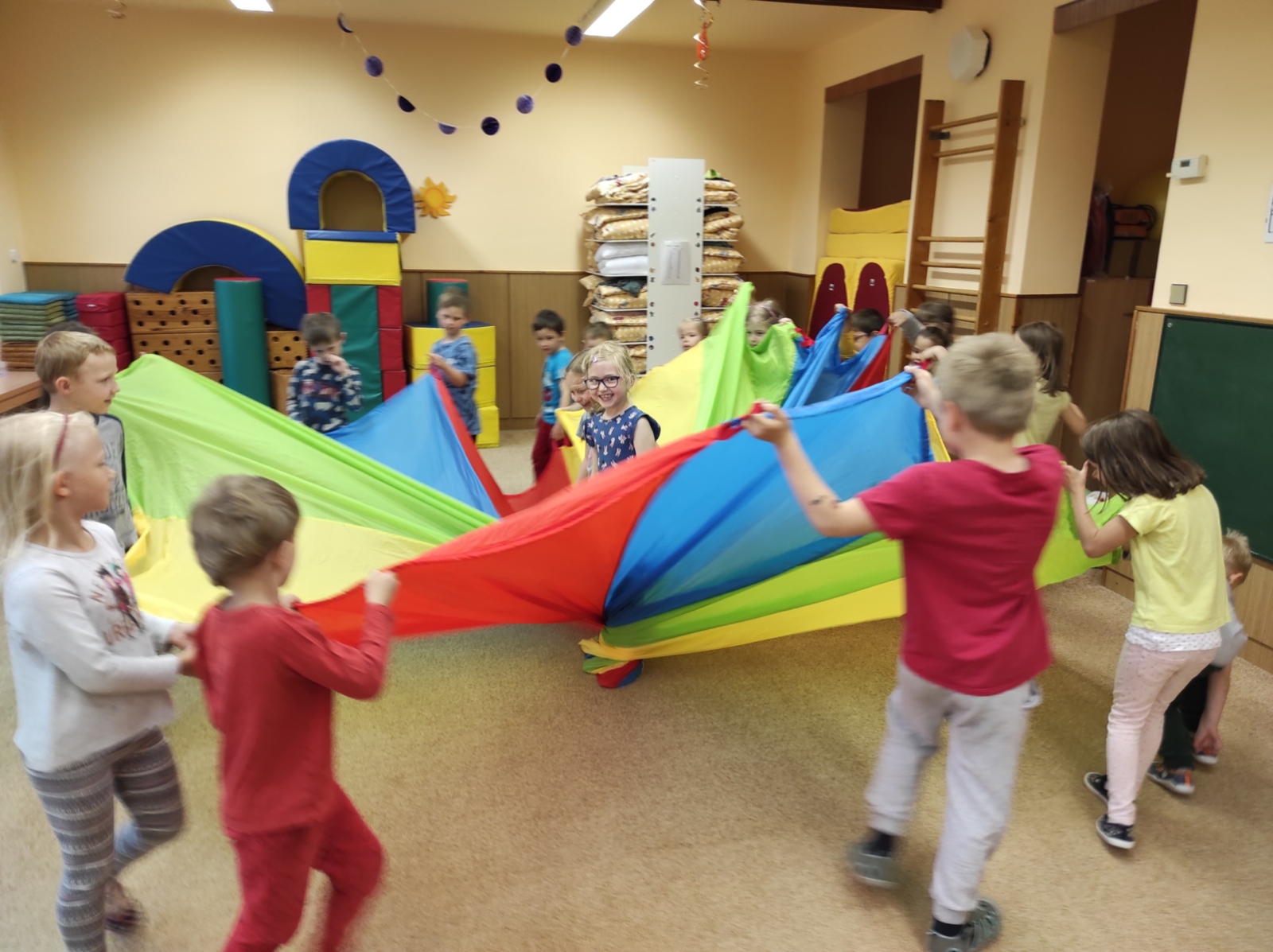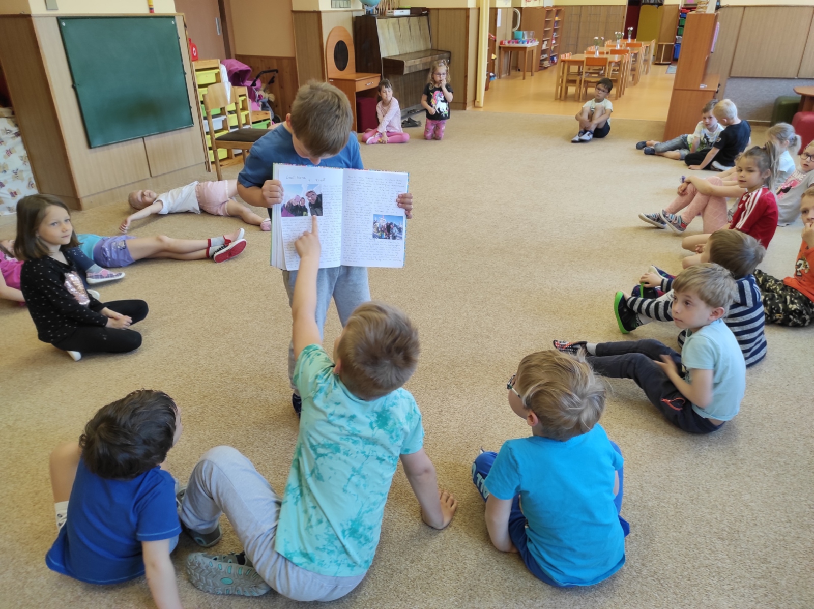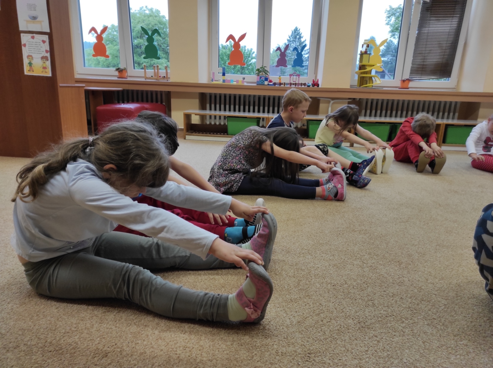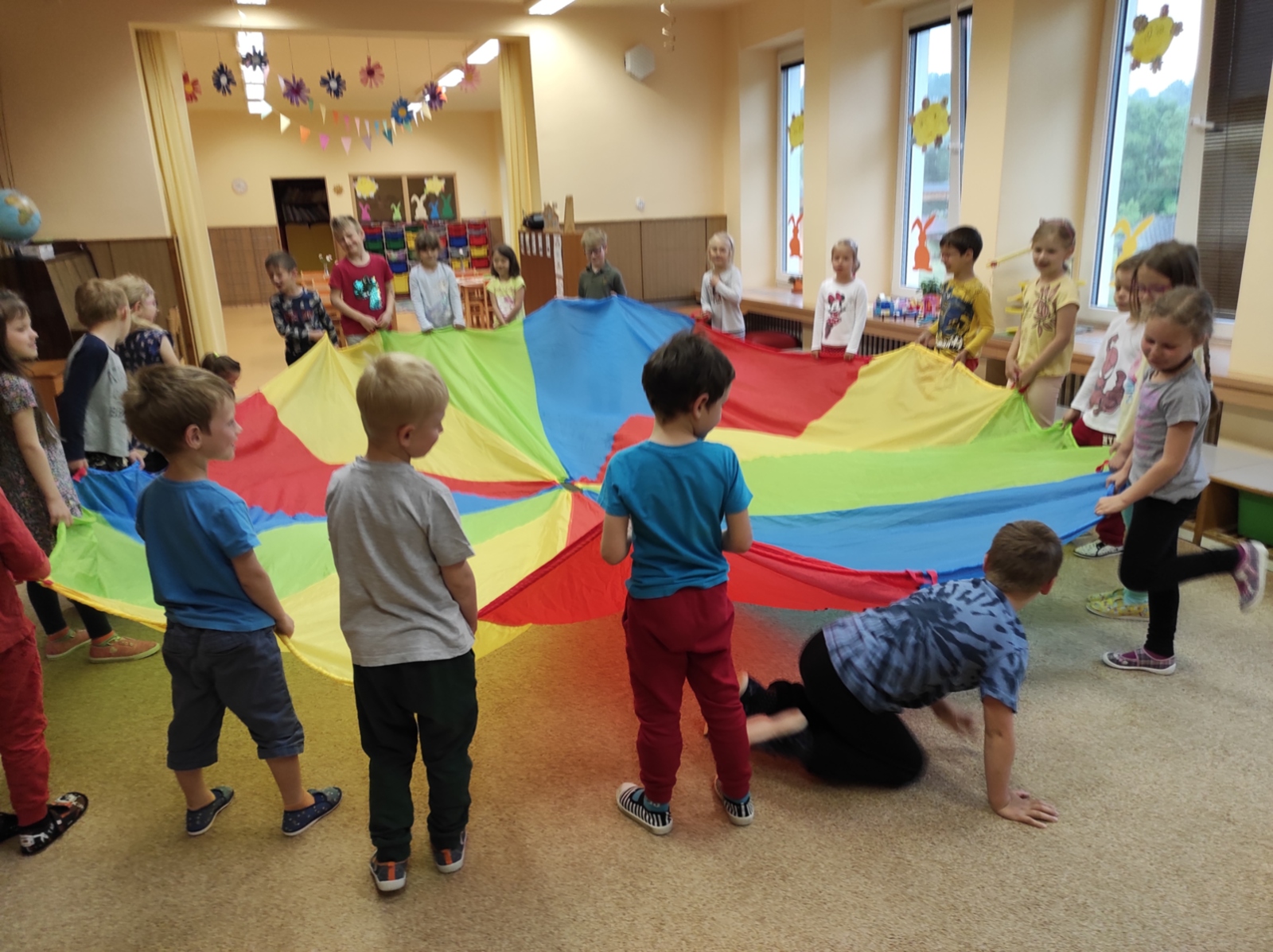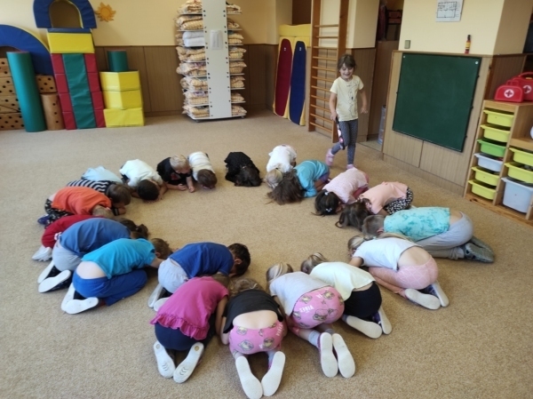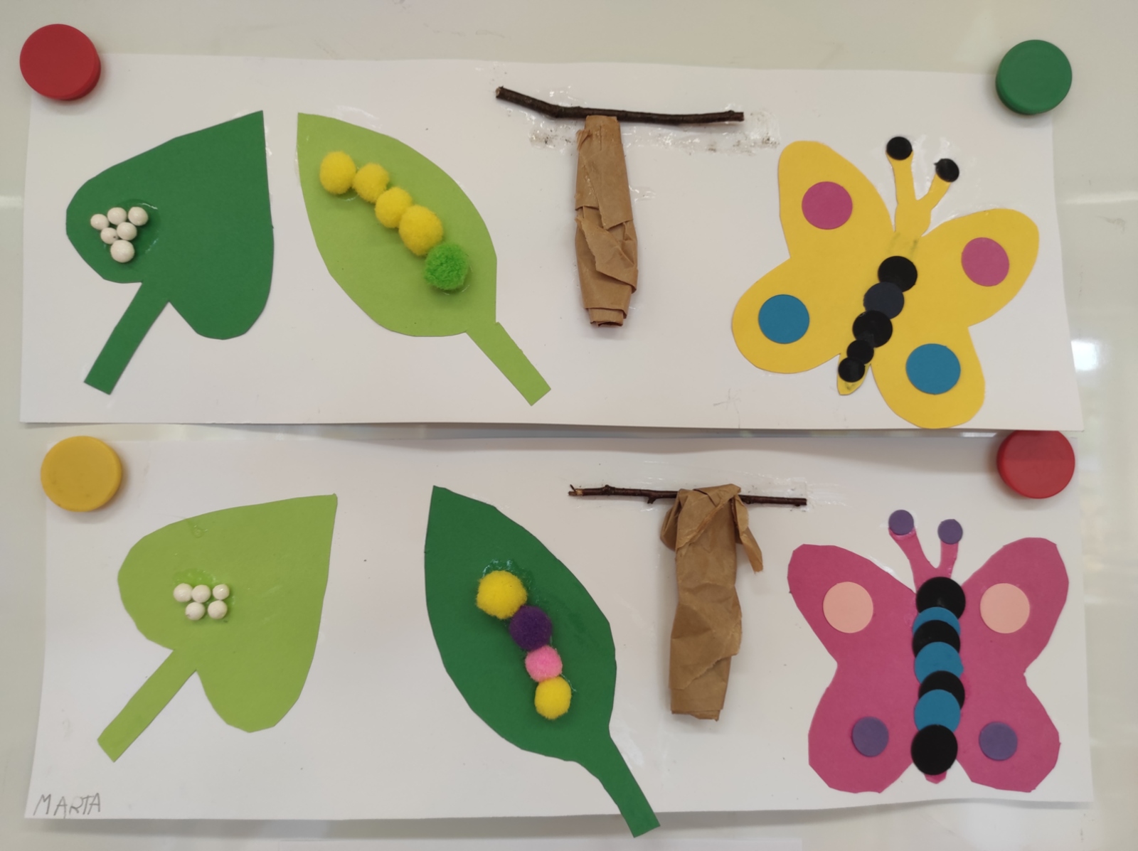 Jak se zrodí motýlek? To už děti ze třídy Sluníček ví. Jednotlivé fáze vývoje motýla jsme si ukázaly na obrázku, pohybově znázornily vlastním tělem, a dokonce i vyrobily. Děti dokreslily polovinu motýlka a zdokonalovaly jemnou motoriku při trhání barevných papírku na ozdobení svého motýlka. Při cvičení s padákem jsme z některých kamarádů vytvořily kuklu a při soutěživých hrách v družstvech jsme zdokonalovaly týmovou spolupráci. Děti pracovaly i s pěknou pomůckou, kde vyhledávaly 5 obrázků, které k sobě patří a poskládaly z nich příběh života. Krásné motýlky děti sestavily i z kamínků. Letí motýl tiše, křidélka má jako z plyše...