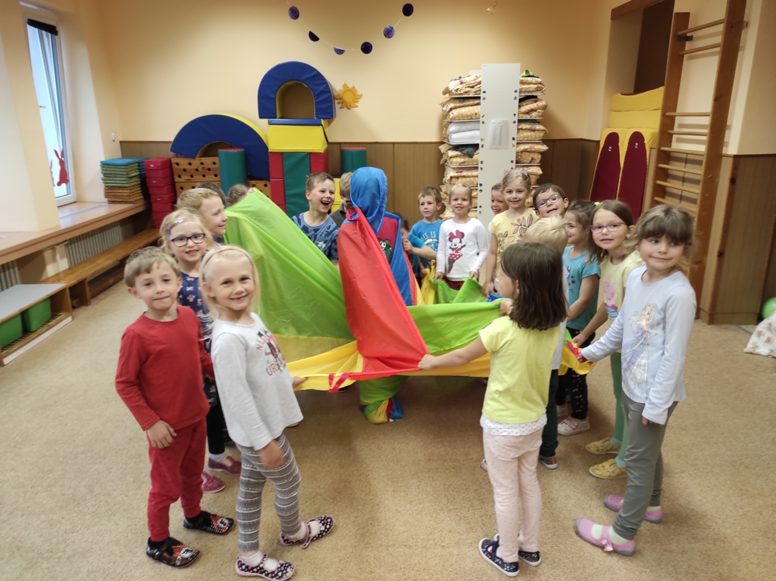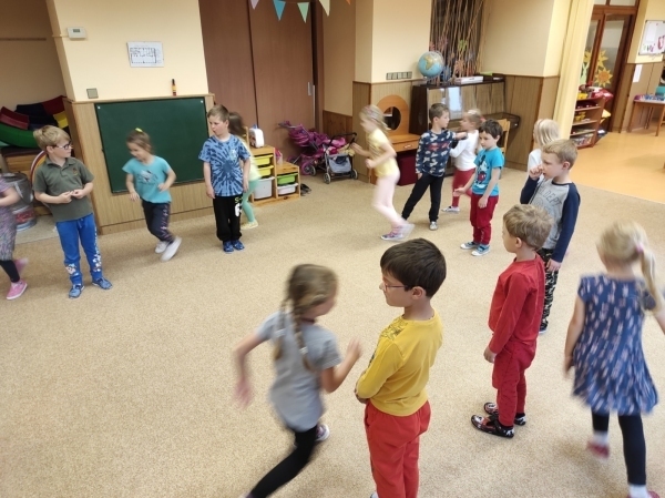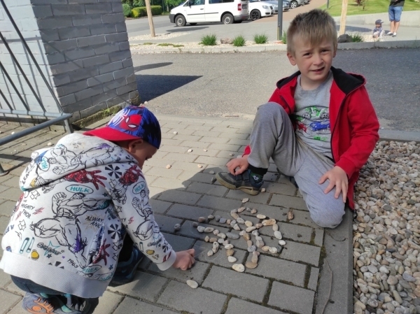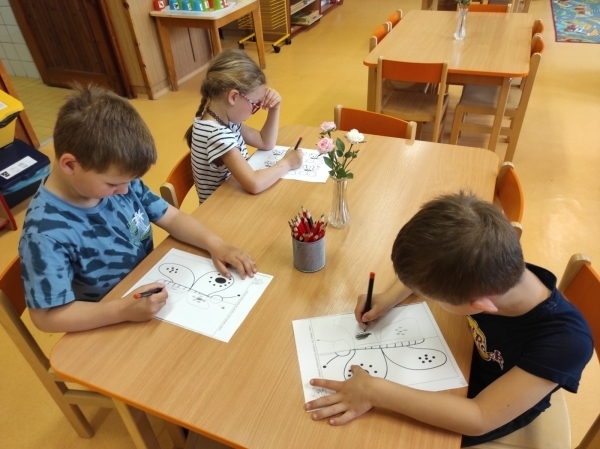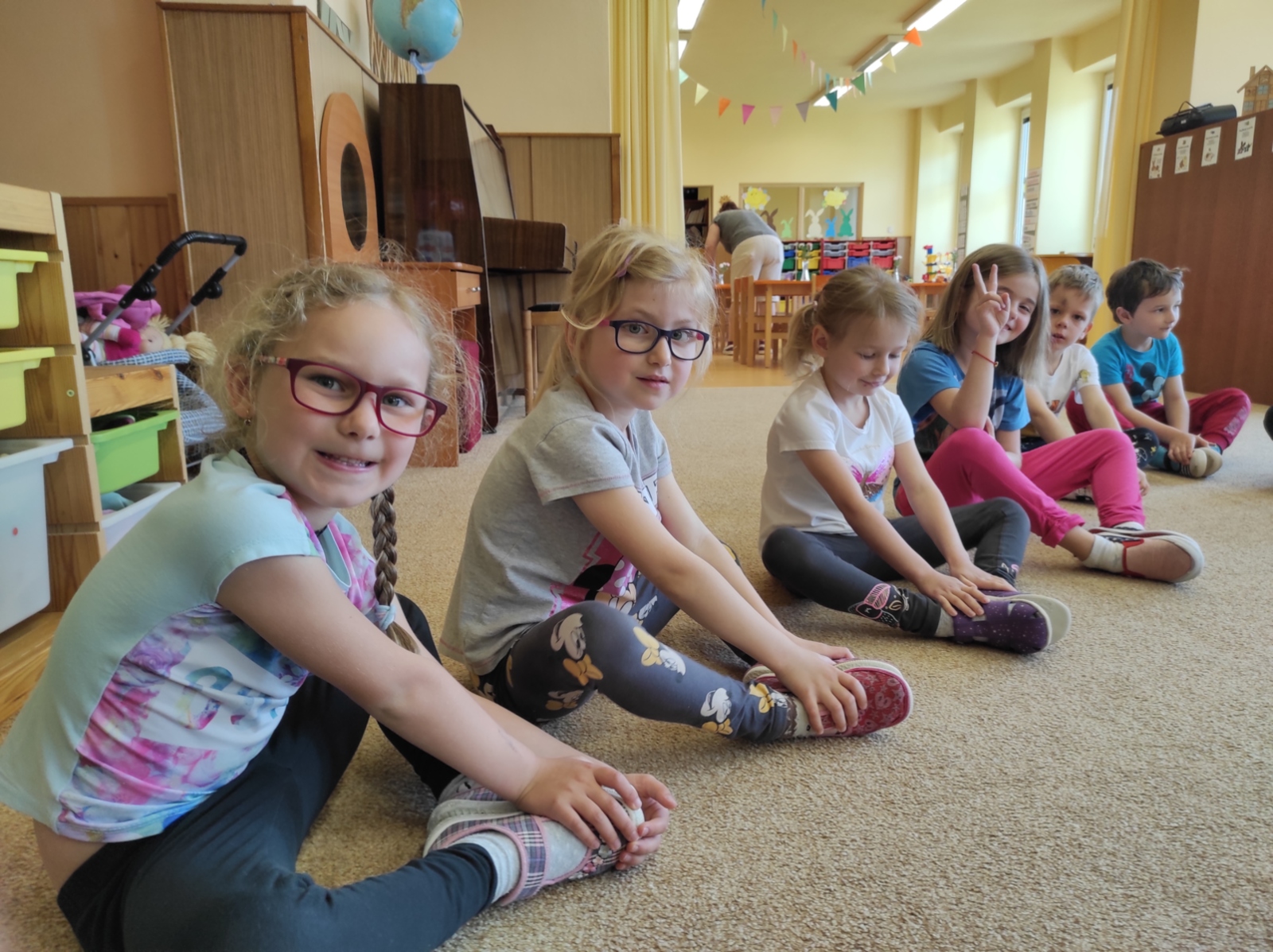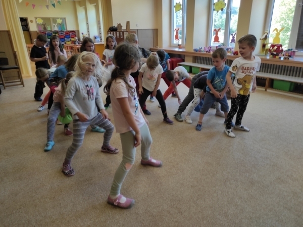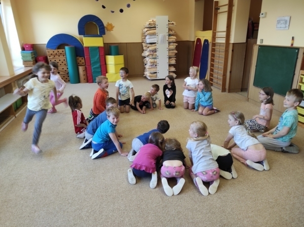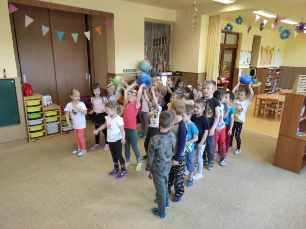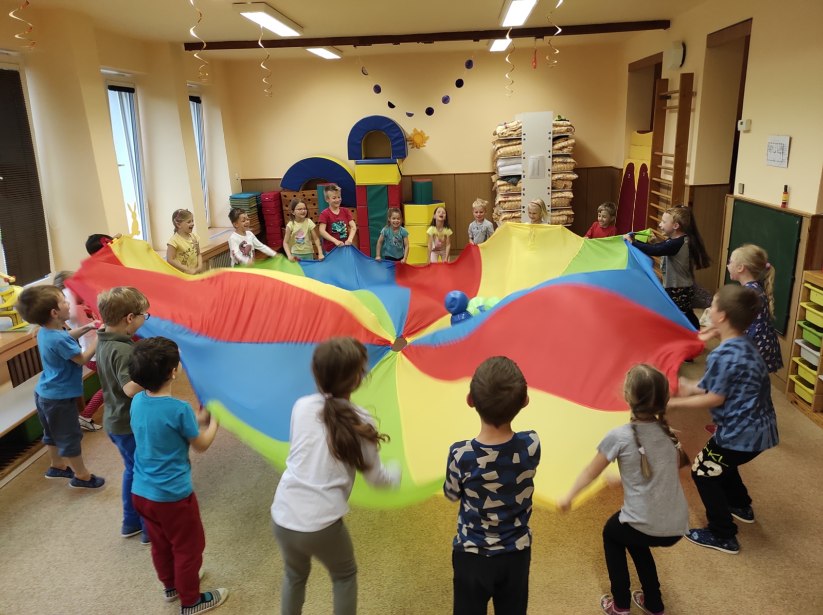 Jak se zrodí motýlek? To už děti ze třídy Sluníček ví. Jednotlivé fáze vývoje motýla jsme si ukázaly na obrázku, pohybově znázornily vlastním tělem, a dokonce i vyrobily. Děti dokreslily polovinu motýlka a zdokonalovaly jemnou motoriku při trhání barevných papírku na ozdobení svého motýlka. Při cvičení s padákem jsme z některých kamarádů vytvořily kuklu a při soutěživých hrách v družstvech jsme zdokonalovaly týmovou spolupráci. Děti pracovaly i s pěknou pomůckou, kde vyhledávaly 5 obrázků, které k sobě patří a poskládaly z nich příběh života. Krásné motýlky děti sestavily i z kamínků. Letí motýl tiše, křidélka má jako z plyše...