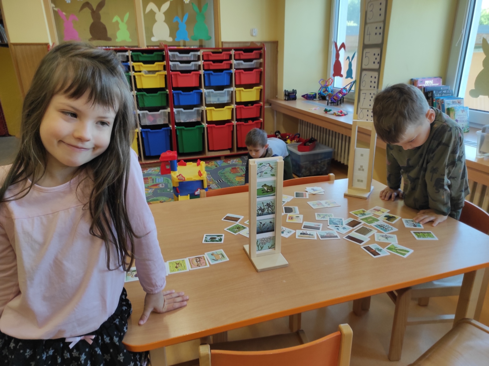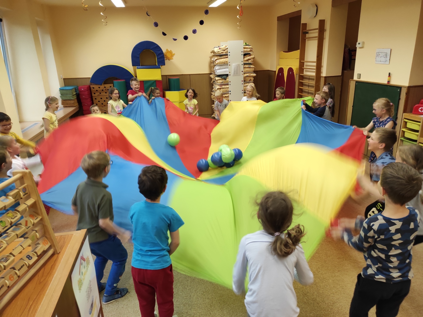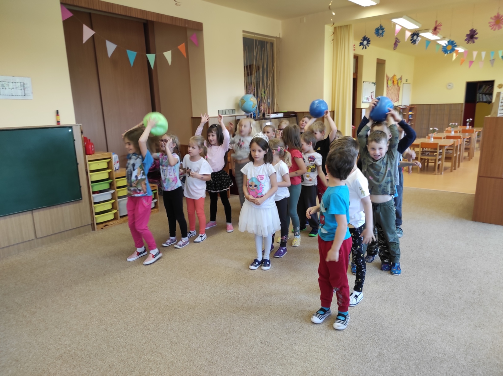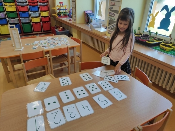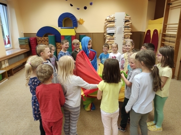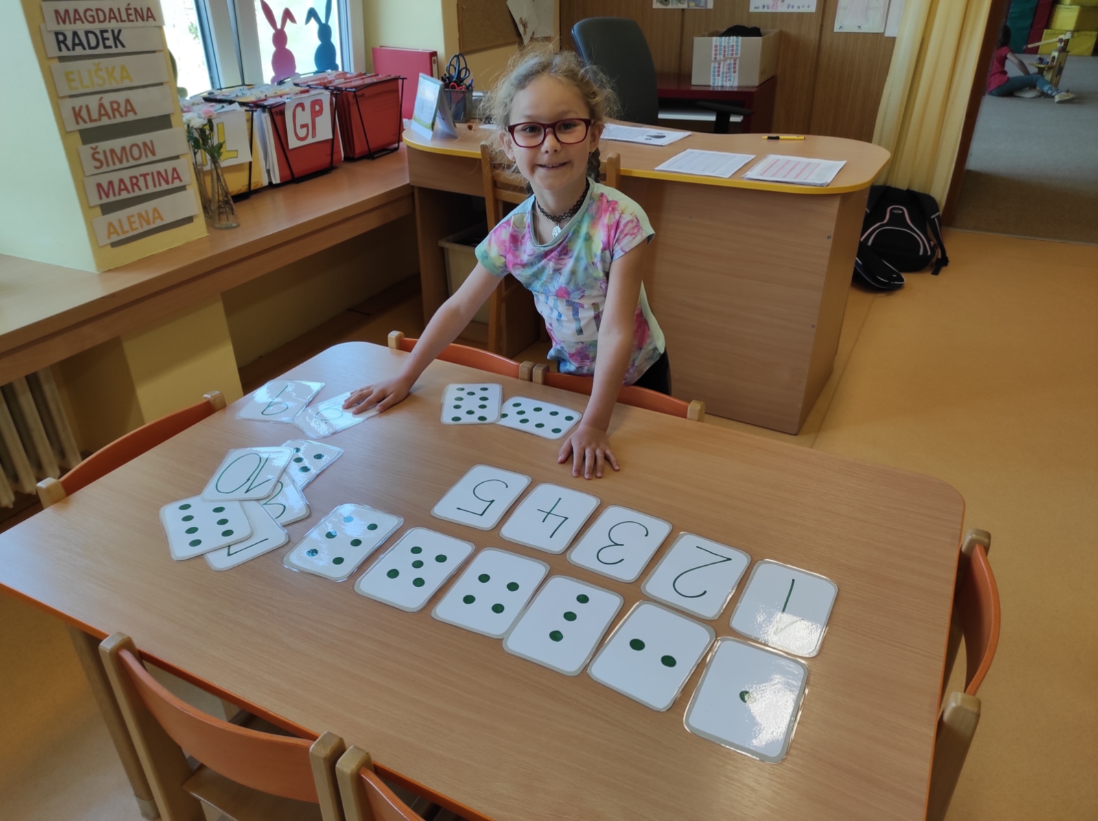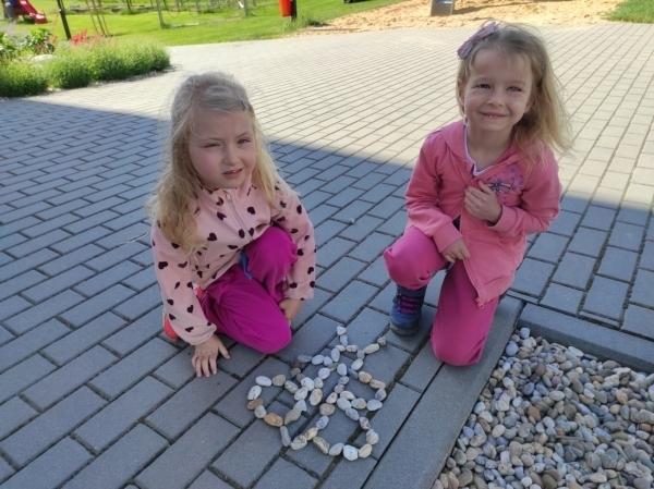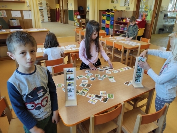 Jak se zrodí motýlek? To už děti ze třídy Sluníček ví. Jednotlivé fáze vývoje motýla jsme si ukázaly na obrázku, pohybově znázornily vlastním tělem, a dokonce i vyrobily. Děti dokreslily polovinu motýlka a zdokonalovaly jemnou motoriku při trhání barevných papírku na ozdobení svého motýlka. Při cvičení s padákem jsme z některých kamarádů vytvořily kuklu a při soutěživých hrách v družstvech jsme zdokonalovaly týmovou spolupráci. Děti pracovaly i s pěknou pomůckou, kde vyhledávaly 5 obrázků, které k sobě patří a poskládaly z nich příběh života. Krásné motýlky děti sestavily i z kamínků. Letí motýl tiše, křidélka má jako z plyše...