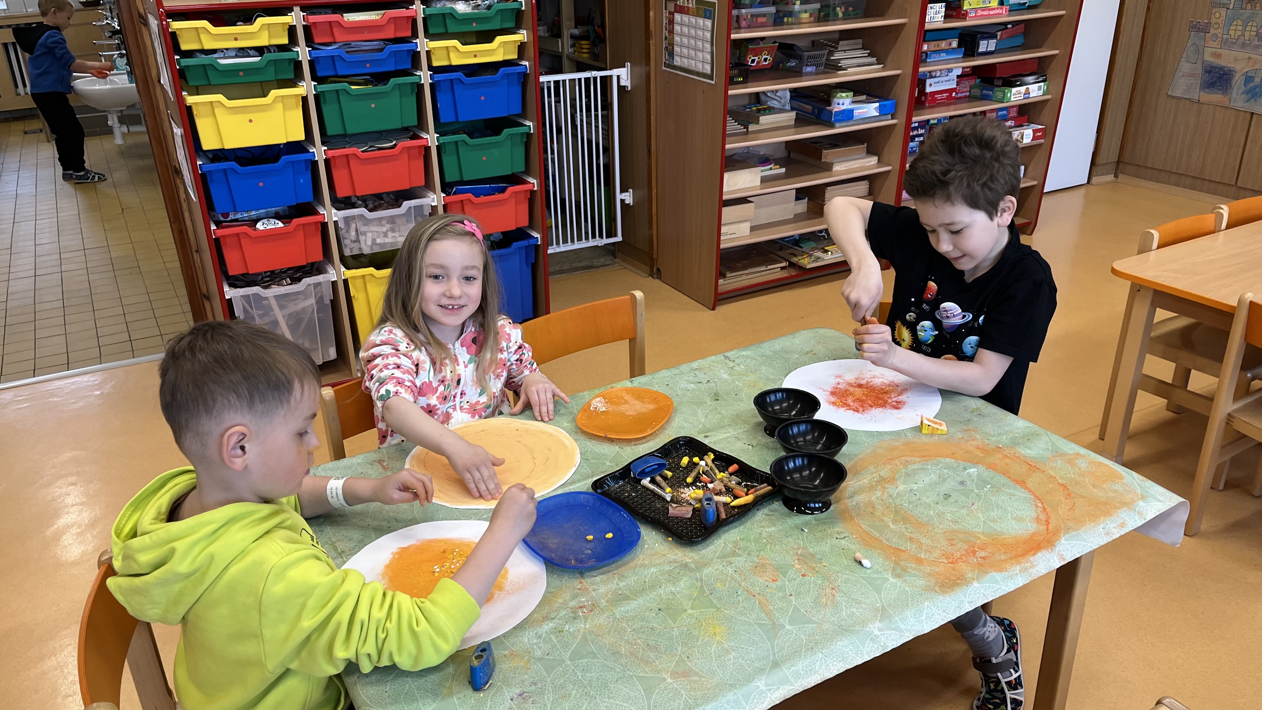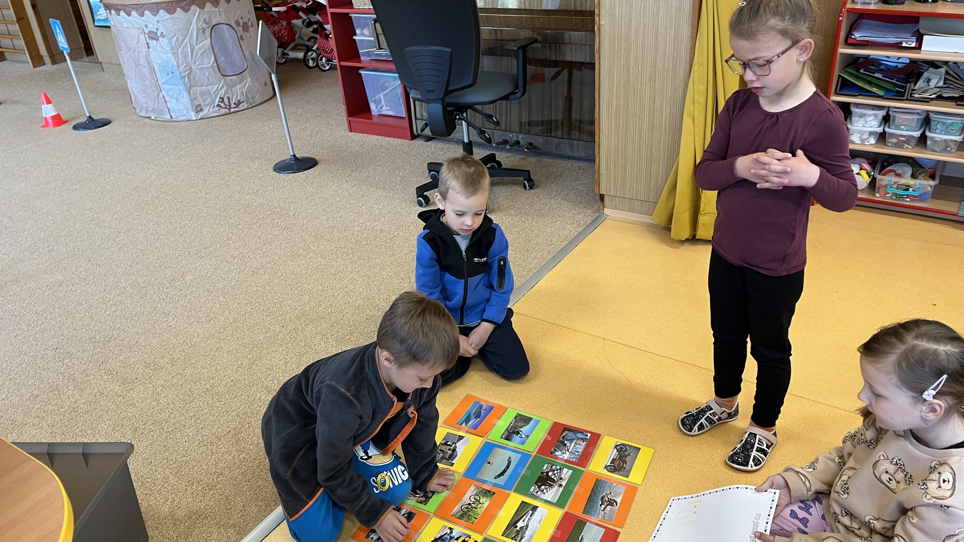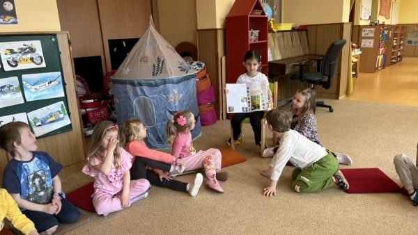 V tomto týdnu si děti upevňovaly pravidla bezpečného chování doma, venku i ve školce. Seznamovaly se s dopravními značkami, zkoušely si programování při práci s Bee-Bot včelkami, rozvíjely kreativitu a manuální zručnost a přemýšlely nad tím, zda je možné bydlet na Slunci. Zajímavou akci děti prožily hned na začátku týdne při setkání se sokolníky a při seznámení s jejich prací a ukázce některých našich dravých ptáků.