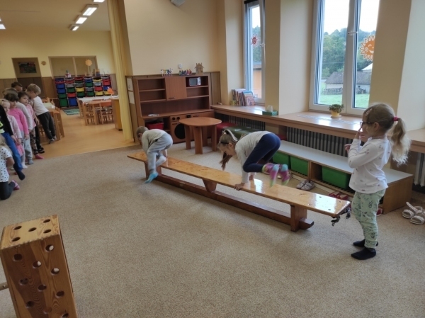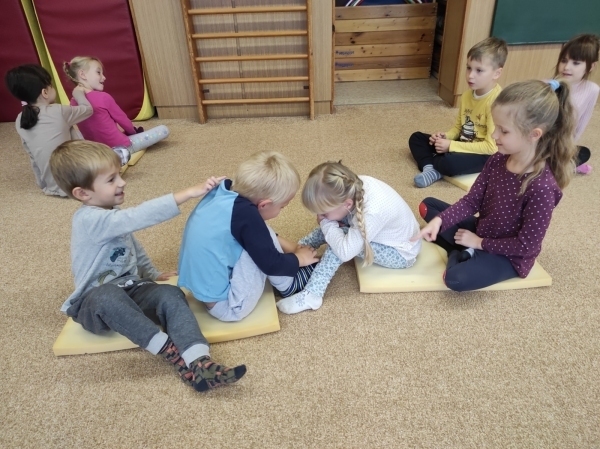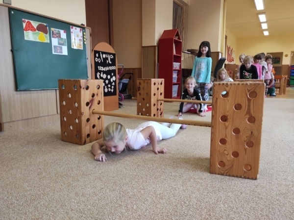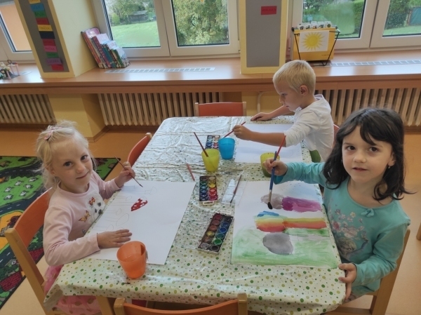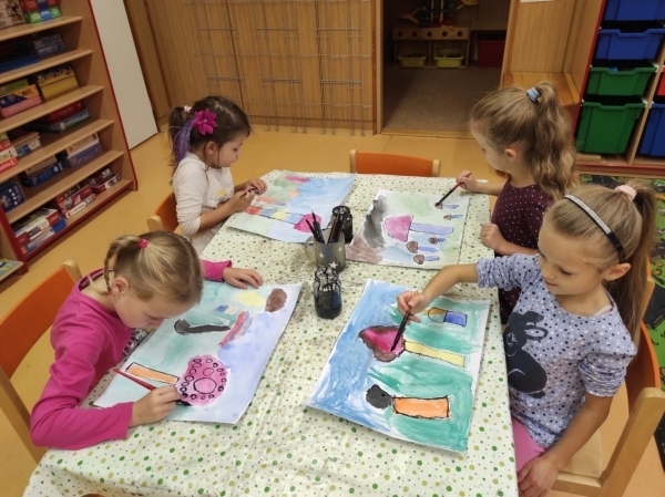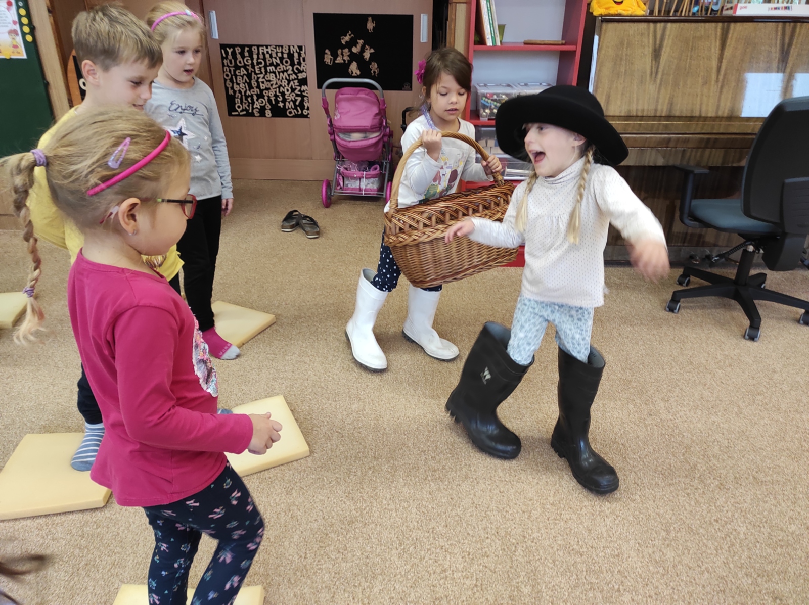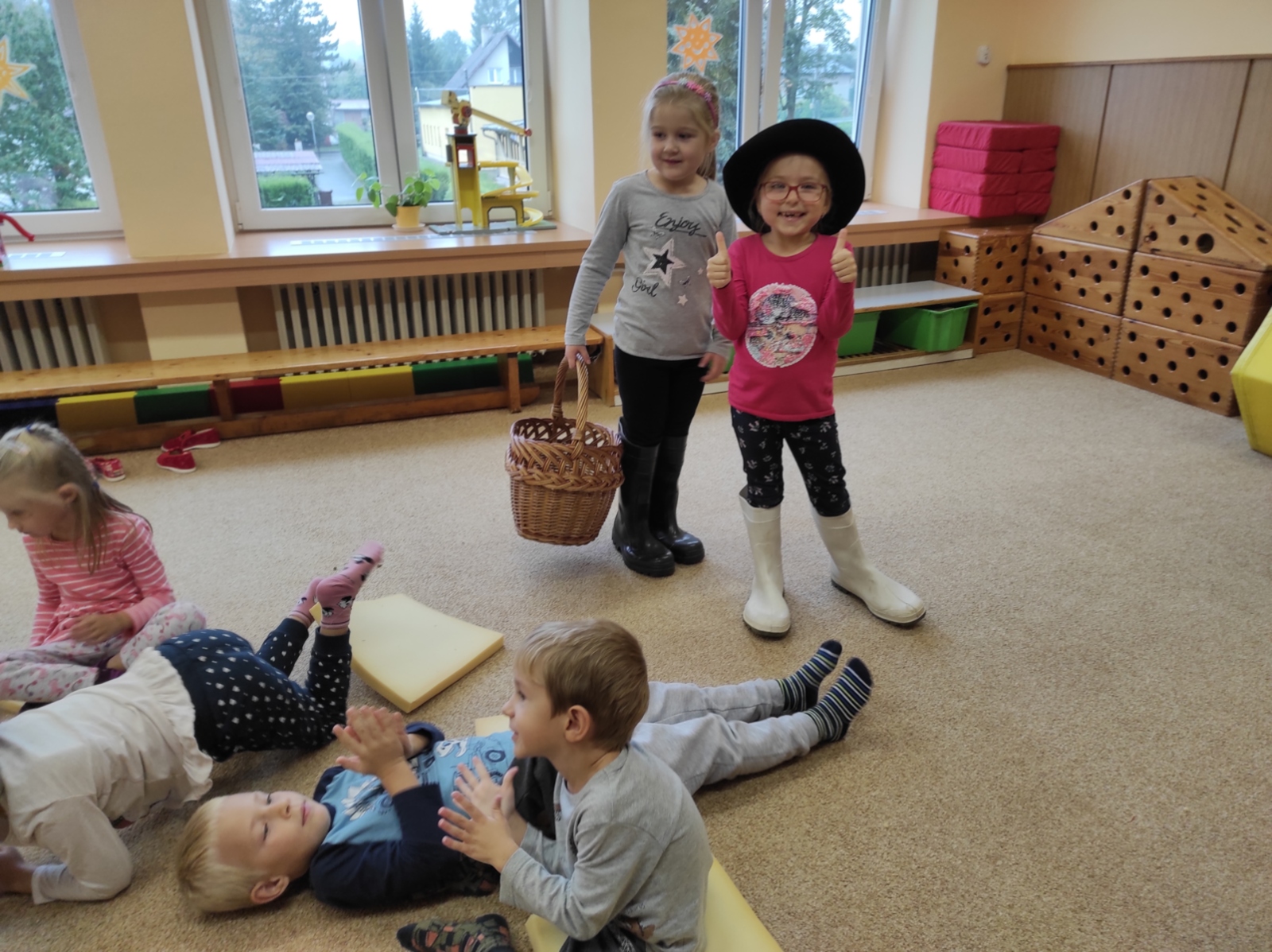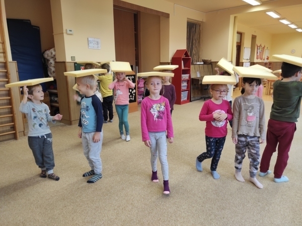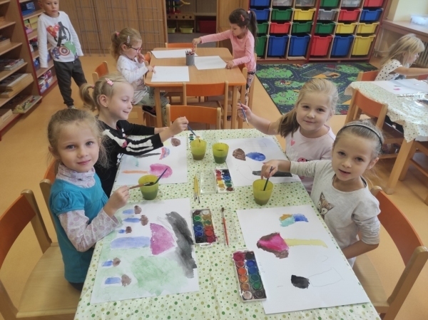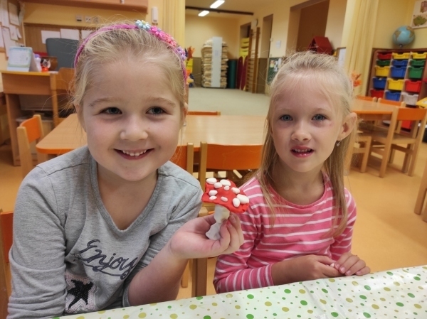 ...hádaly se v lese, kterou z nich si houbař, v košíku odnese. Tahle písnička nás provázela týdnem plným houbaření. Děti se seznámily s atlasem hub, jejich rozdělením, získaly povědomí o různorodosti podob hřibů a jejich zpracování. Pozorování podzimní přírody zrakem i sluchem jsme si užili na krásné procházce v pláštěnkách. Dětem se moc povedlo i zachycení tvaru hub v kresbě, které potom vymalovaly barvami se správným úchopem štětce, a nakonec pečlivě vyznačili linii tuší. V pohybových aktivitách děti zdolávaly možné překážky v lese nebo si vyzkoušely vzpřímený pohyb s kloboučkem na hlavě. Děti zvládly vymodelovat úžasné muchomůrky.