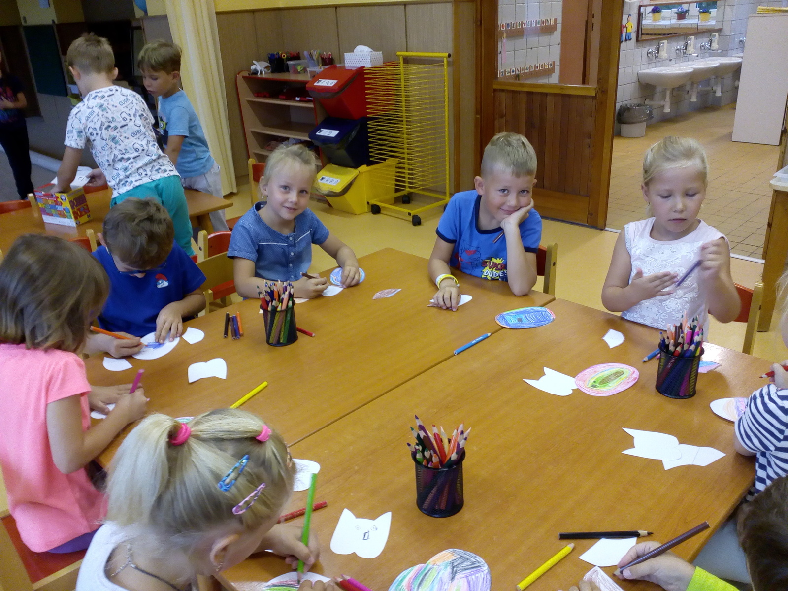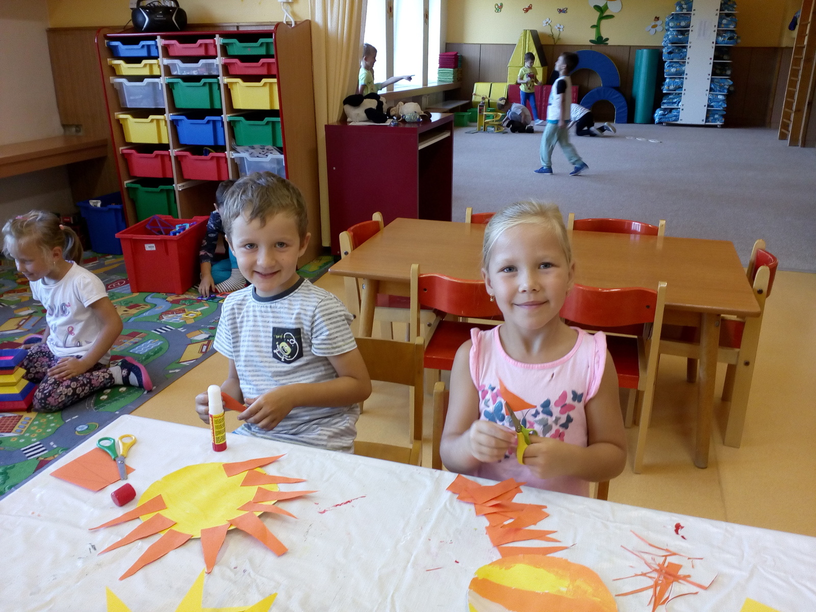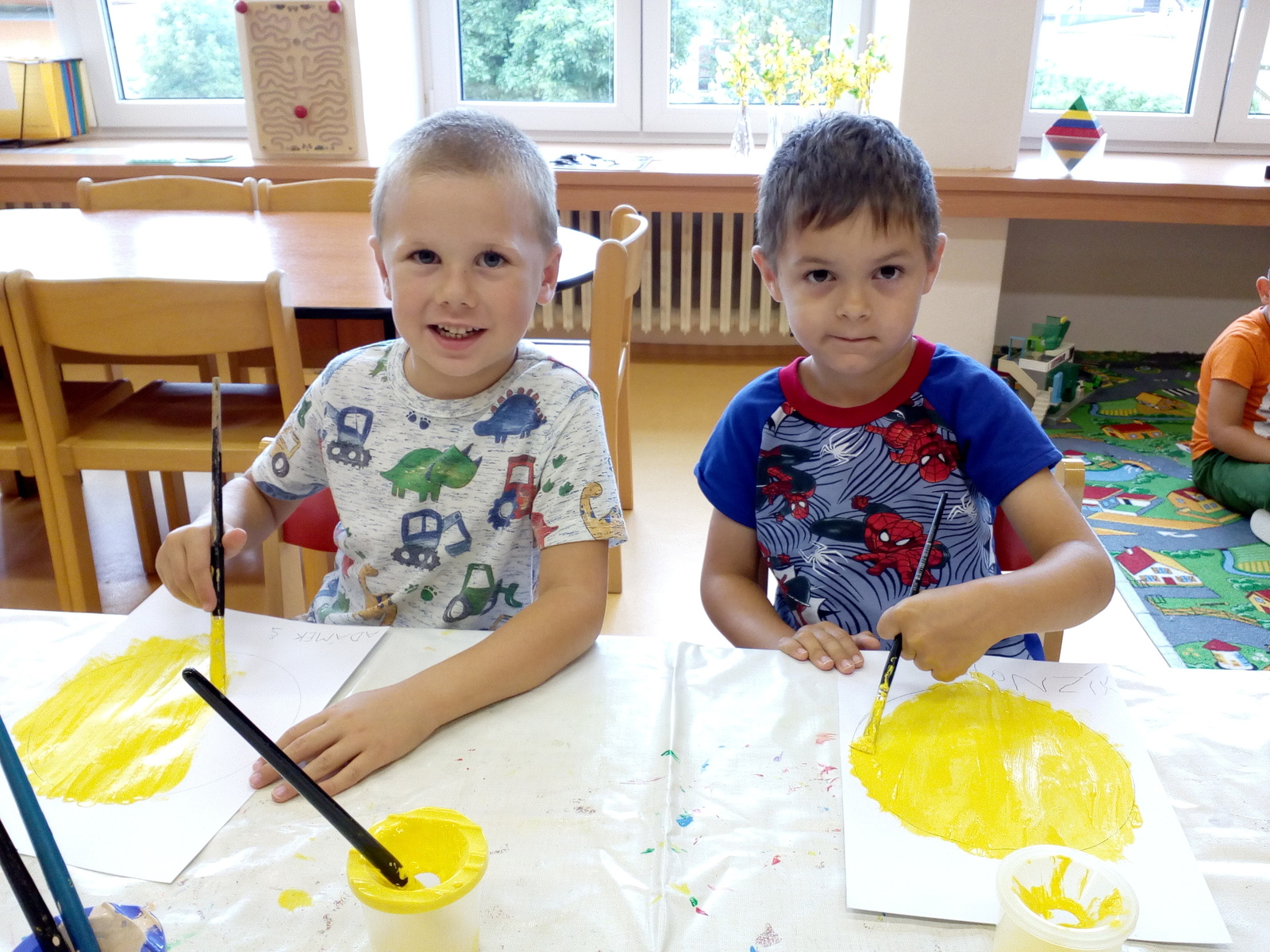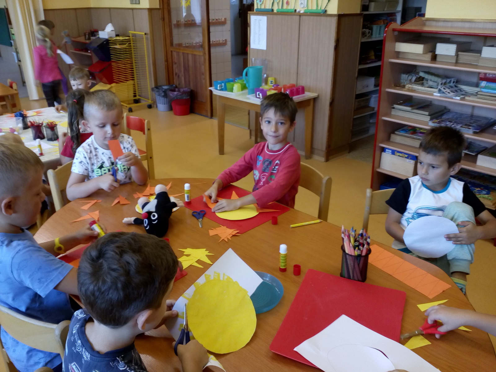V prvním týdnu tohoto školního roku byly děti uvedeny do třídy Sluníček, ve které spolu prožijí nový školní rok. Na malé exkurzi ve školní kuchyni a jídelně se děti seznámily s prací našich šikovných paní kuchařek. Navštívily kamarády ze tříd Motýlků a Soviček, popřály několika kamarádům k narozeninám a svátku, naučily se novou píseň "Jsme kamarádi" a vyrobily si sluníčko. V neposlední řadě se seznámily s bezpečností chování v mateřské škole a při pobytu venku.