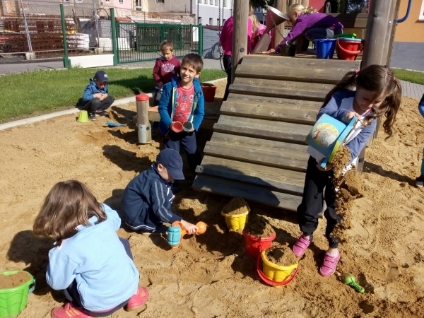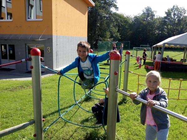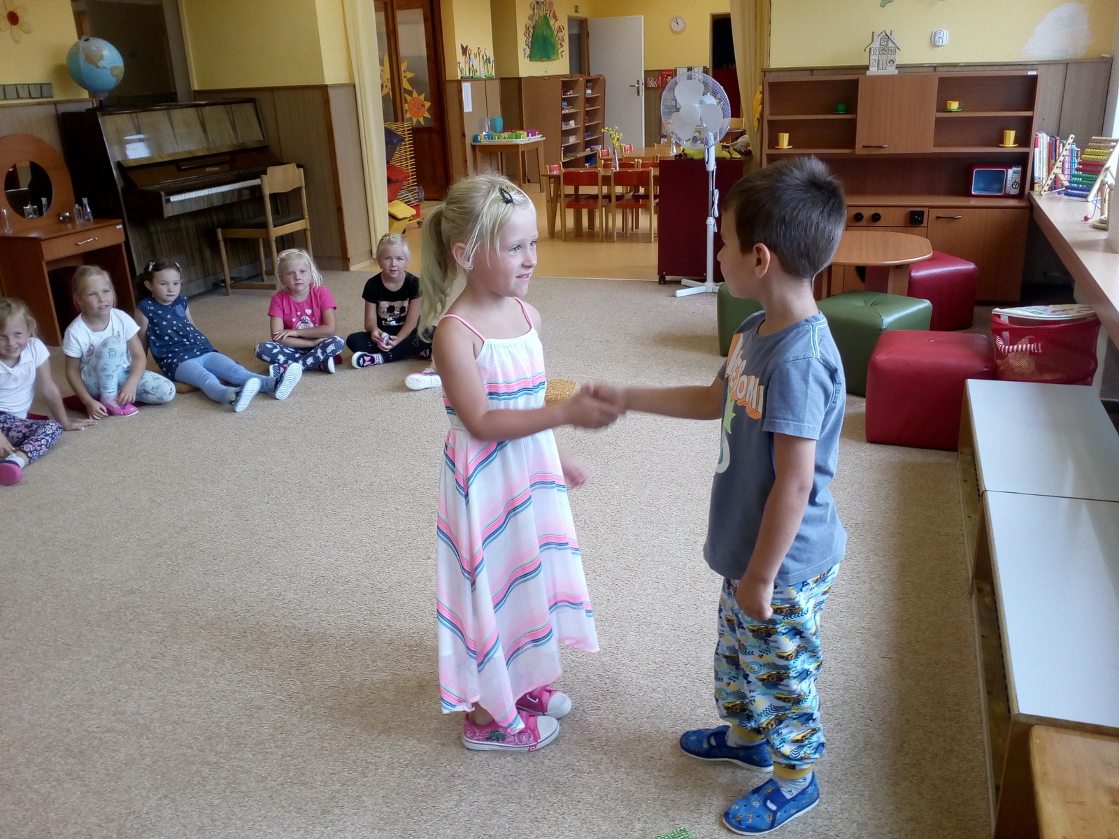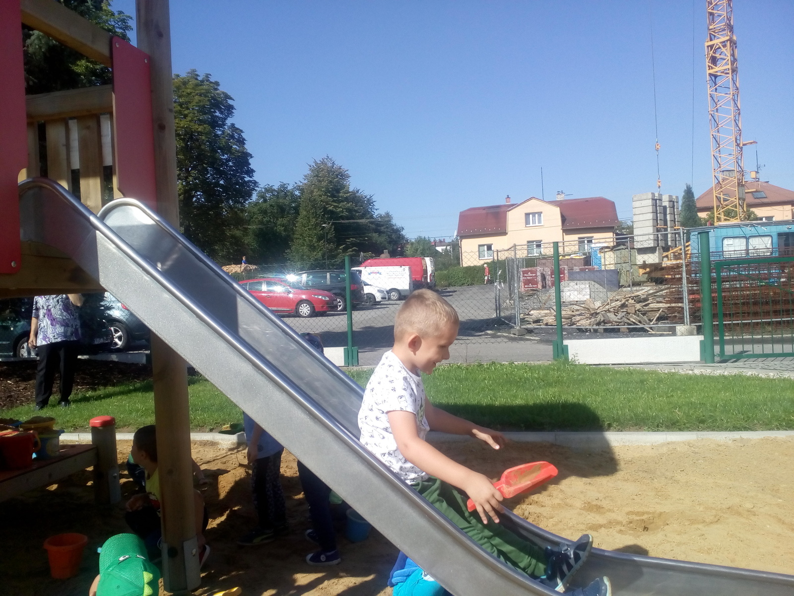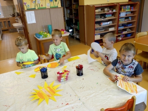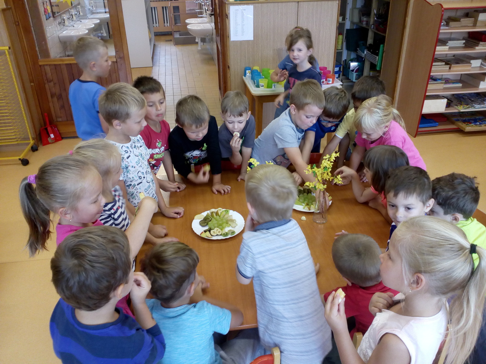 V prvním týdnu tohoto školního roku byly děti uvedeny do třídy Sluníček, ve které spolu prožijí nový školní rok. Na malé exkurzi ve školní kuchyni a jídelně se děti seznámily s prací našich šikovných paní kuchařek. Navštívily kamarády ze tříd Motýlků a Soviček, popřály několika kamarádům k narozeninám a svátku, naučily se novou píseň "Jsme kamarádi" a vyrobily si sluníčko. V neposlední řadě se seznámily s bezpečností chování v mateřské škole a při pobytu venku.