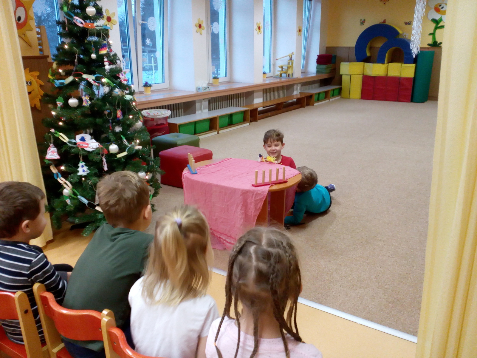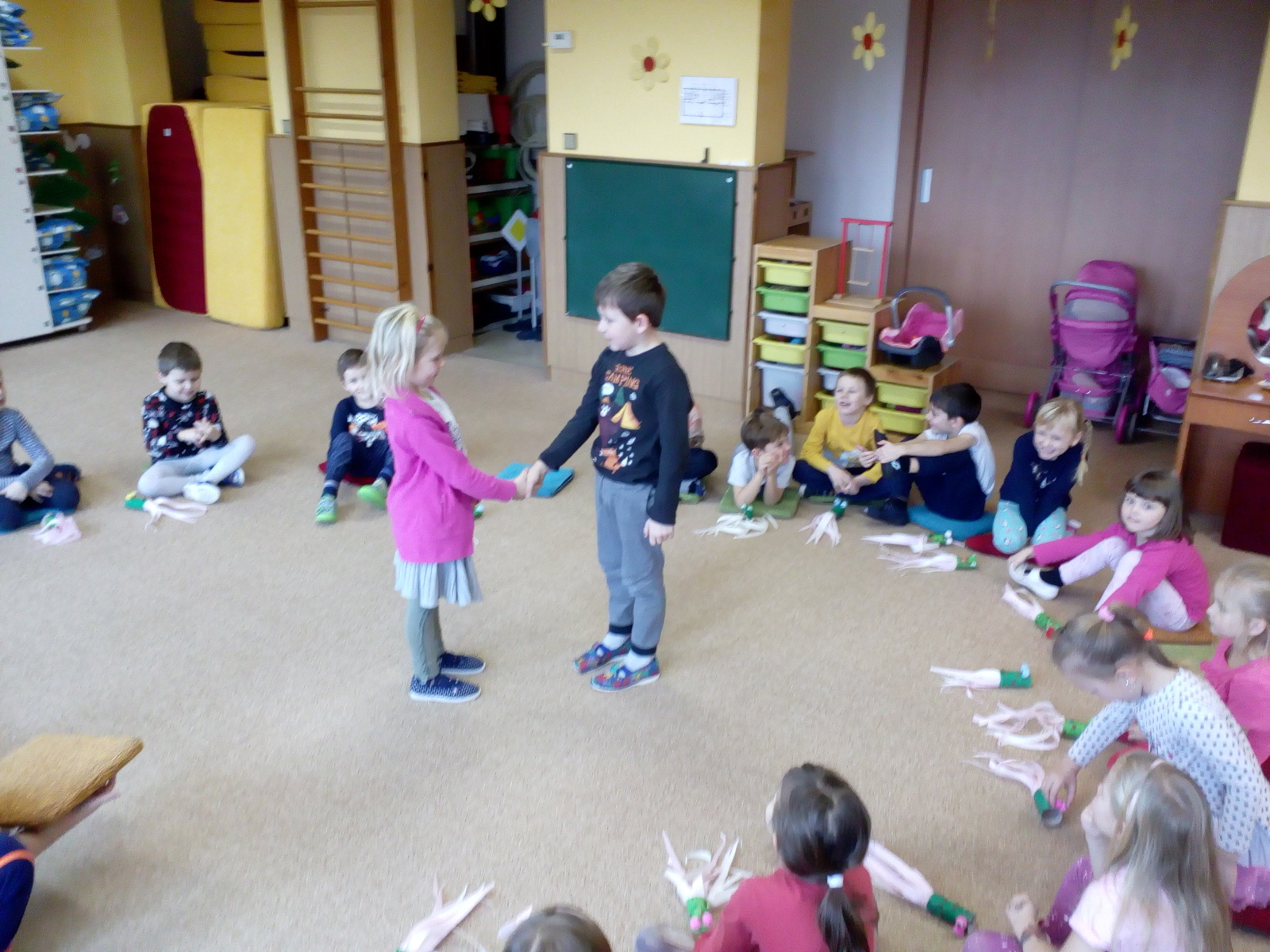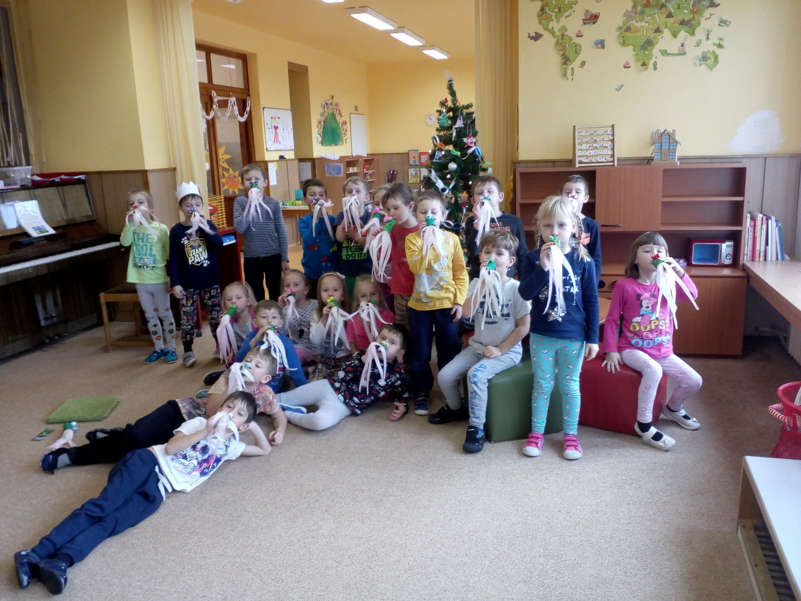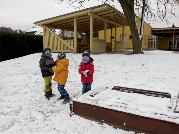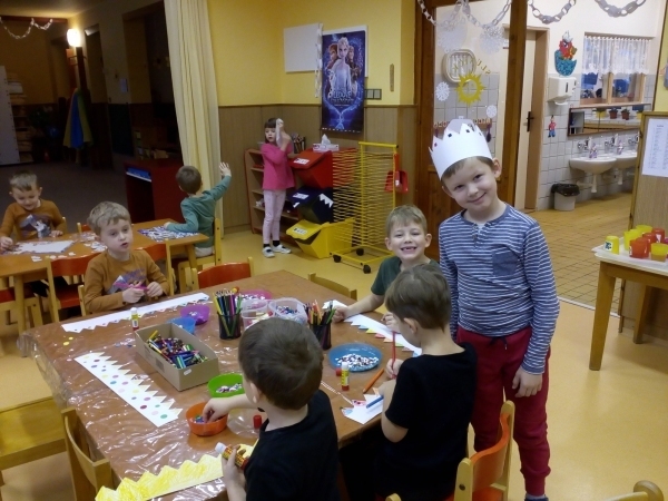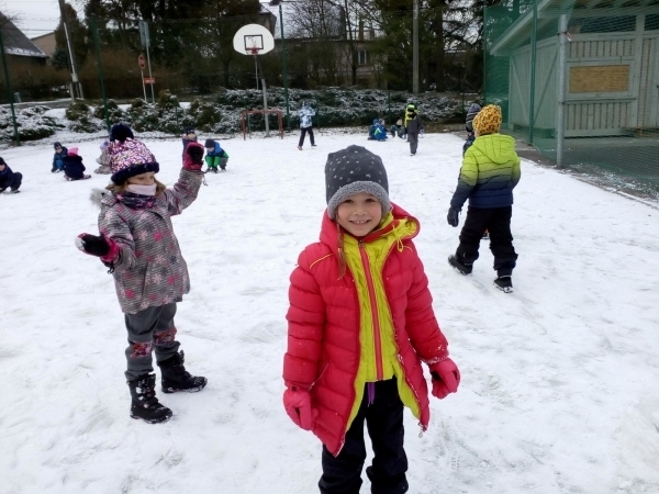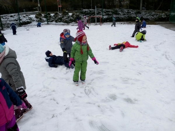 V týdnu s názvem Princezna a drak si děti prohloubily pozitivní vztah k umění a k dramatickým činnostem, rozvinuly představivost a verbální i neverbální komunikaci. Seznámily se s písničkou Princezna a drak a s básničkou Šašek, zahrály si pohádku i divadélko, vyrobily si draka k procvičování správné techniky dýchání. Díky sněhové nadílce si děti užily spoustu legrace a zábavy na školním hřišti.