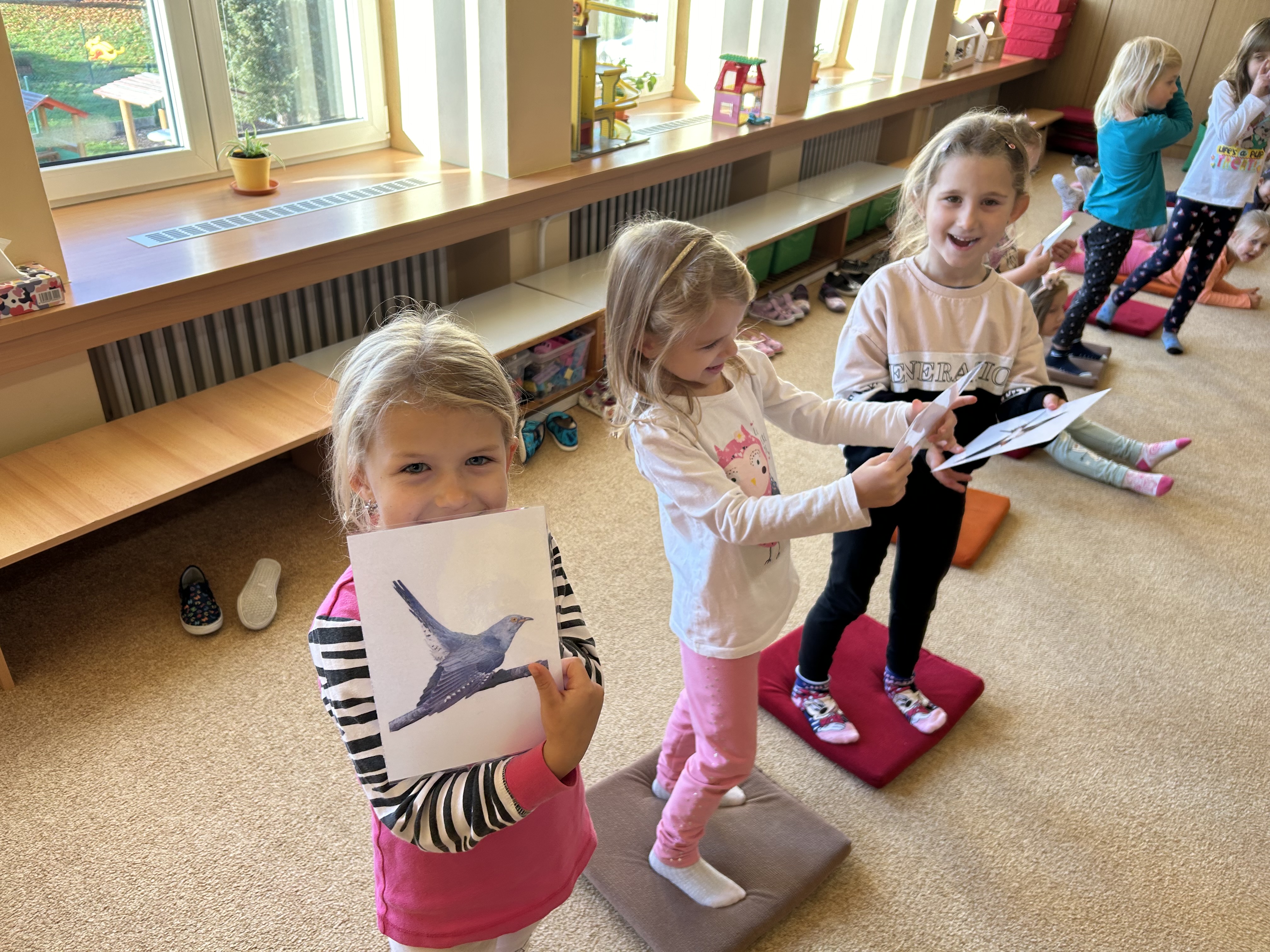 V tomto týdnu si děti upevnily znalosti týkající se koloběhu života, střídání ročních období, přípravy přírody na zimu a o odletu stěhovavého ptactva. V rámci skupinových činností rozvíjely vzájemnou spolupráci, ohleduplnost a komunikaci, seznámily se s písní Toulaví ptáci a kreativitu a manuální zručnost rozvíjely při tvoření hnízdečka a ptáčka. Spolu s kamarádkami Nikolkou a Terinkou si užily dvojitou oslavu jmenin a narozenin a k přání připojily krásnou písničku Pohodička tady je.