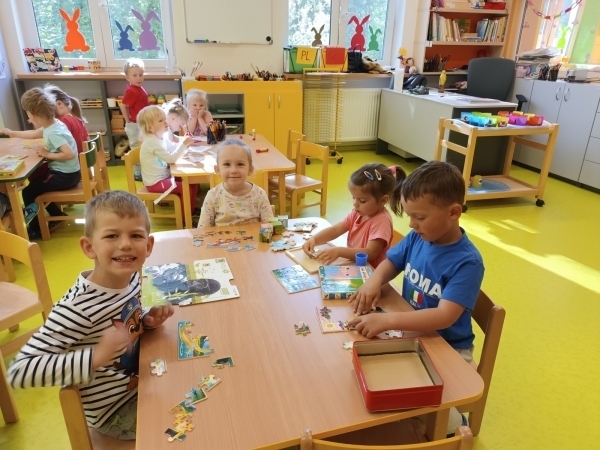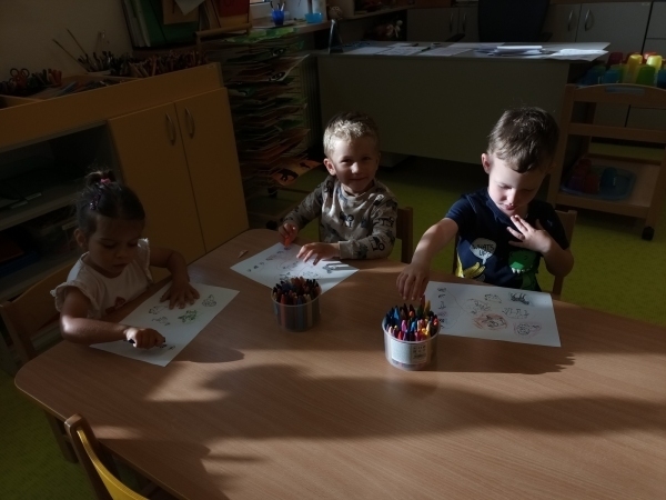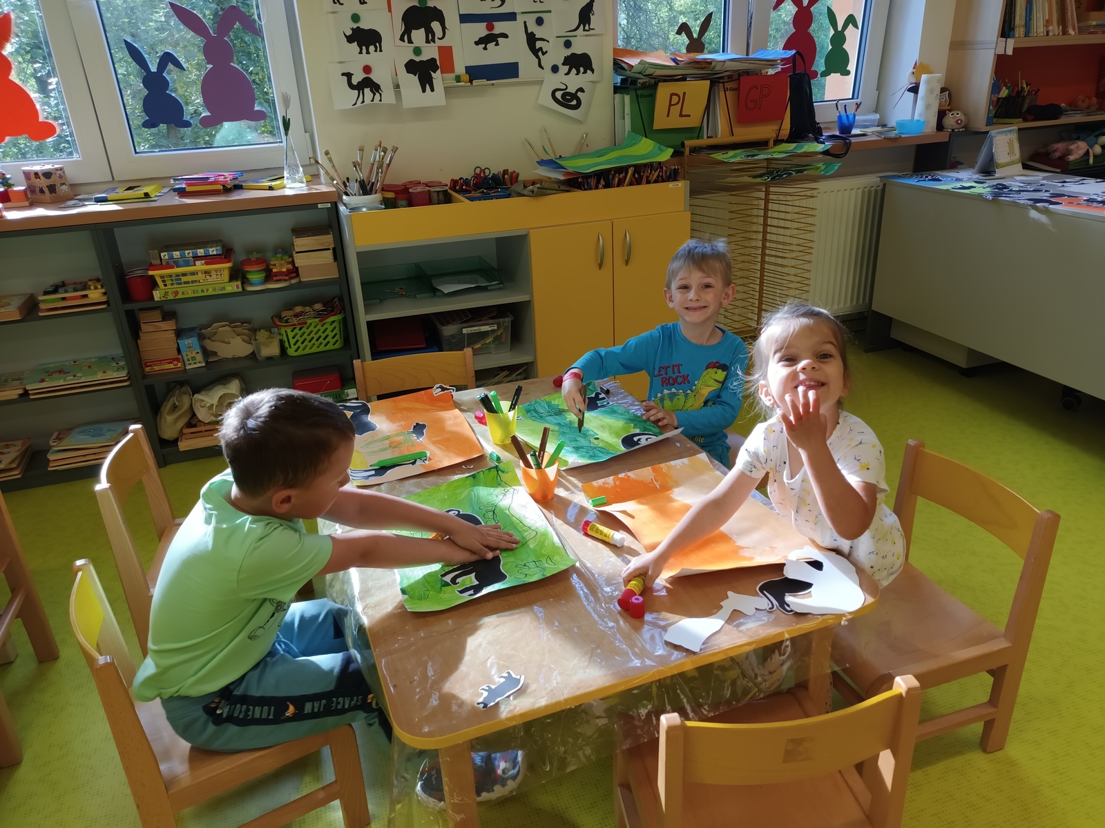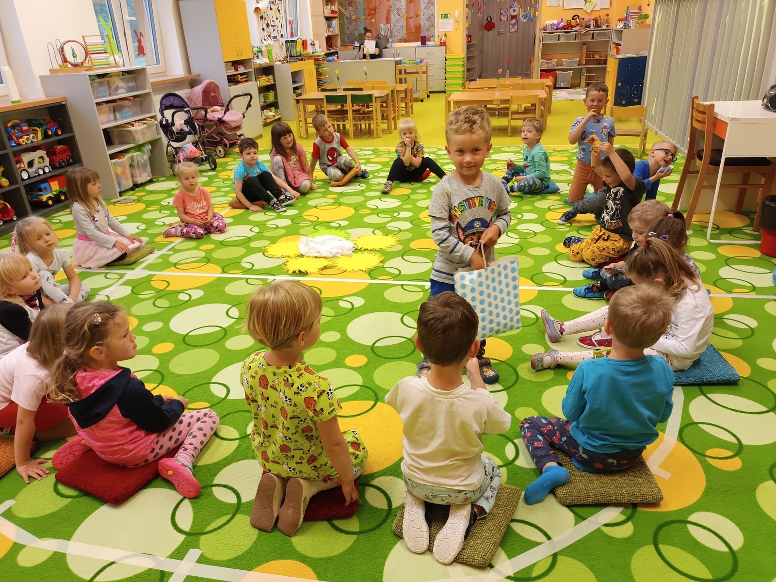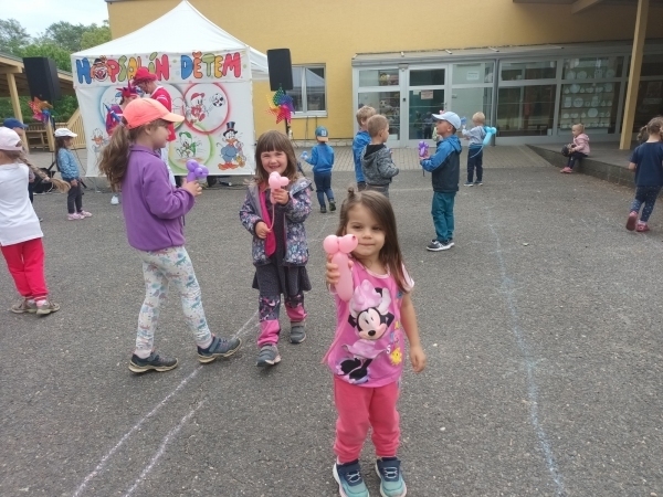 Tento týden jsme s dětmi prožili ve společnosti cizokrajných zvířat. Děti hledaly rozdíly mezi zvířaty žijícími u nás a zvířaty z pouště a pralesa. Upevnily si názvy zvířat, přemýšlely o naší planetě Zemi, seznámily se s básničkou Žirafa a písničkou Svátek dětí. V rámci projektu Moje oblíbená hračka jsme si tento týden poslechli hned dvě krásná vyprávění od kamarádů Honzíka a Mikuláška. Velkou radostí pro děti byla nejen návštěva Hopsalína se spoustou písniček, tanečků, sportovních úkolů a bublin, ale také oslava narozenin kamaráda Vašíčka.