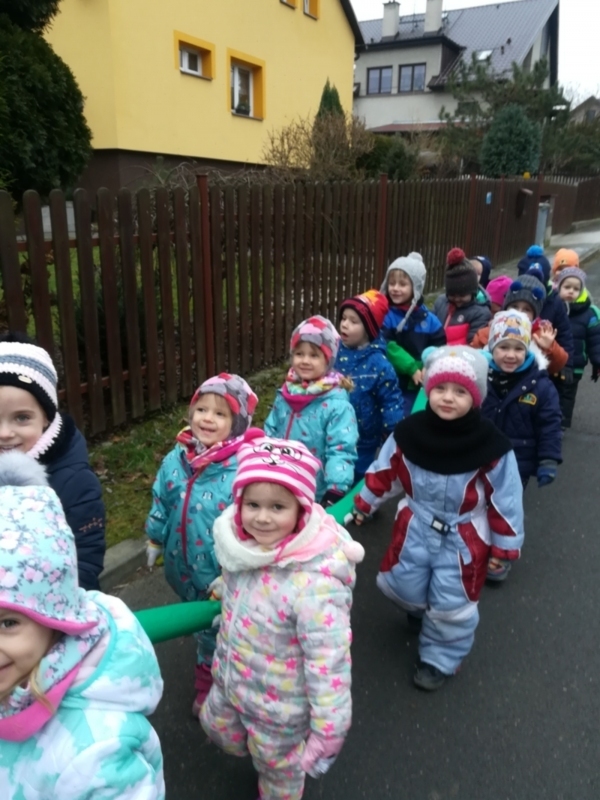 Tento týden jsme se dozvěděli zase něco nového o zvířátkách, která můžeme potkat v zimě. Zatančili jsme si taneček Vrabec a sýkorka, vyrobili jsme si dekoraci – krmítko s ptáčky, zanesli jsme zvířátkům do krmelce něco dobrého. S chozením ve dvojicích za sebou při vycházkách nám pomáhal náš zelený had:-)