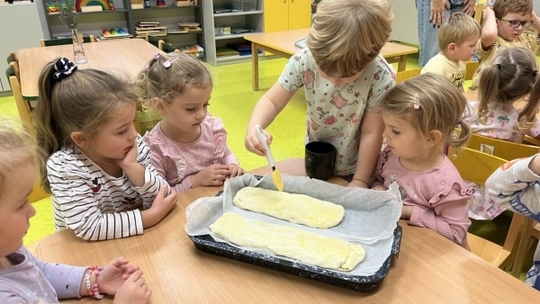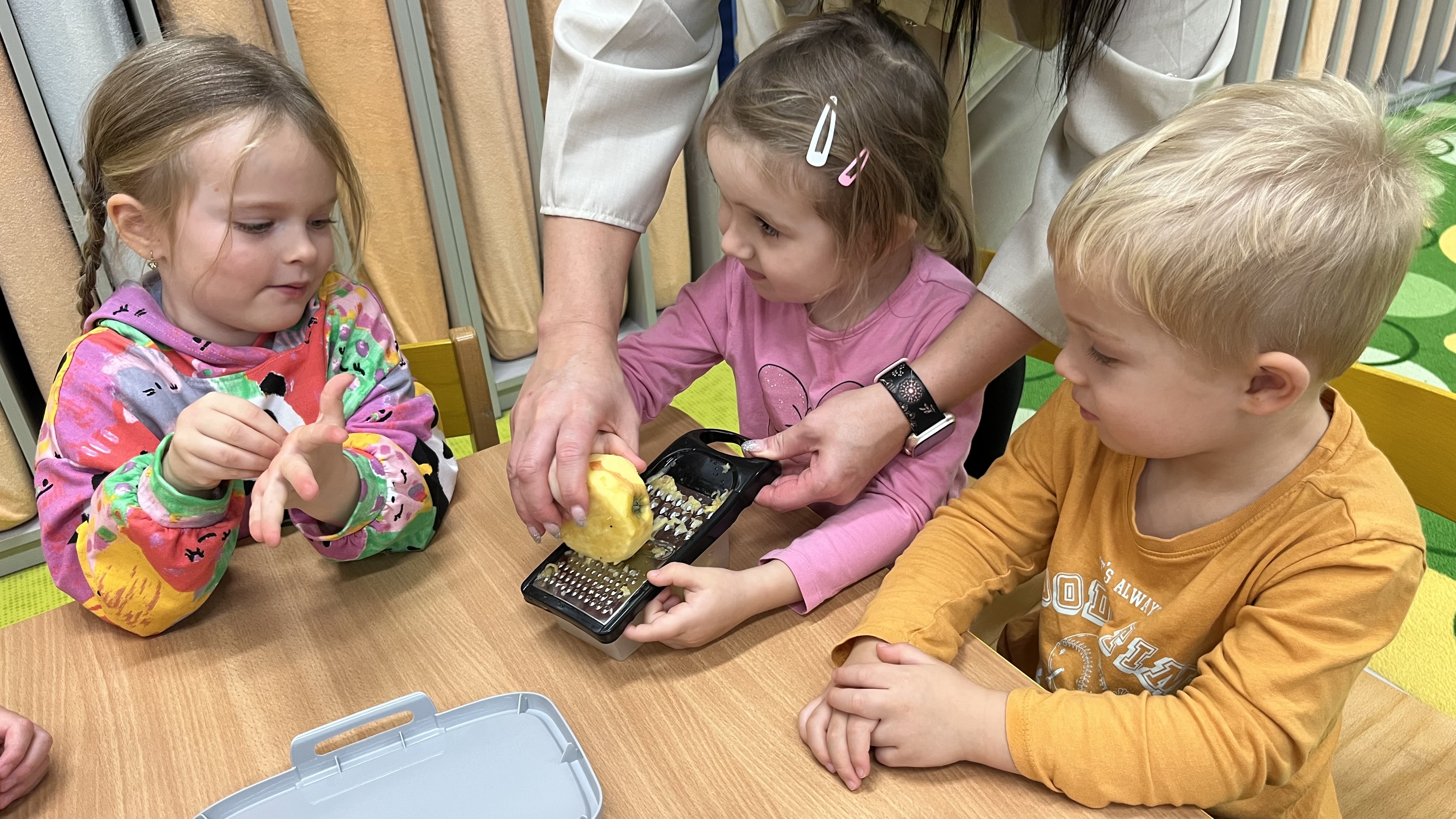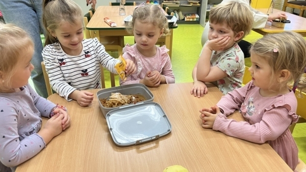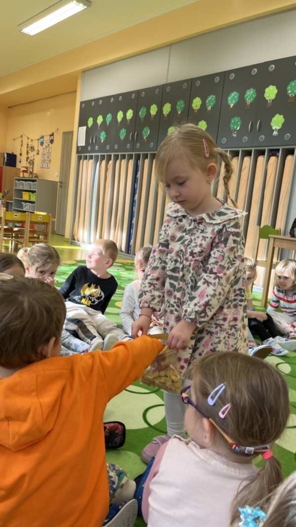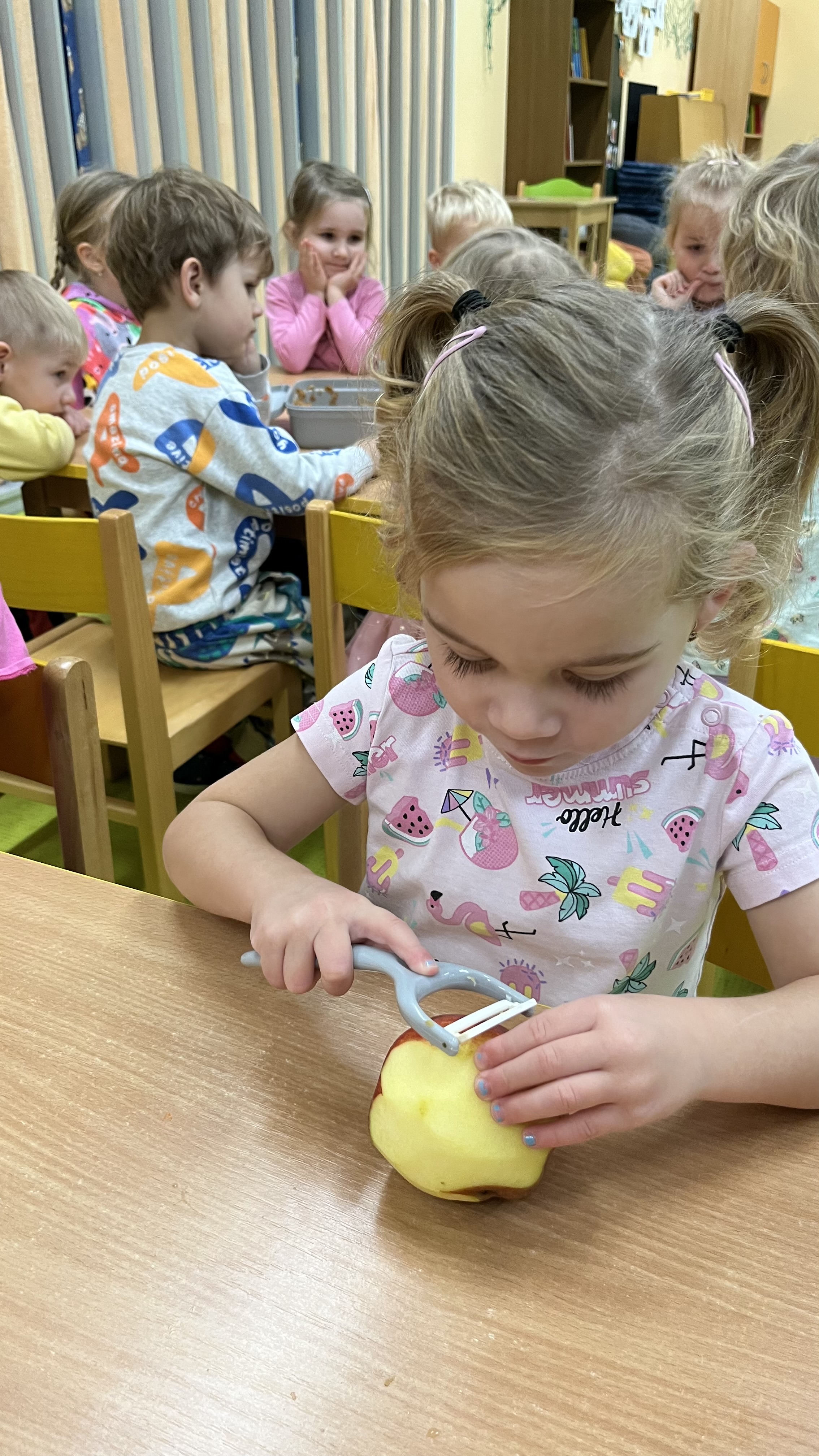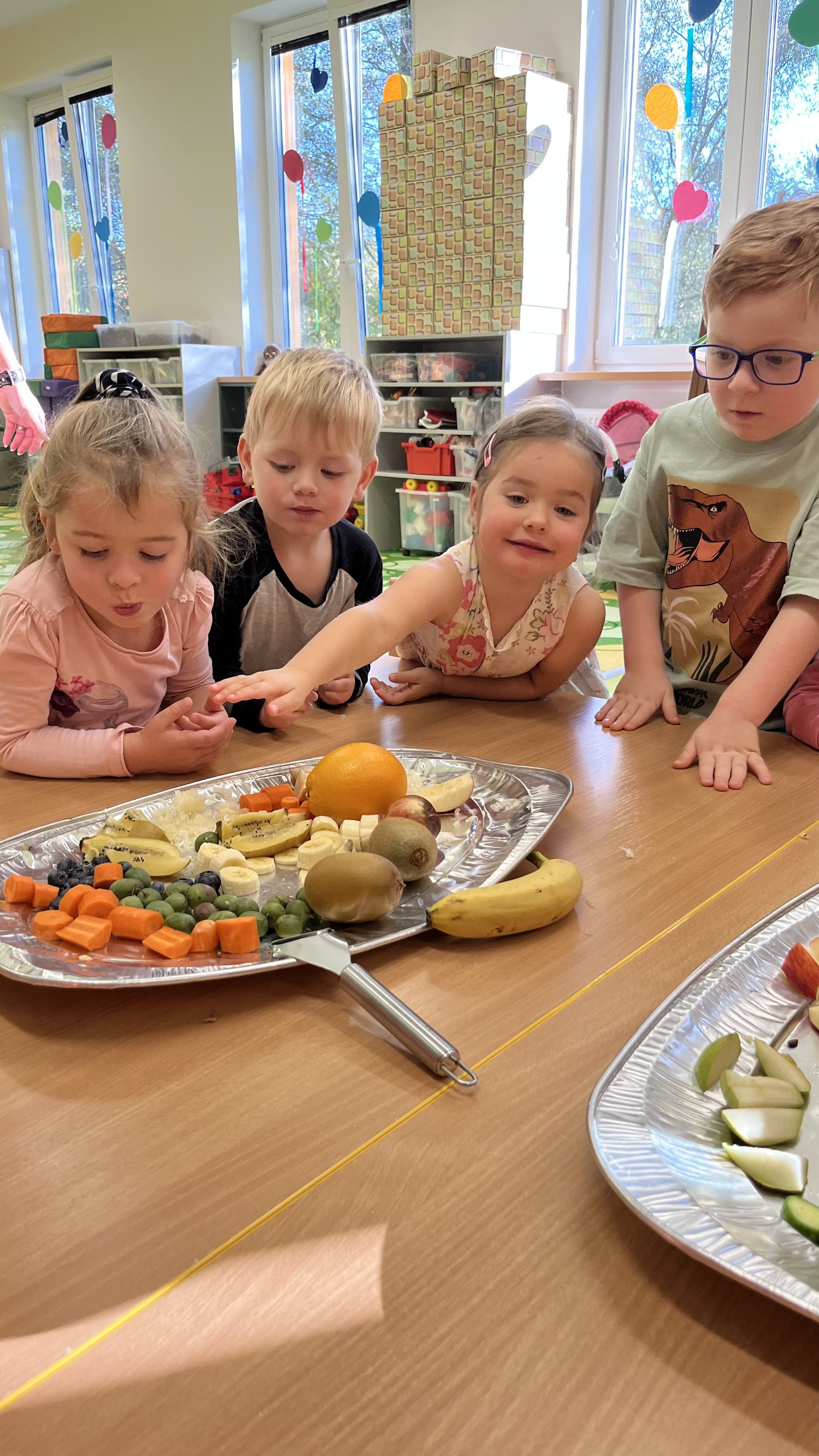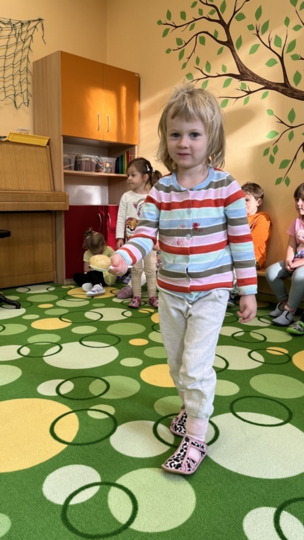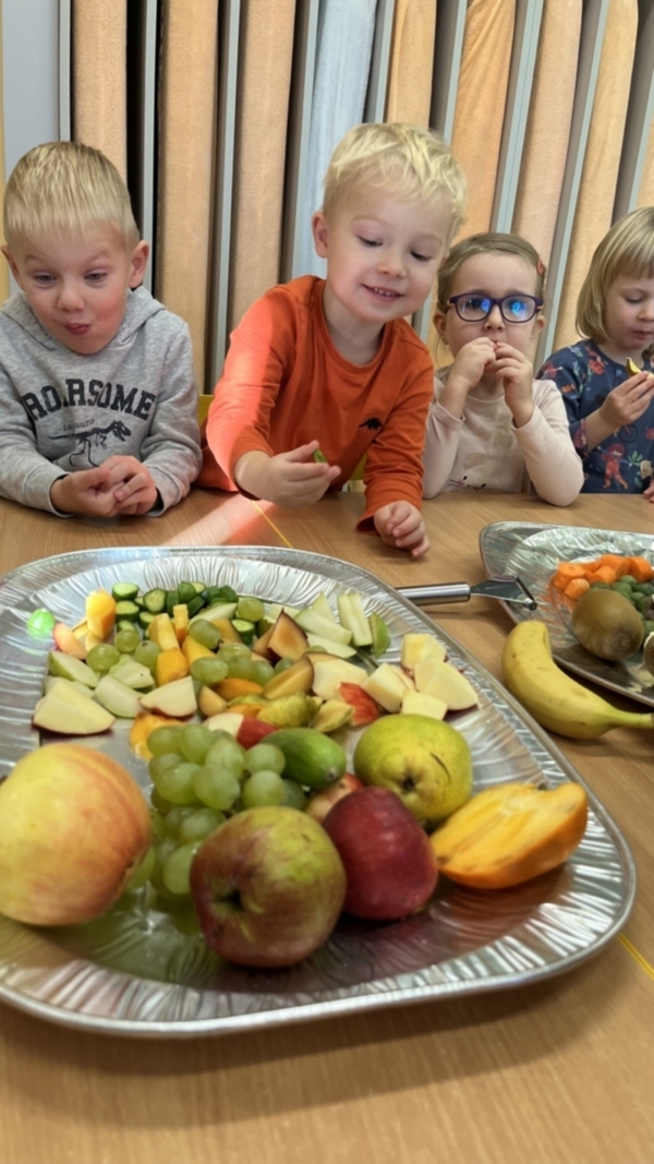 Týden jsme zakončili voňavou ochutnávkou ovoce a zeleniny, které děti přinesly společně s rodiči. Nechyběla ani sladká tečka – společně jsme si upekli výborný štrúdl, který všem moc chutnal! 🍎