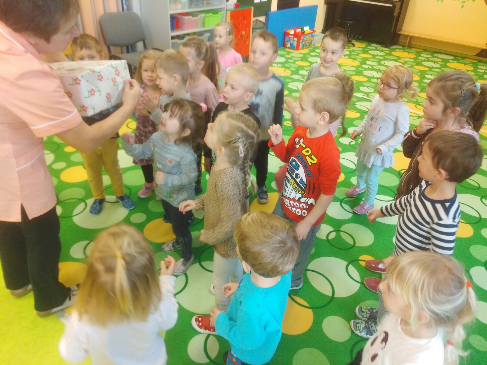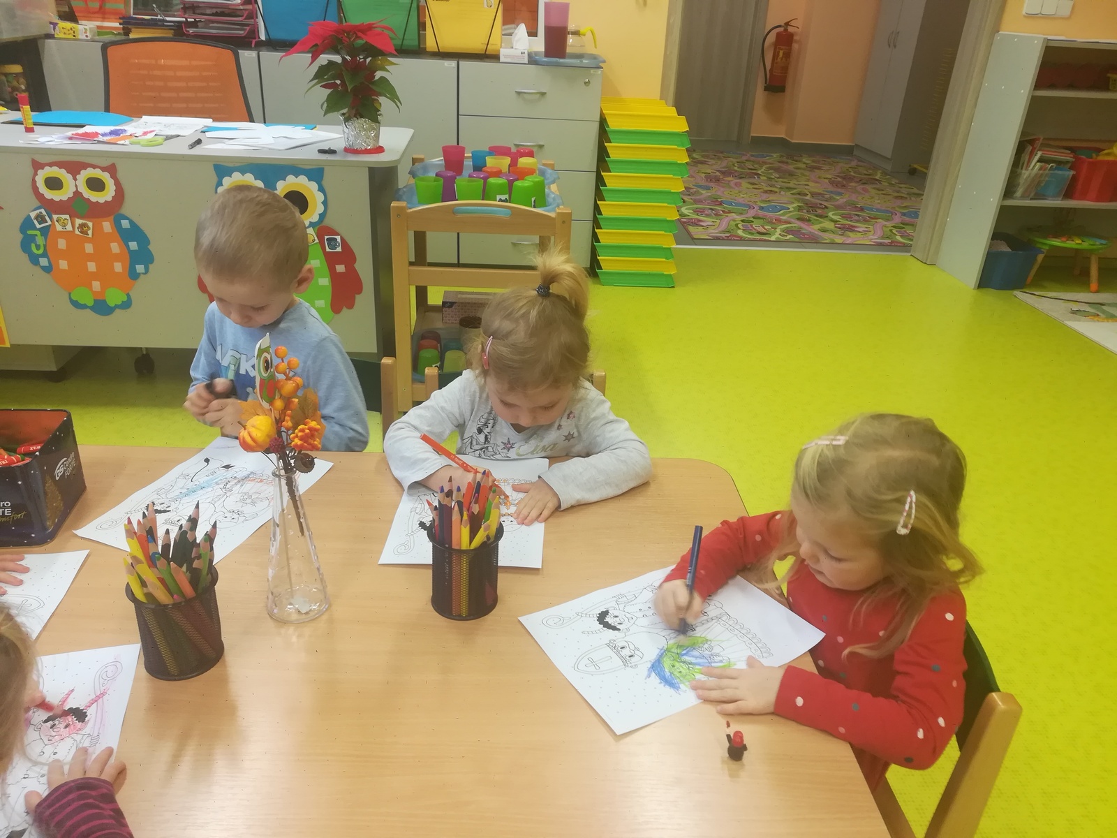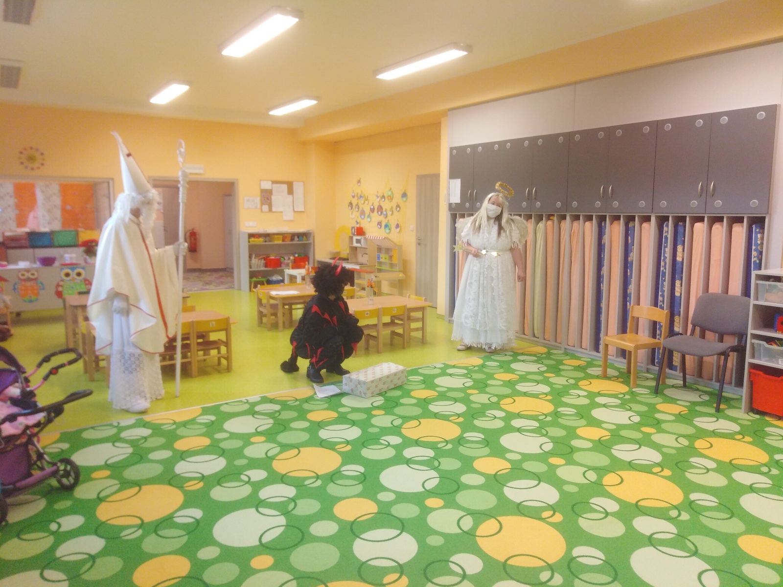 Celý týden jsme se připravovali na vzácnou návštěvu... Nazdobili jsme vánoční stromeček, vyzdobili třídu, šatnu, schodiště, aby se u nás Mikulášovi a jeho pomocníkům líbilo. Naučili jsme se písničku a veselou "čertí" básničku, a v pátek jsme se konečně dočkali – předvedli jsme vzácné návštěvě co umíme a za odměnu jsme si všichni odnesli mikulášský balíček, za který jsme pěkně poděkovali:-)