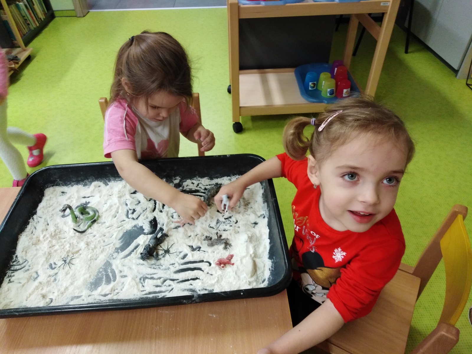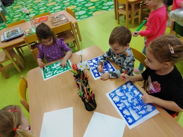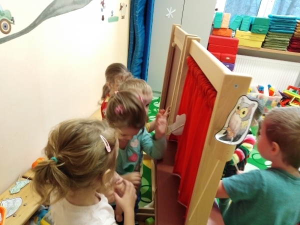 Povídali jsme si celý týden o zvířátkách, která žijí v našich lesích a jejich životě v zimním období. Zpívali jsme písničku o zimním období. Pohybově jsme zkoušeli ztvárnit zvířátka z lesa. Výtvarně jsme tvořili stopy zvířat ve sněhu. Hráli jsme si pohádky o zvířátkách s maňásky a loutkami.