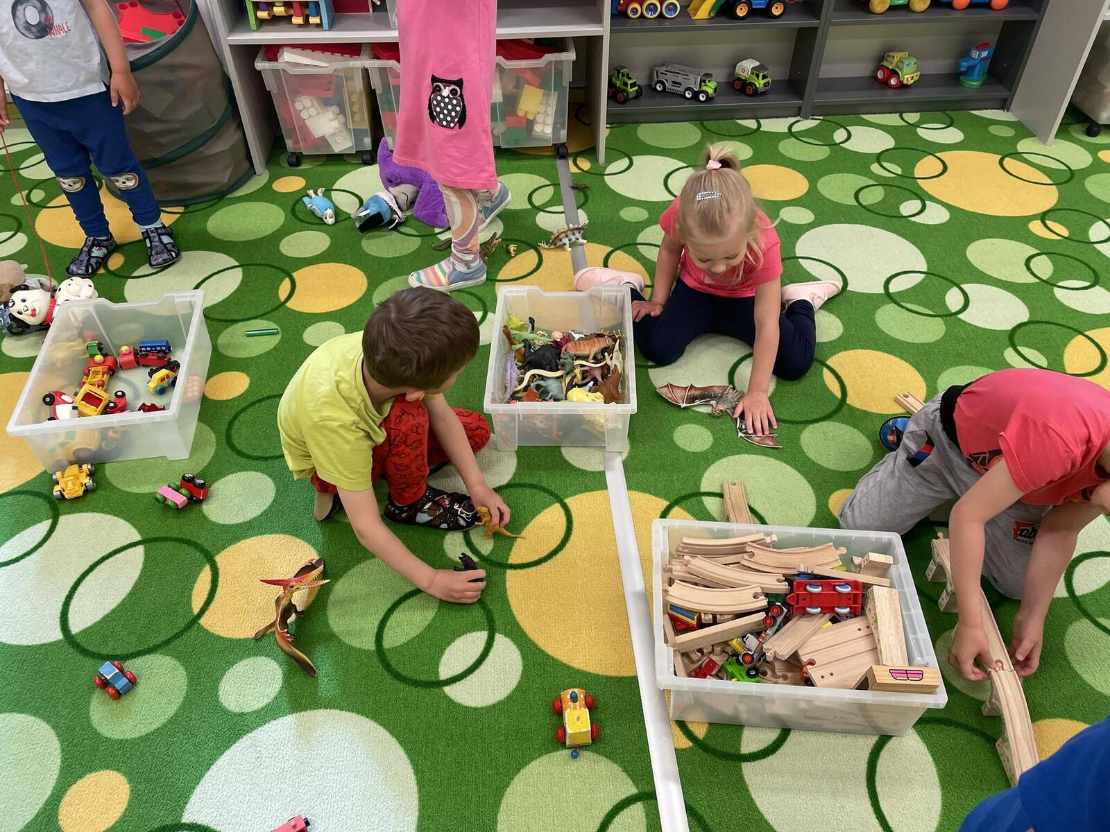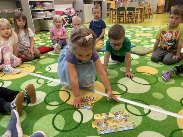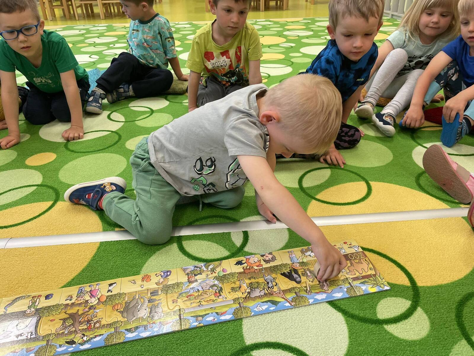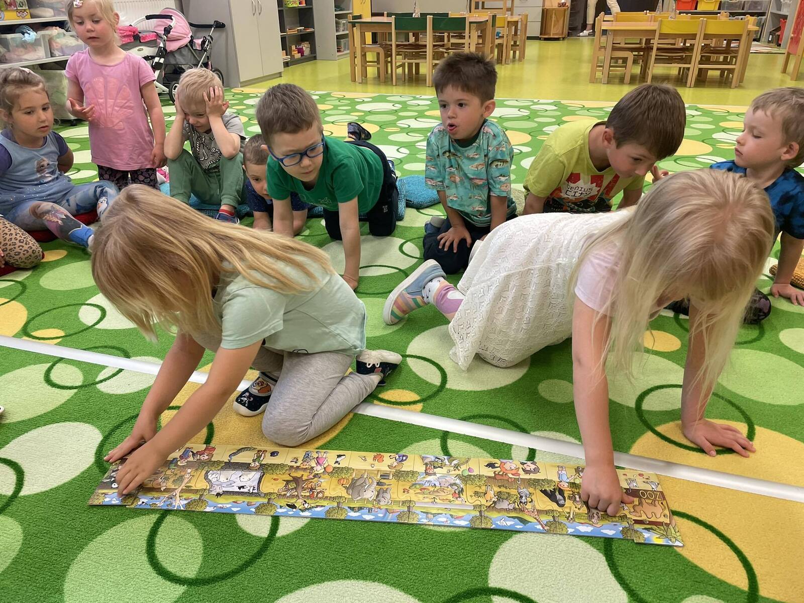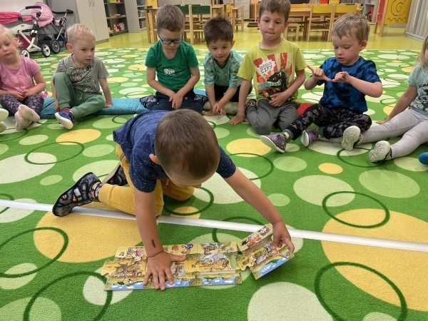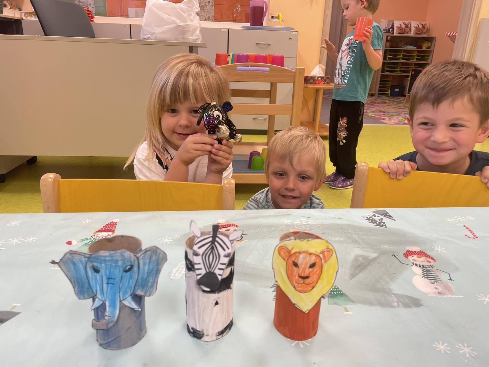 V minulém týdnu jsme si povídali o zvířátkách ze zoologické zahrady, děti hledaly odpovědi na otázky. Jaká zvířátka můžeme vidět v ZOO? Jaký je rozdíl mezi domácími zvířátky? Z ruliček od papíru jsme si každý své zvířátko vytvořili pomocí motivační básničky. Seznámili jsme se s novou písničkou Pět minut v Africe, upevnili jsme slova i melodii, a tak jsme k doprovodu klavíru přidali také hudební nástroje. Třídili jsme obrázky zvířátek, které vidíme v ZOO a které žijí ve vodě anebo na souši. Rozšířili jsme slovní zásobu a fantazii při vymýšlení příběhu dle obrázkového puzzle. Procvičili jsme běh, skoky, orientaci v prostoru a lezení při cvičení.