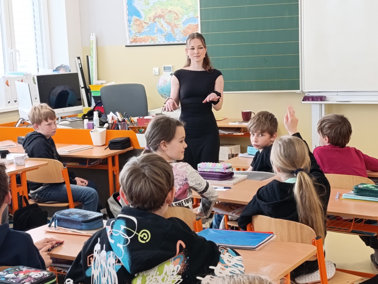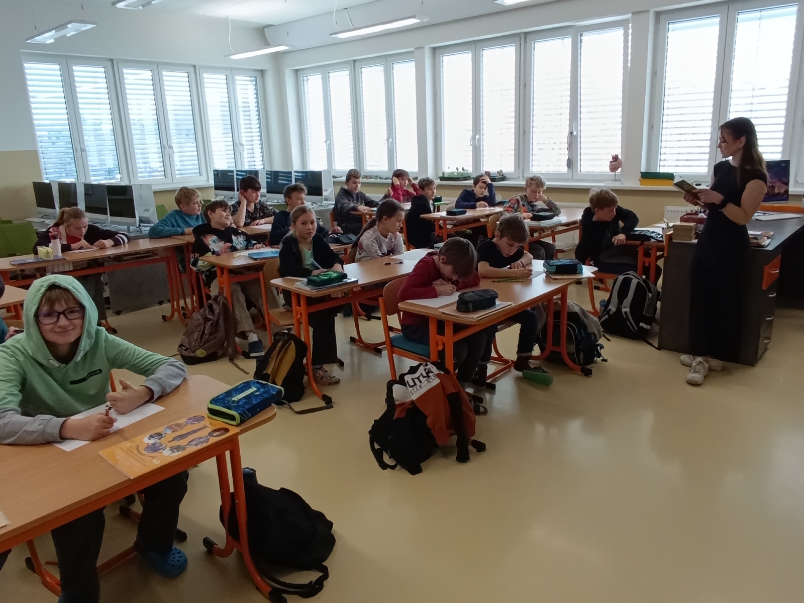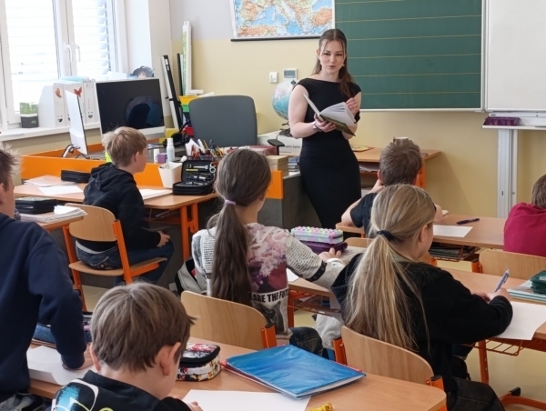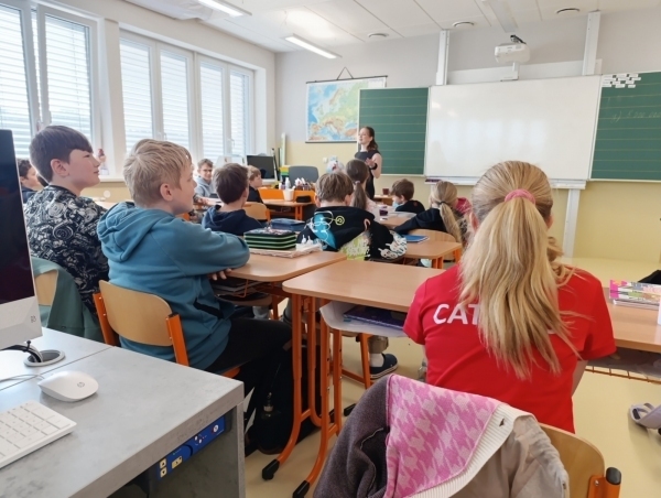 Žáky 3.-5. třídy dnes navštívila studentka policejní akademie v Praze Eliška Verlíková. Představila jim svoji knížku Velké Rhodovo dobrodružství. Kromě čtení ukázek z knihy se děti dověděly, co autorku k napsání knihy vedlo, proč lidé knížky píší a jak funguje spolupráce s vydavatestvim a ilustrátorem. Besedu si žáci užili a někteří se rozhodli si knížku koupit. Ať se vám líbí a čtení si užijete.