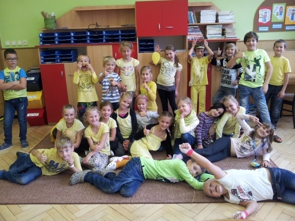 Ale ke každé práci patří také zábava. K Barevnému dni jsme také vyhlásili soutěž o nejlepší vtip. Každá třída si udělala své třídní kolo vtipů, ve kterém vybrala nebo vylosovala tři vtipy, které jsme si společně přečetli:-)