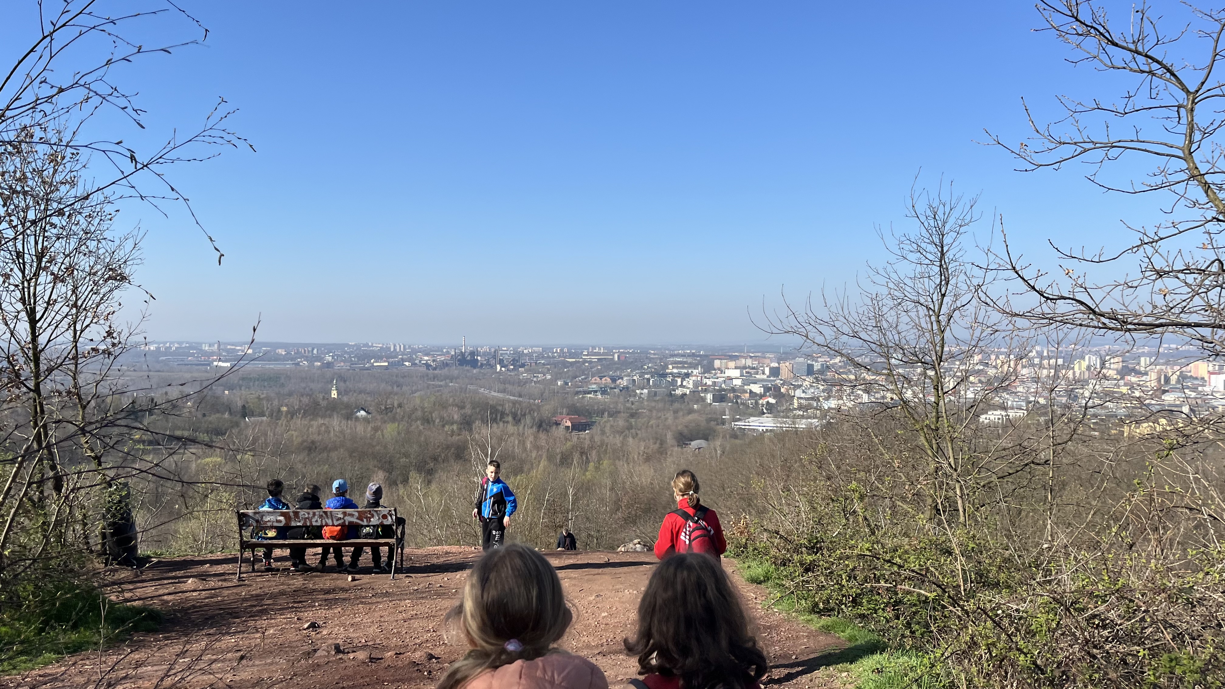 Ve čtvrtek ráno se třeťáci vydali na výlet na haldu Emu - jedno z nejpozoruhodnějších míst Ostravy. Tento umělý kopec, který stále uvnitř doutná, nám nabídl nejen krásné výhledy, ale i zábavnou cestu na vrchol a z něj.