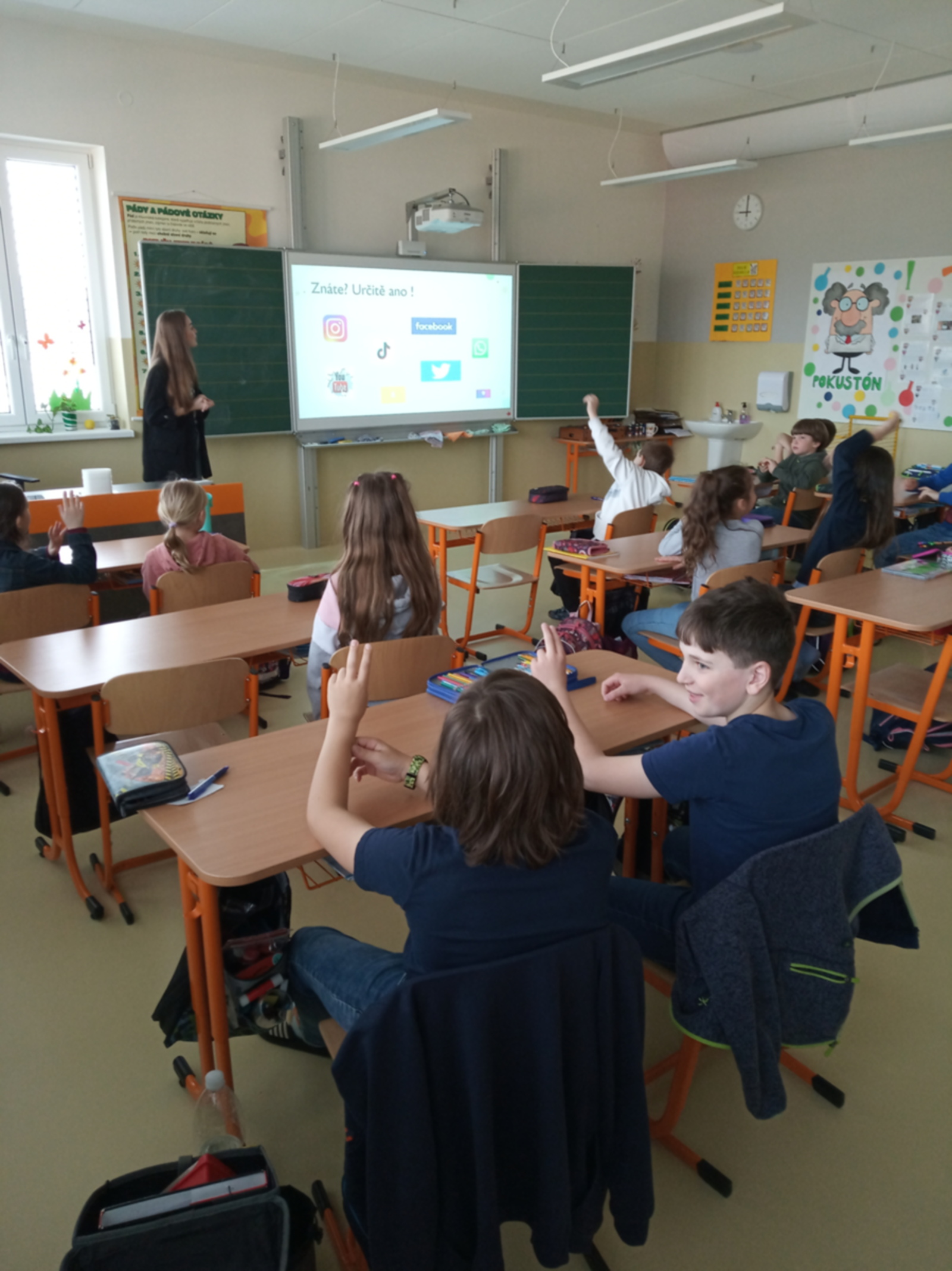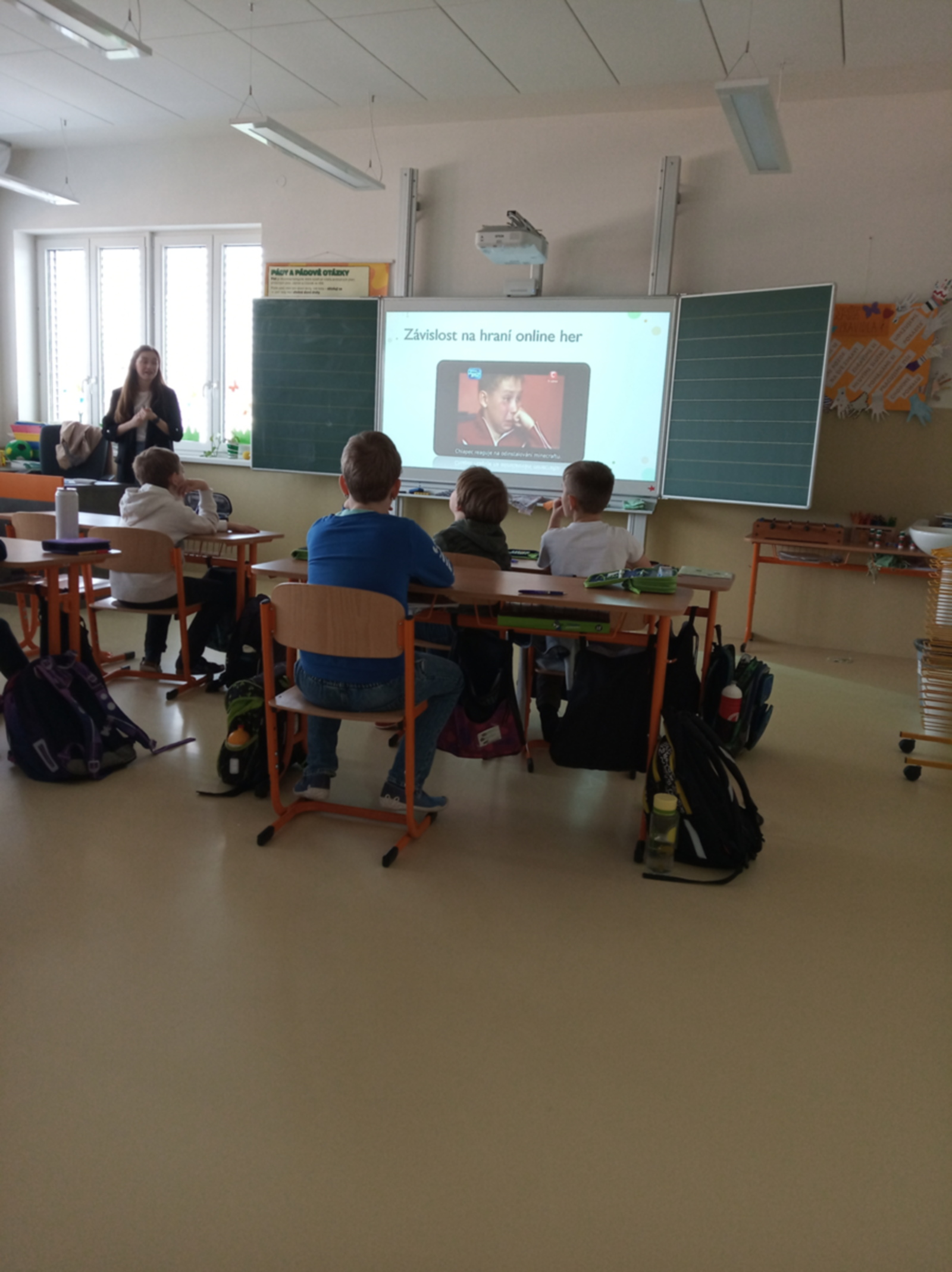 YouTube a Youtubering, Rizika online her – to byla témata dnešních besed pro žáky 3. – 5. ročníku. Upřesnili si, co je závislost na mobilních zařízeních, jak se chovat na sociálních sítích, na co si dávat pozor, jak lehce lze ztratit kontakt s realitou. A teď rychle ven do přírody, za skutečnými společnými zážitky s kamarády a rodiči.