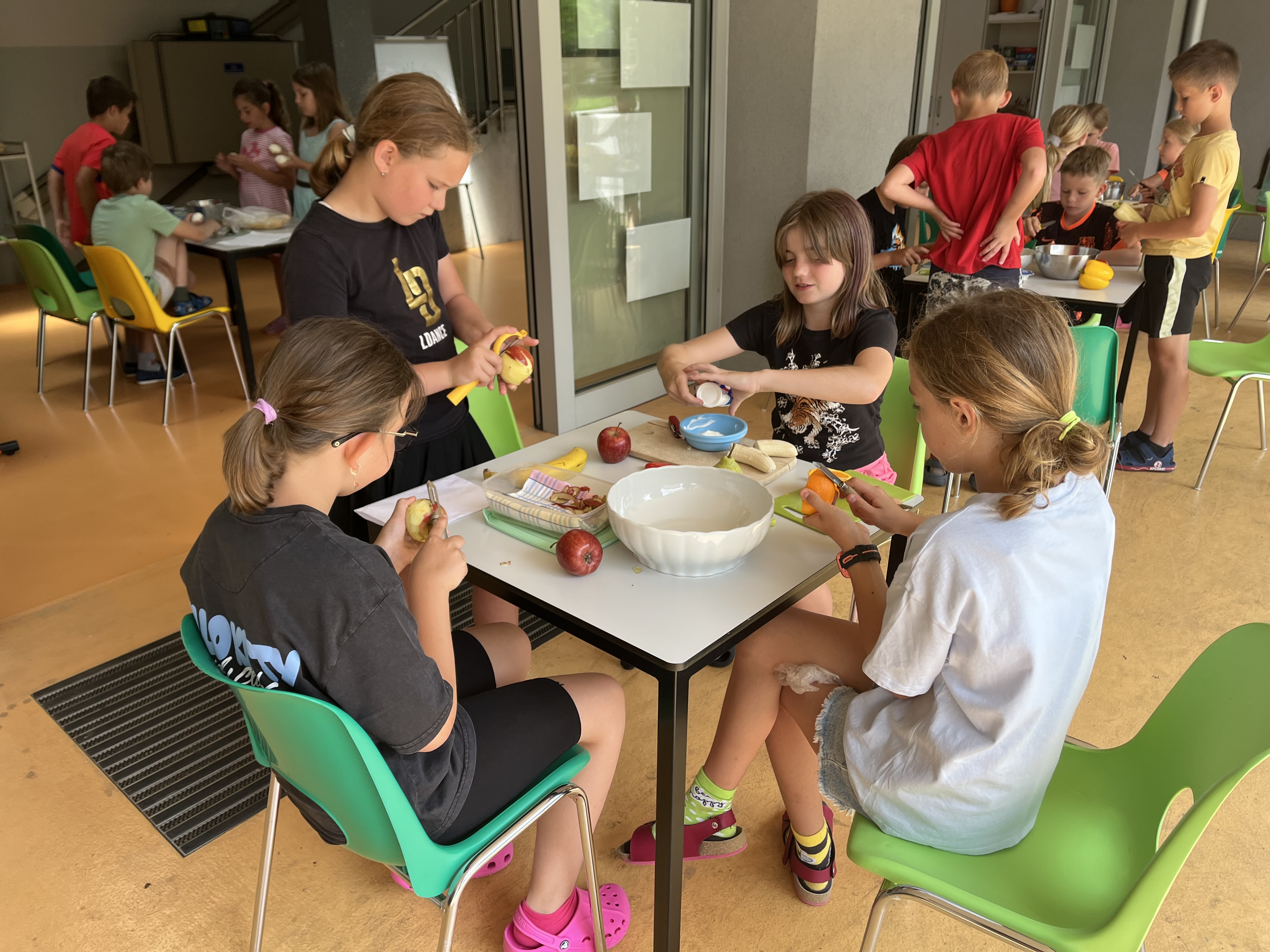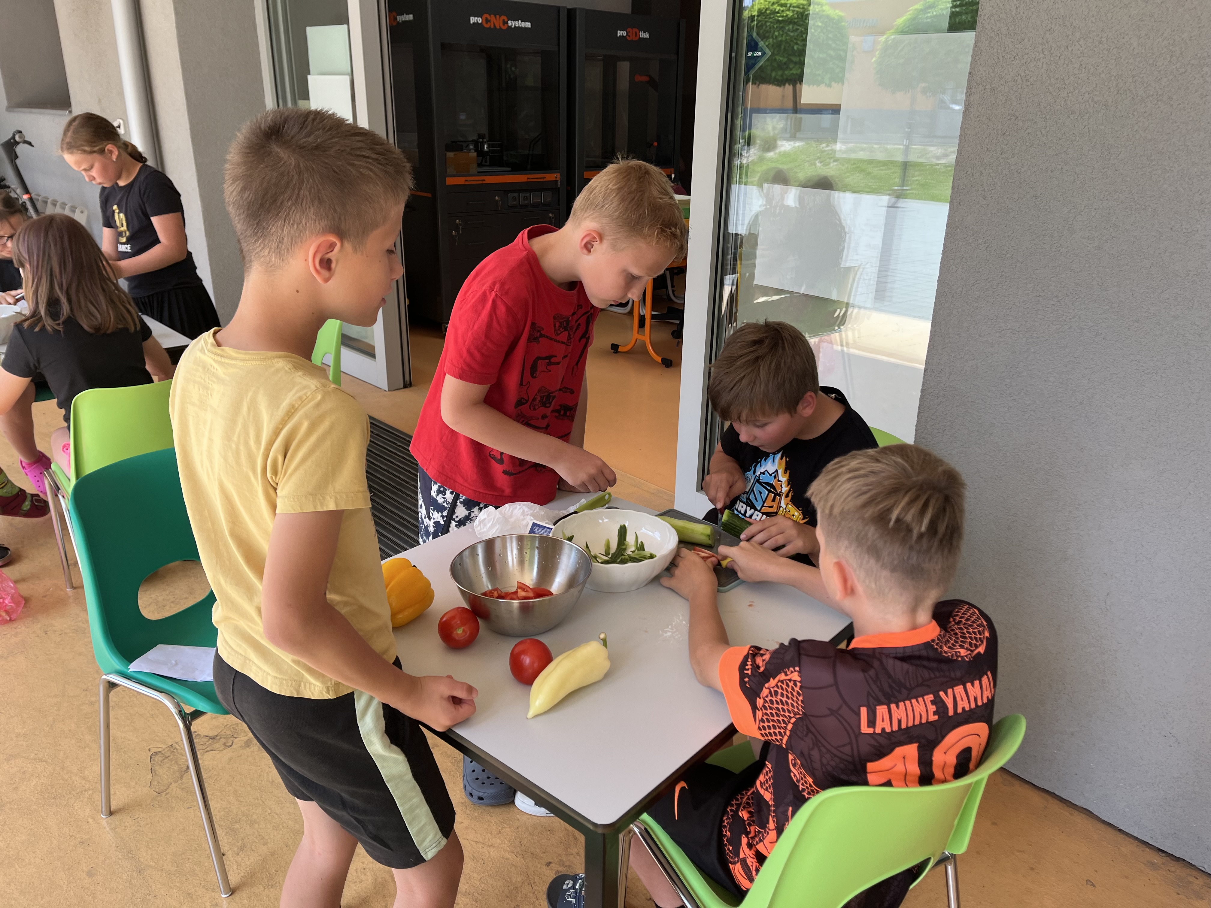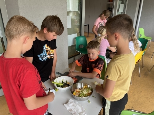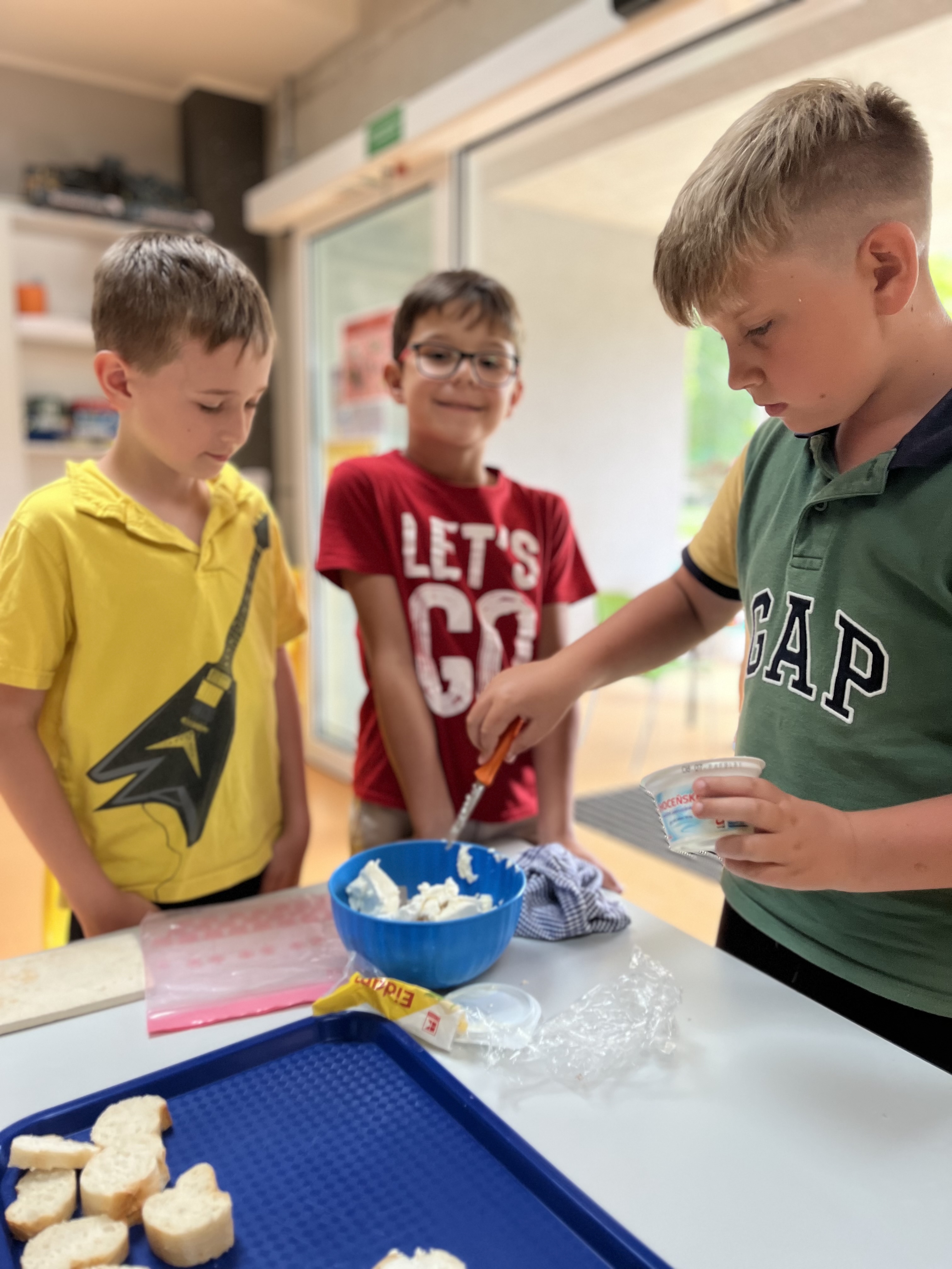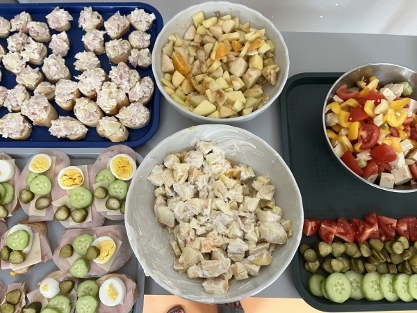Ve čtvrtek dopoledne se školní kuchyňka proměnila v rušné místo plné smíchu, krájení a tvořivosti. Třeťáci se rozdělili na sedm skupin, z nichž každá dostala za úkol připravit jeden pokrm nebo nápoj. Vše probíhalo v anglickém jazyce a i recepty samotné byly anglicky. Výsledkem byla pestrá hostina, na které si každý přišel na své.
